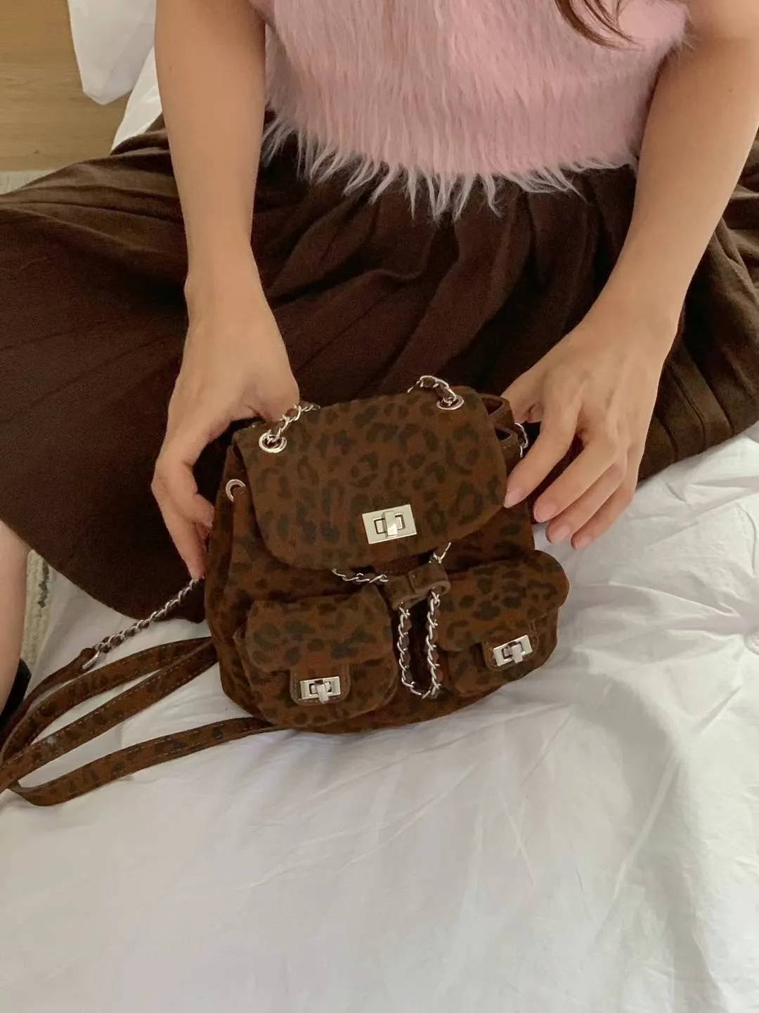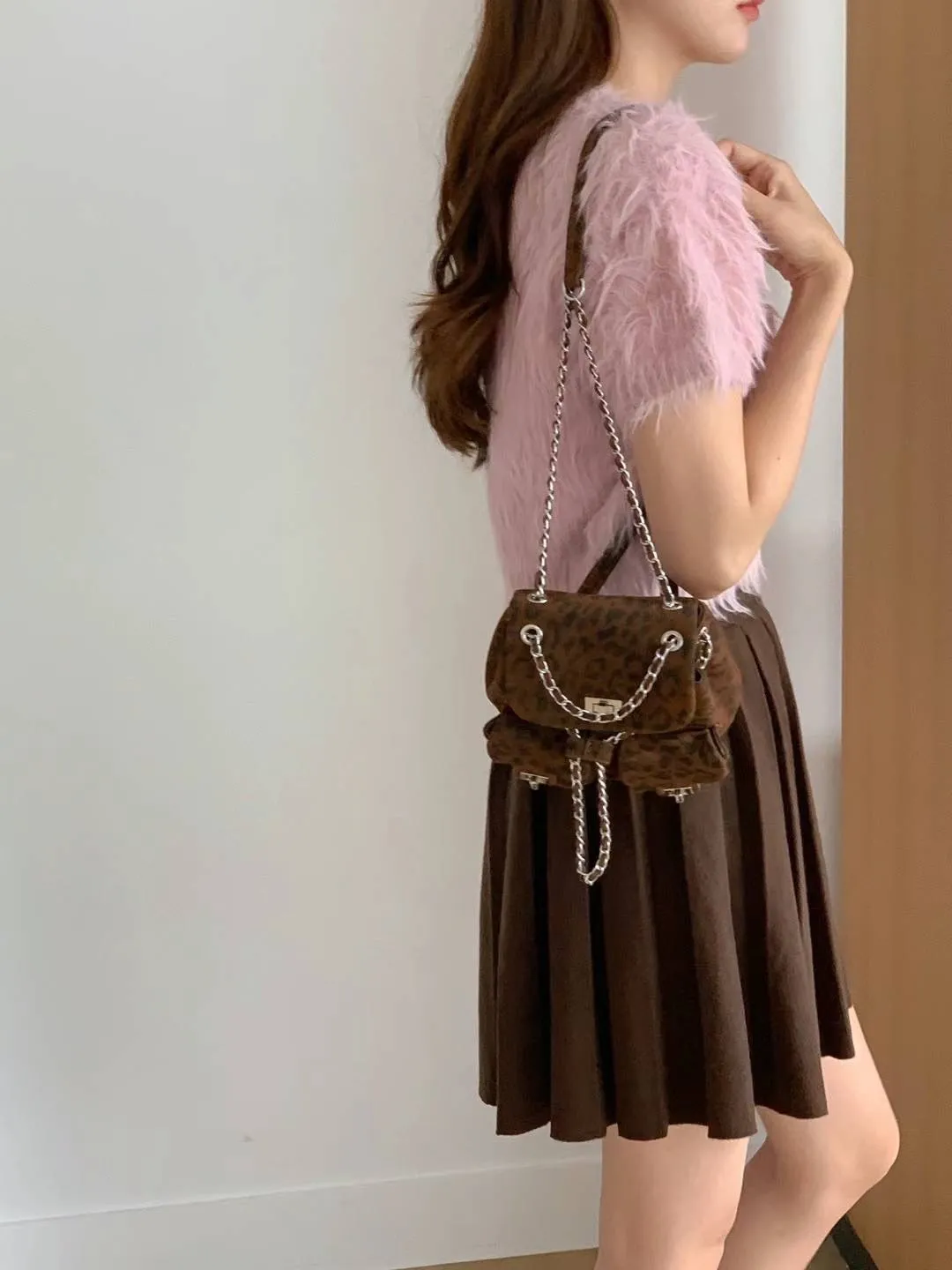 牛皮 旋轉釦小口袋 肩帶不可調 皮革穿金屬鍊