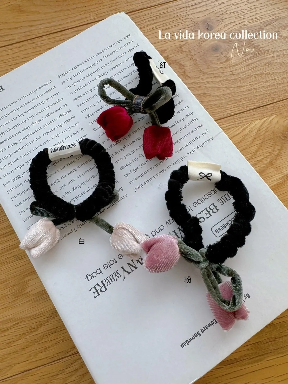 YN108韓製細緻絨絨鬱金香髮圈組(一組2入)