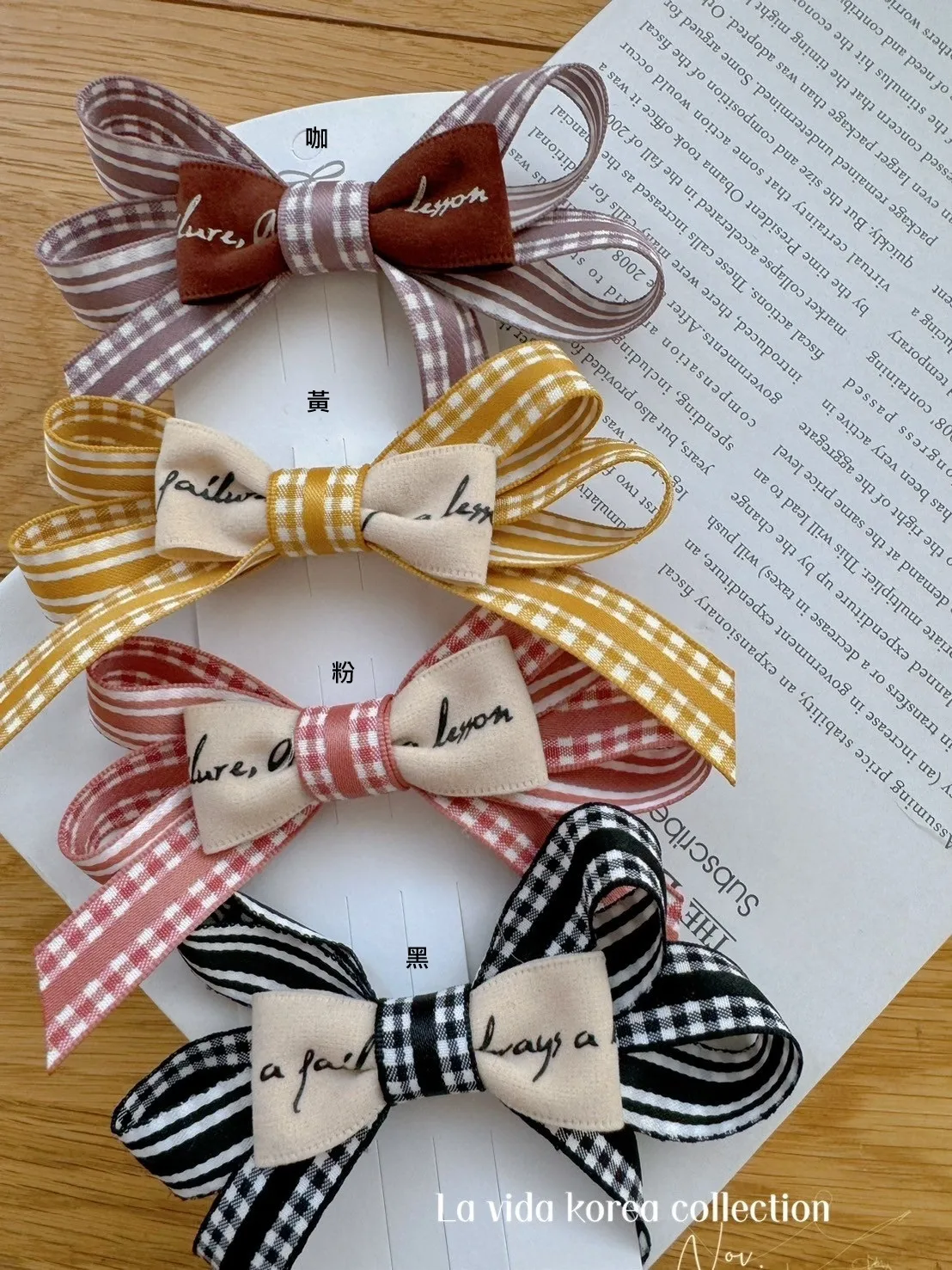 YN110韓製細緻格紋蝴蝶結髮夾 粉 咖 黑 紅 黃 官網價$199 線上價$179