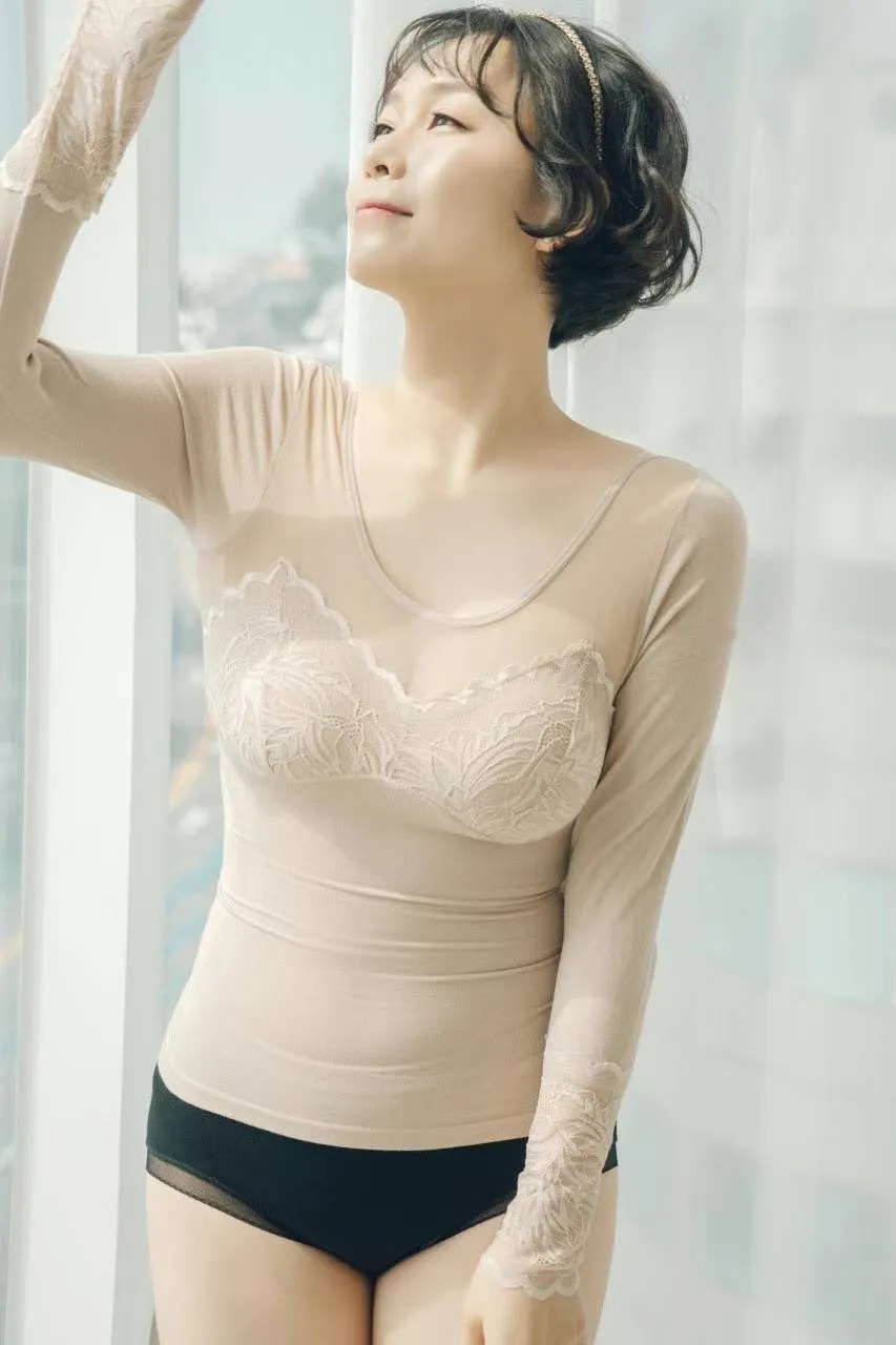 韓國獨家發熱纖維 有胸墊 精緻蕾絲 薄款杯墊 彈性 可穿到70公斤