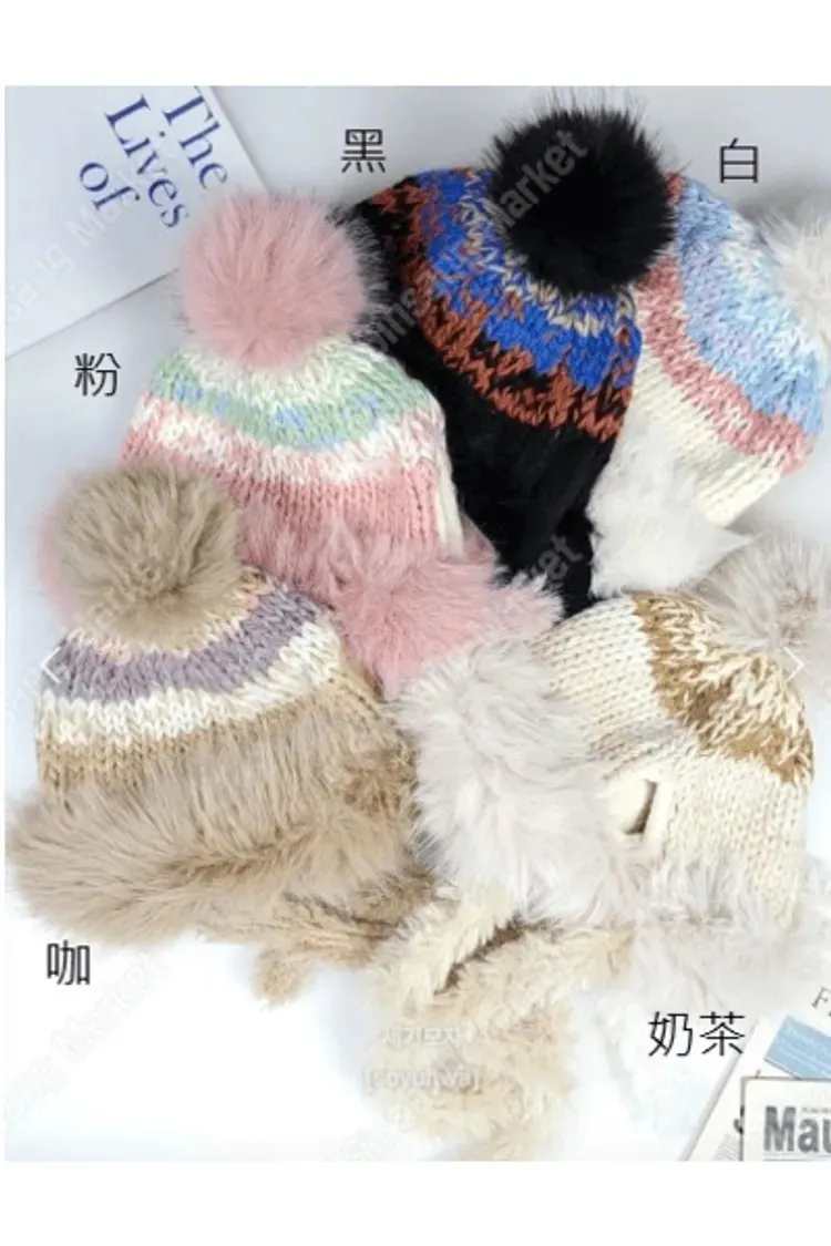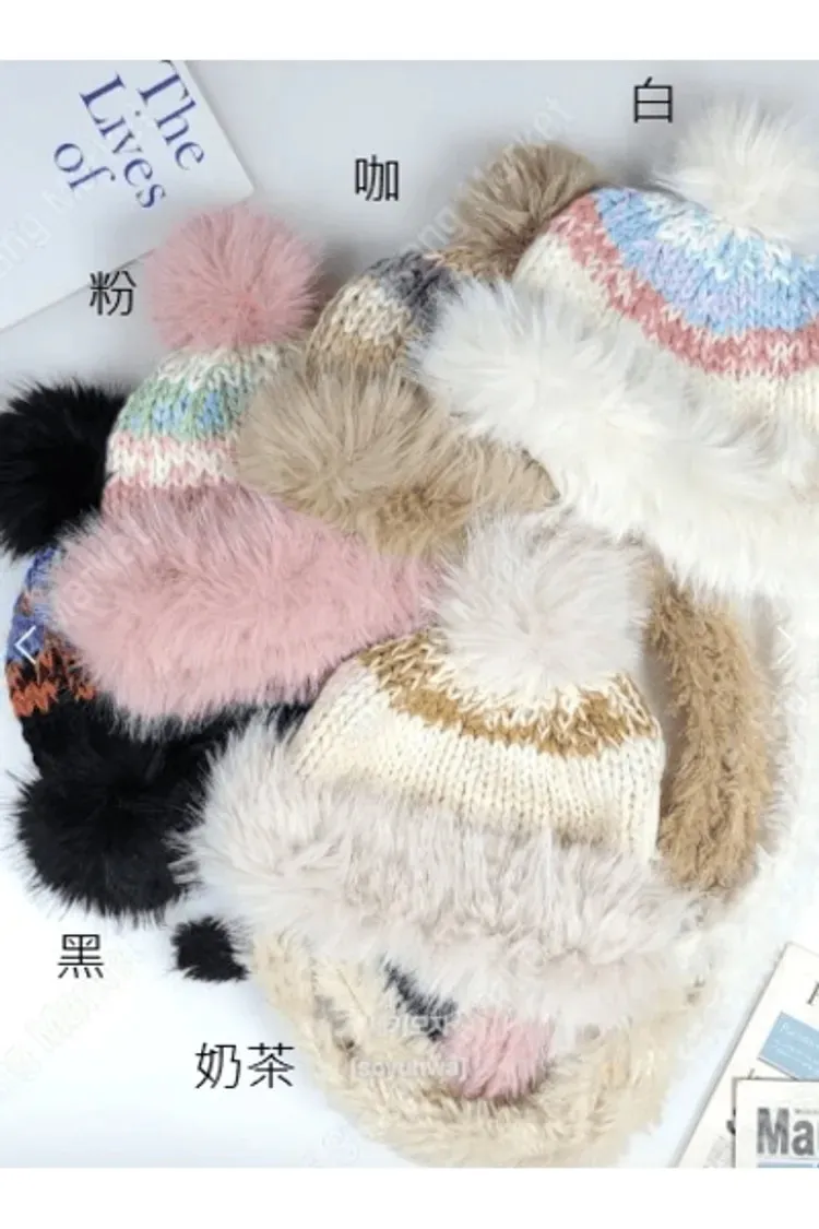 YN170冬季可愛大圈毛毛針織帽 白 咖 粉 黑 奶茶 官網價$490 線上價$460