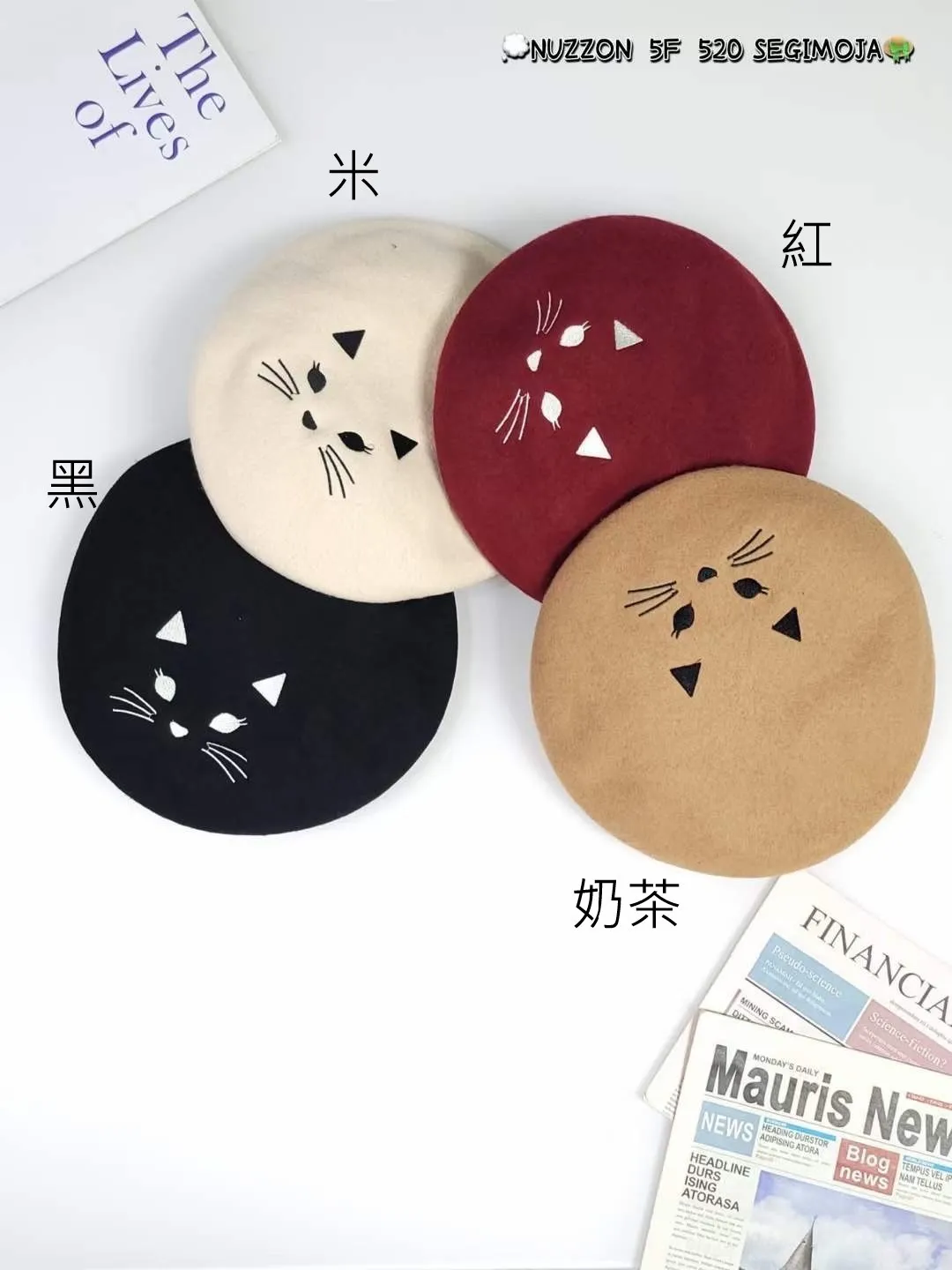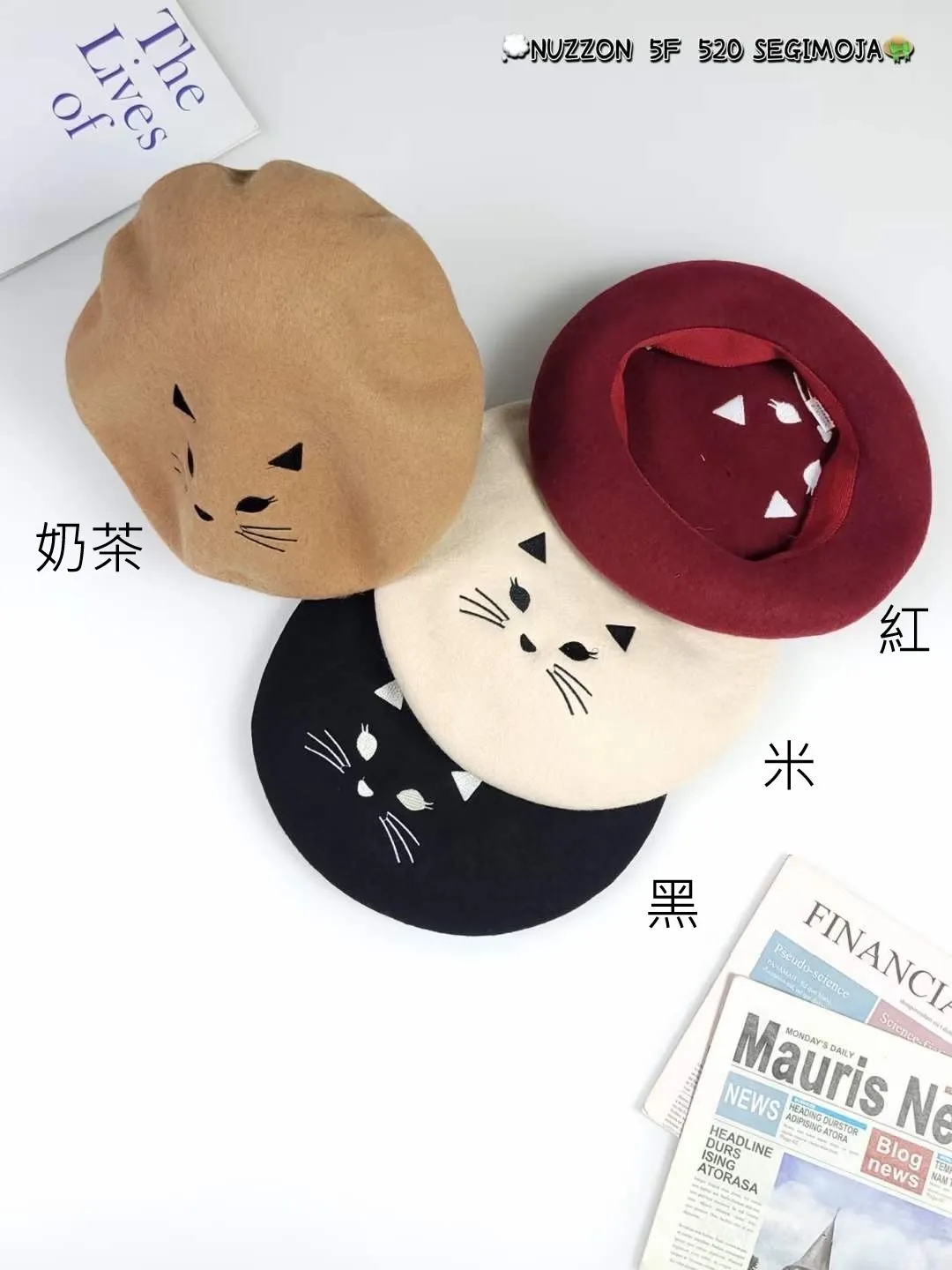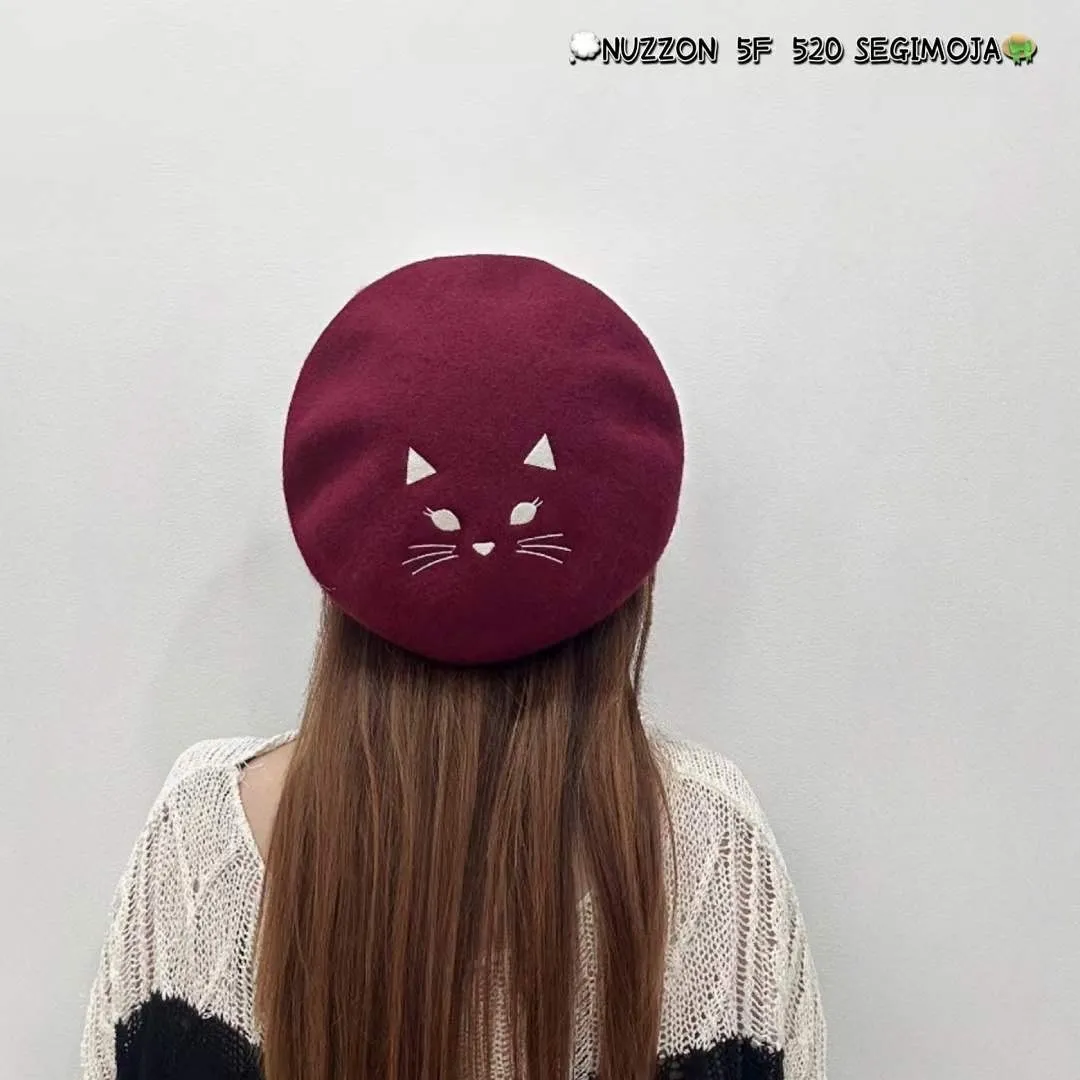 YN172可愛貓貓羊毛貝雷帽 米 黑 紅 奶茶 官網價$450 線上價$420