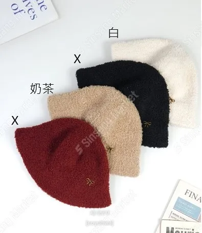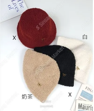 YN175可愛金屬蝴蝶結羊羔毛帽 白 奶茶 官網價$450 線上價$420