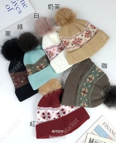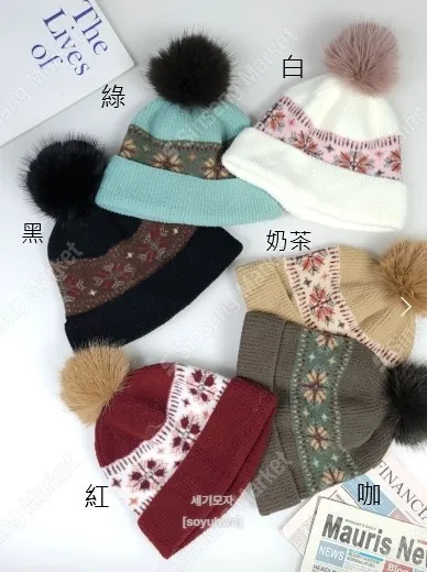 YN178北歐雪花球球針織帽 白 紅 綠 咖 黑 奶茶 官網價$460 線上價$430