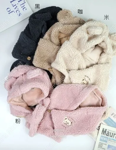 聚酯 帽子圍巾拉鍊連結可拆 羊羔毛觸感 內襯舒適磨毛 熊熊刺繡熊熊釦