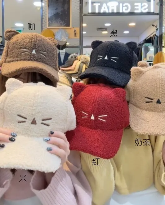 YN192韓製可愛小貓鬍鬚棒球帽 米 紅 咖 黑 奶茶 官網價$450 線上價$420