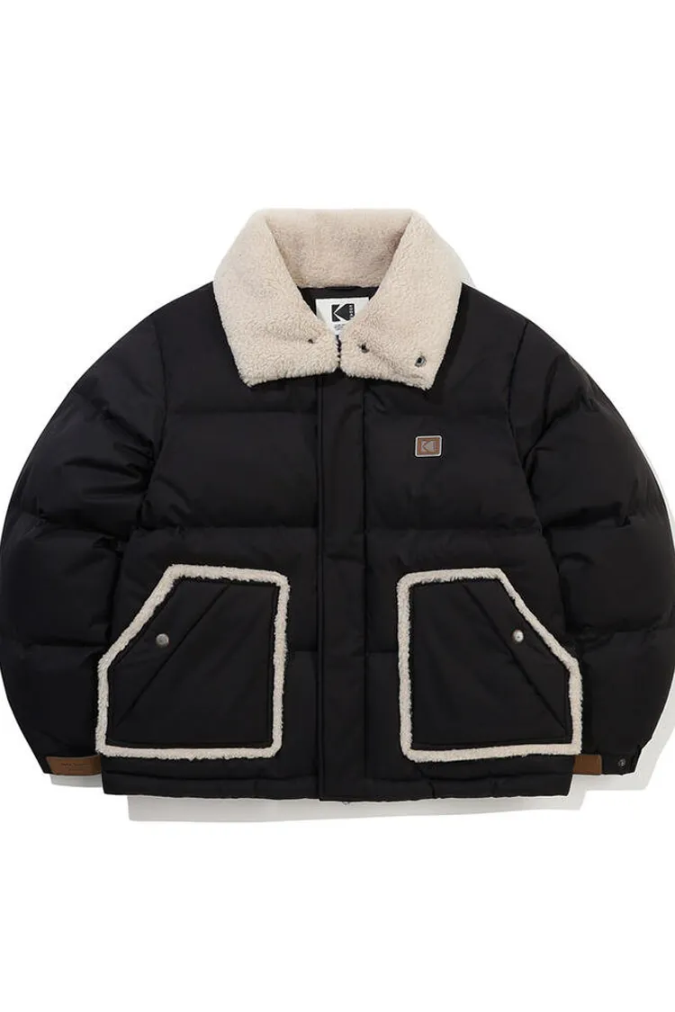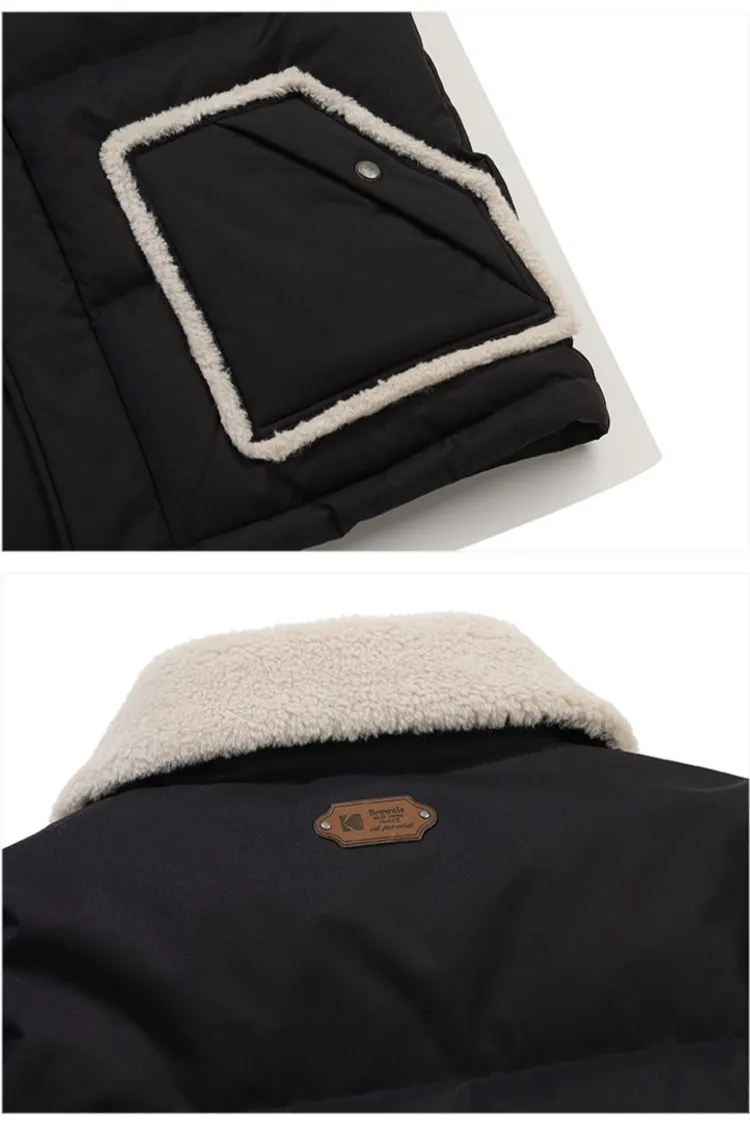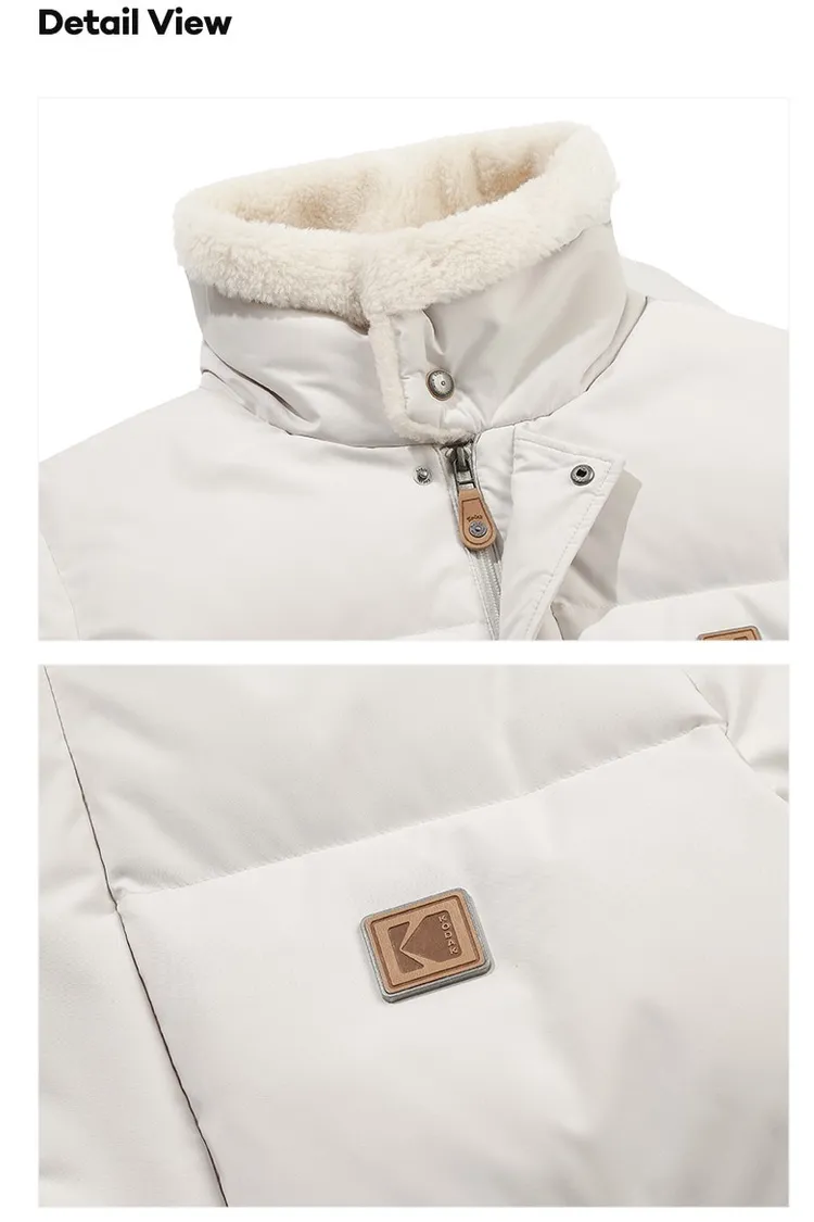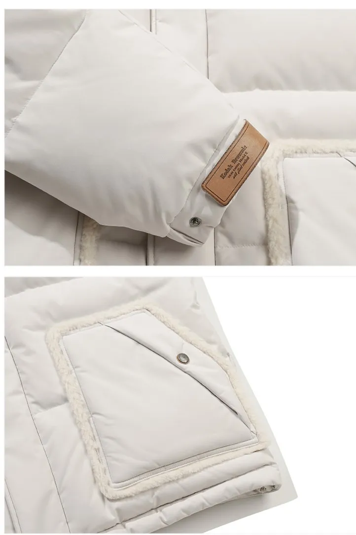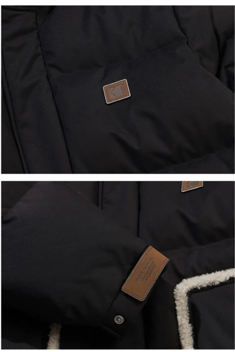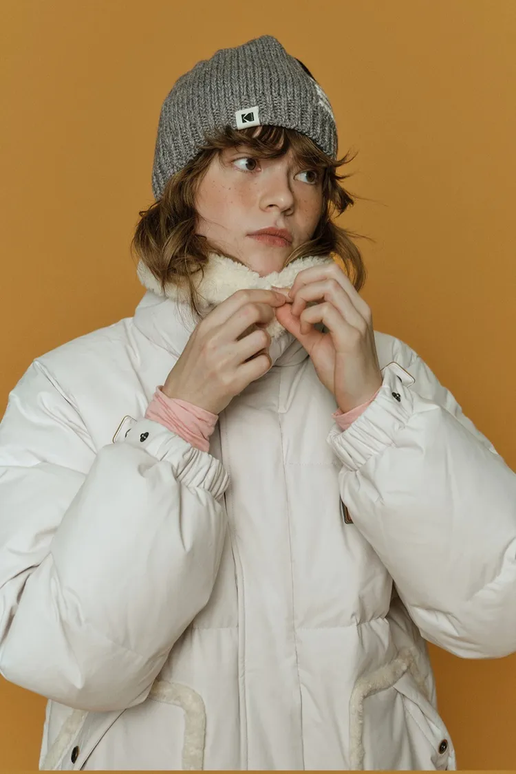 鴨絨80%+20% 內層尼龍 羊毛可釦圍立領 拉鍊穿脫 手袖皮革標