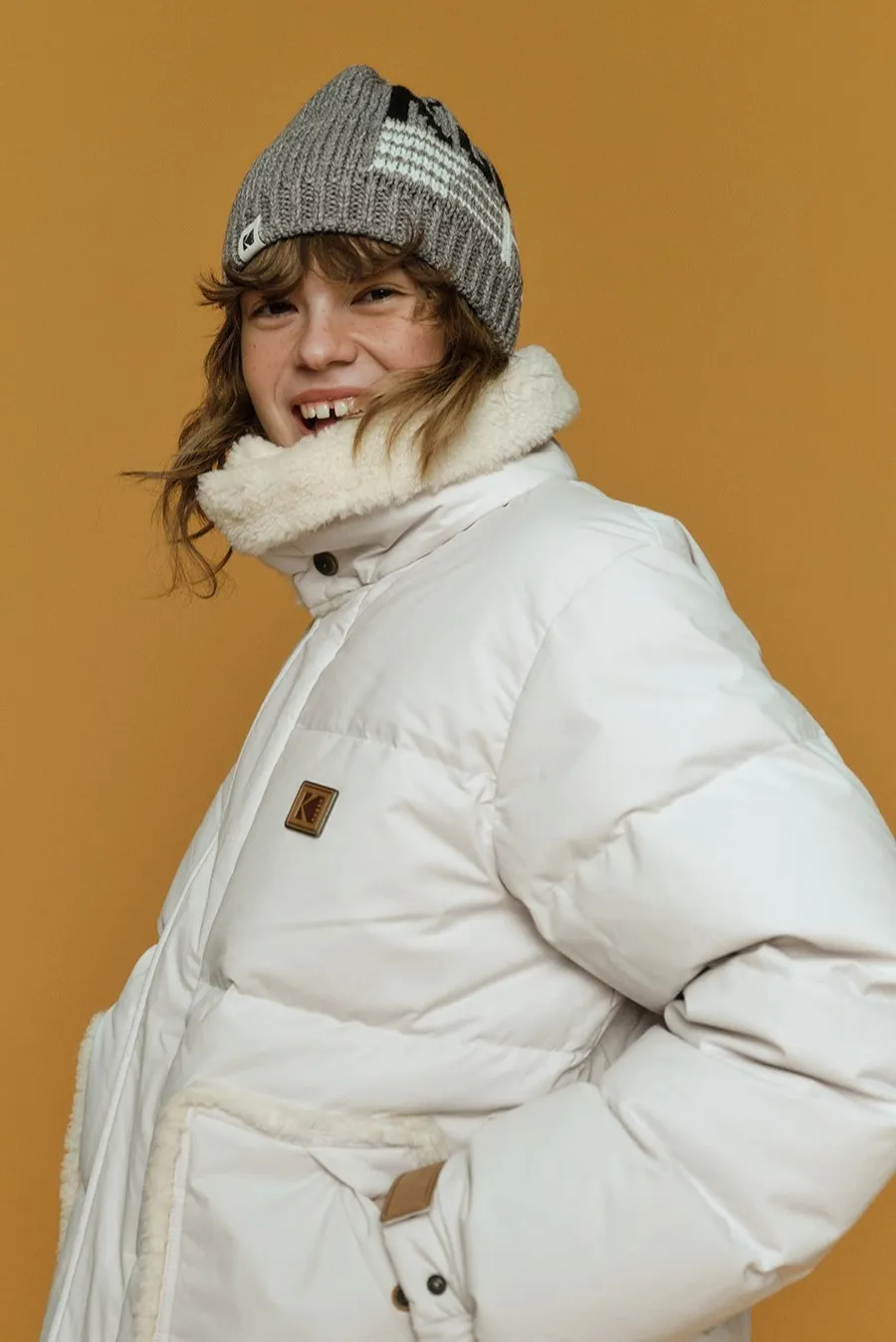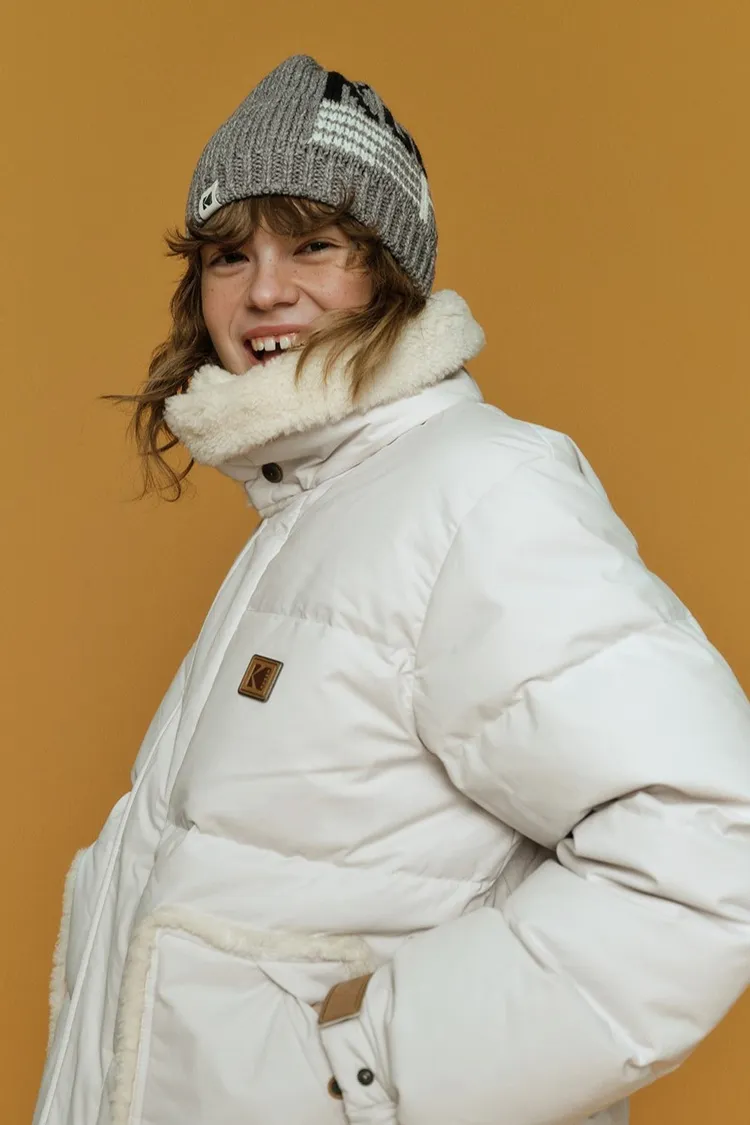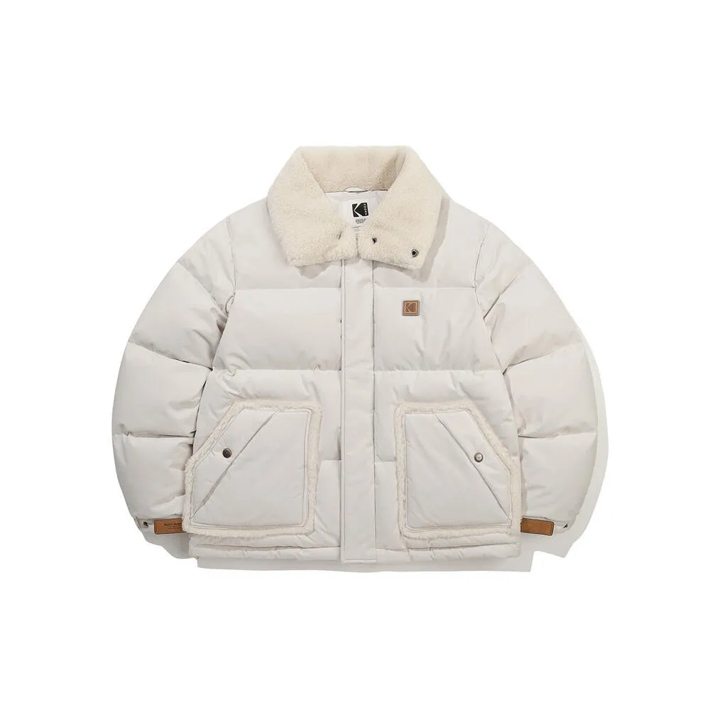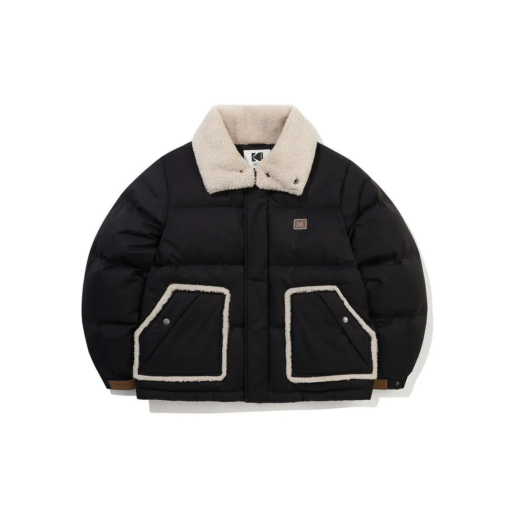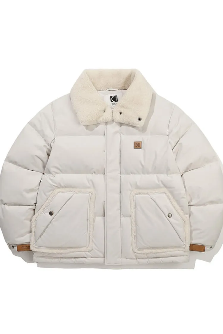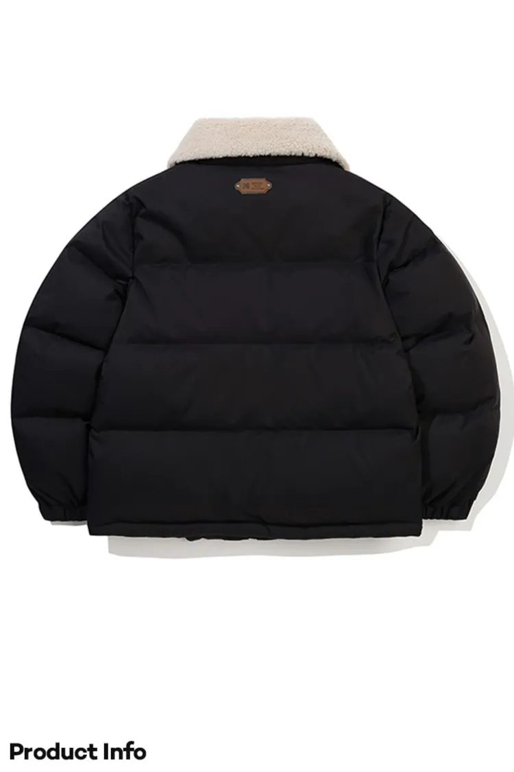 鴨絨80%+20% 內層尼龍 羊毛可釦圍立領 拉鍊穿脫 手袖皮革標