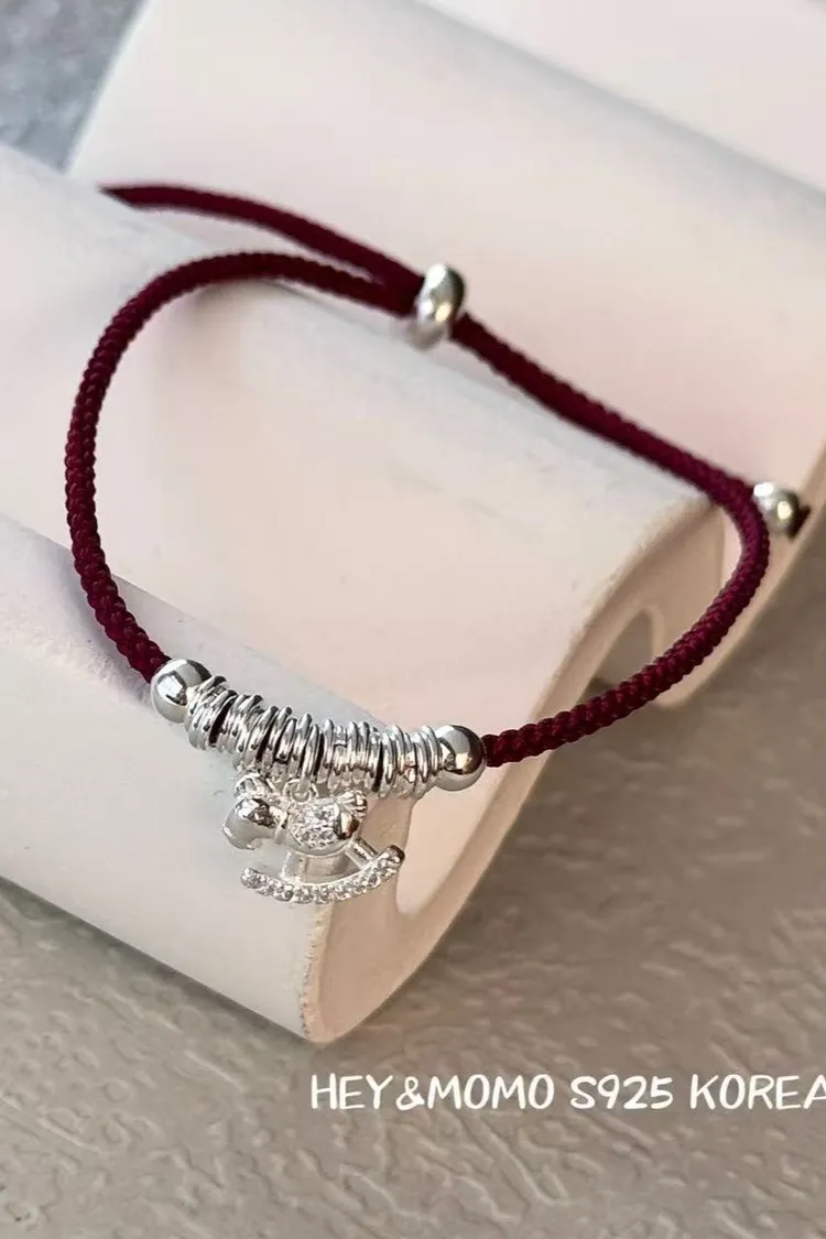 ZA118富貴銀串小馬純銀925紅繩手鍊 官網價$780 永恆甜甜價$750