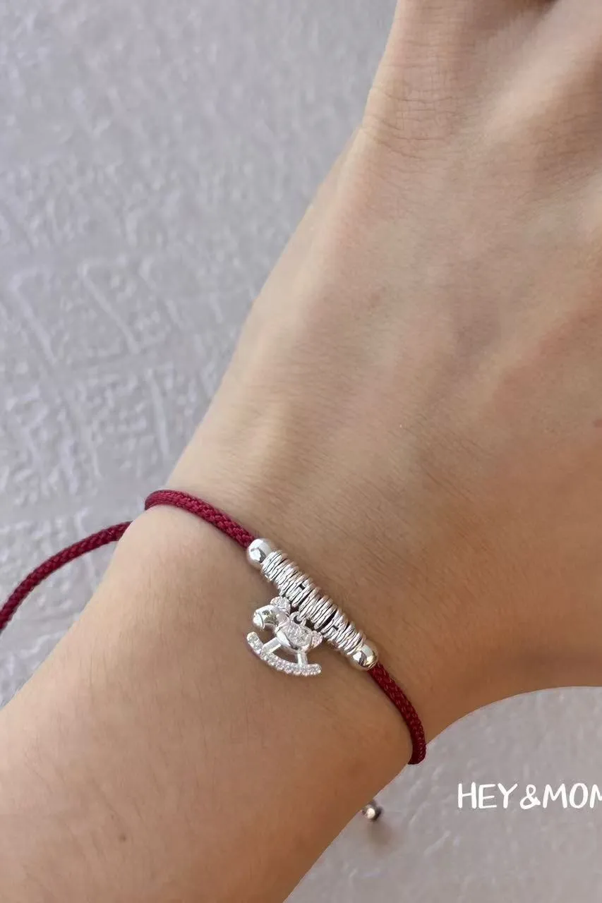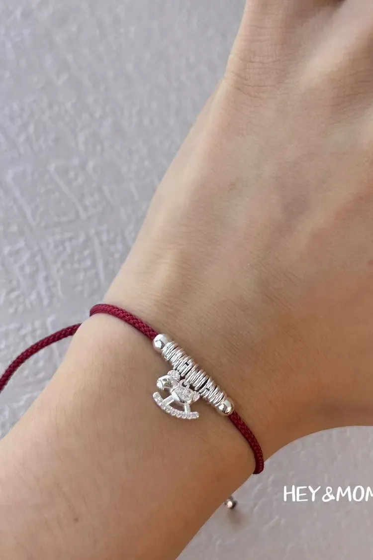 ZA118富貴銀串小馬純銀925紅繩手鍊