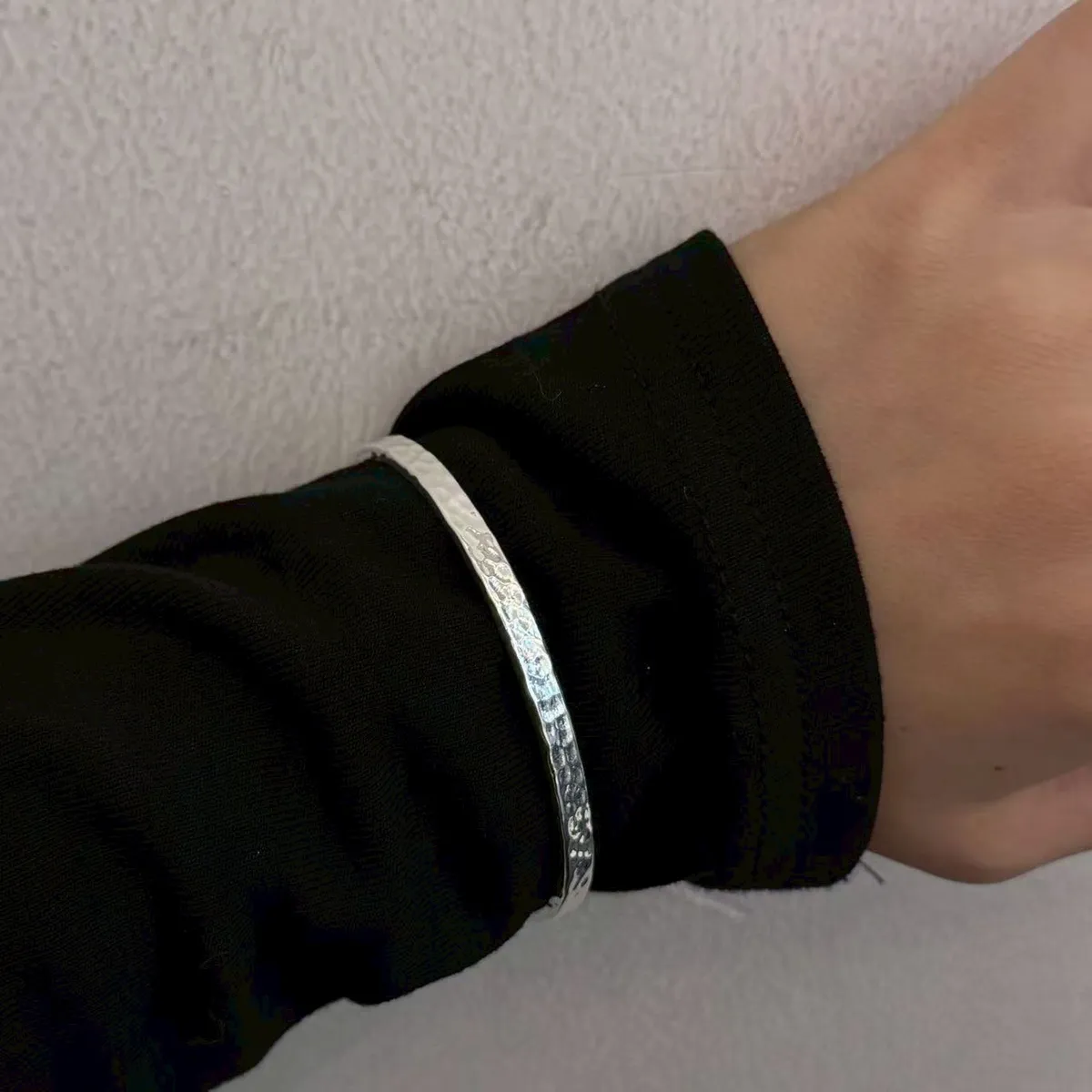 ZA142高級質感手工槌紋純銀925手鐲