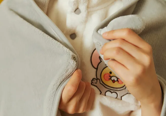 柔軟內刷毛毛 可愛頭套 胸前可愛布釦 可藏手手 冬天款