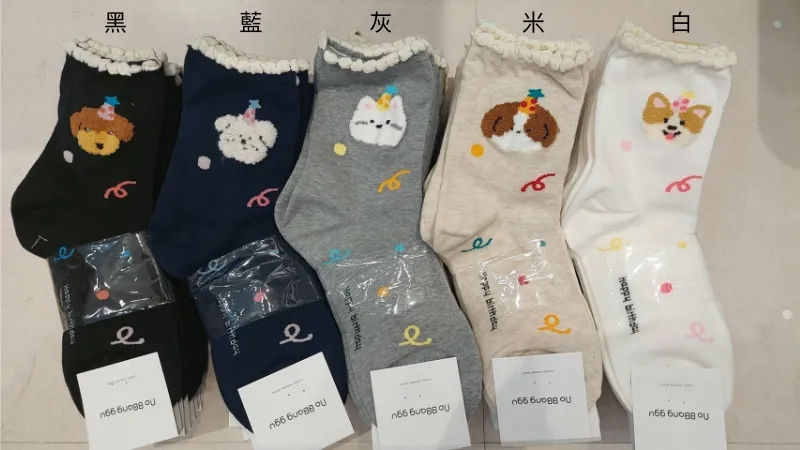 ZC051派對繽紛動物滾邊襪 白 米 藍 灰 黑 $39 包色$175