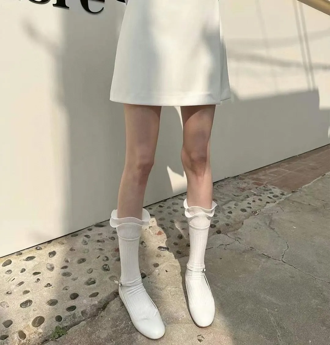 ZC065雙層柔軟花瓣襪 白 黑 $125 包色$230