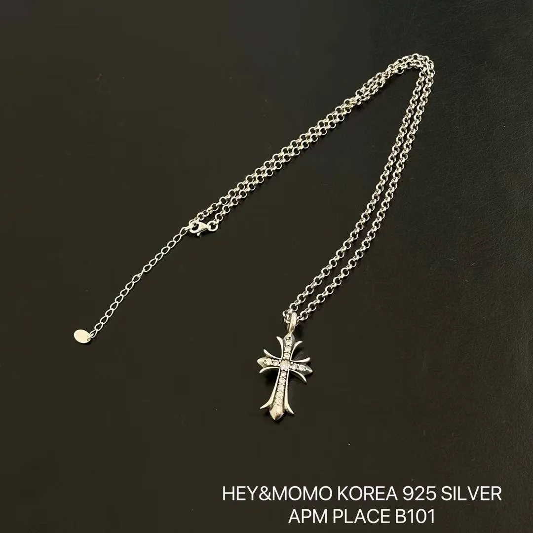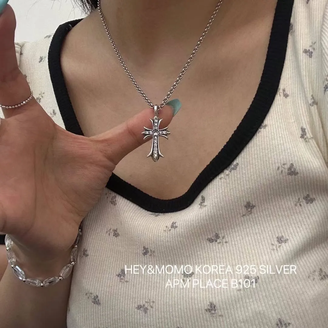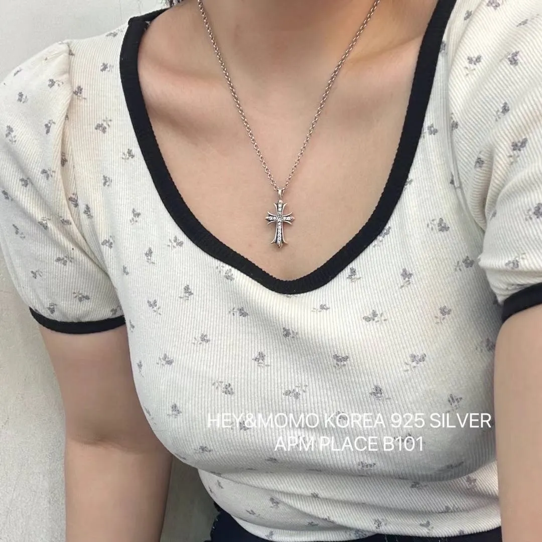 純銀925重工雙面十字架,一面經典雕花,一面高貴點綴鑽,坦克鍊