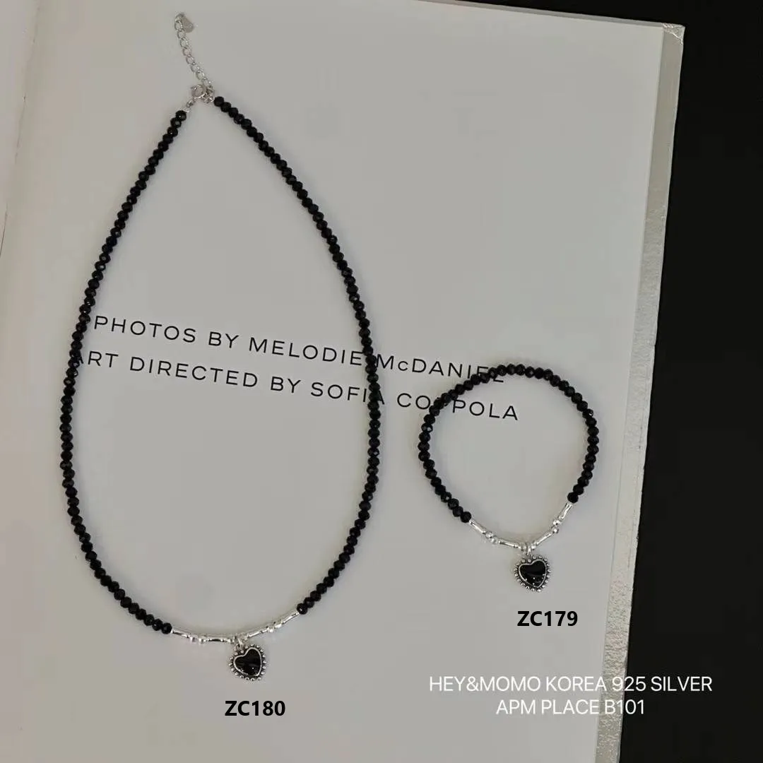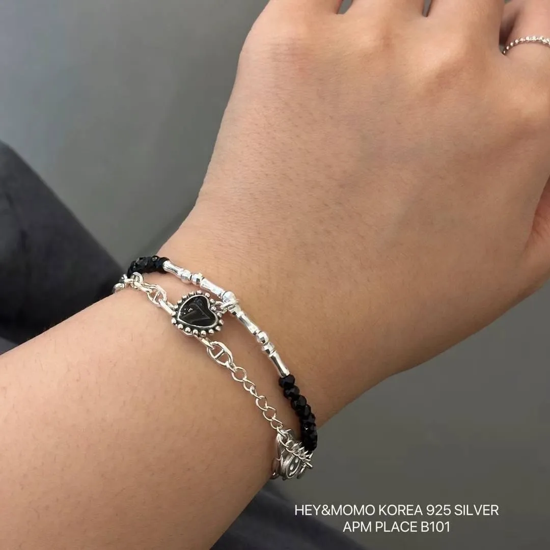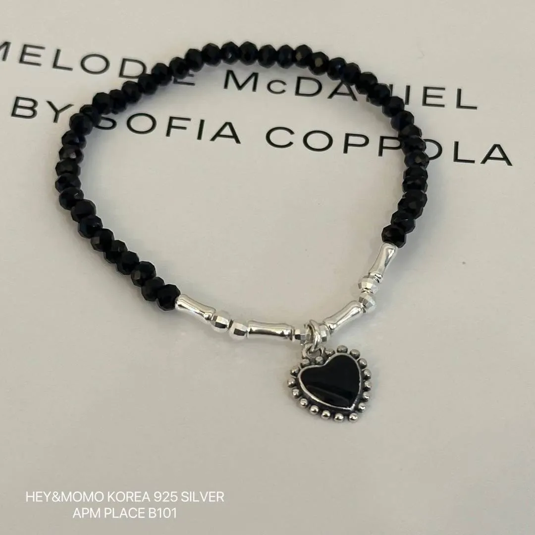 ZC179黑瑪瑙愛心純銀925彈力繩手鍊 原價$580 永恆甜甜價$520