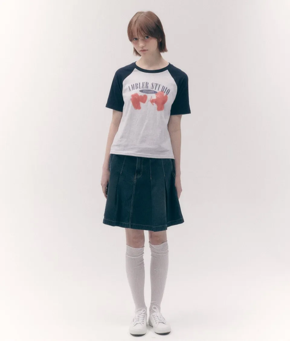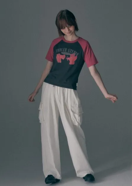 Y2K的跳色設計突顯可愛色彩感的短版上衣。
