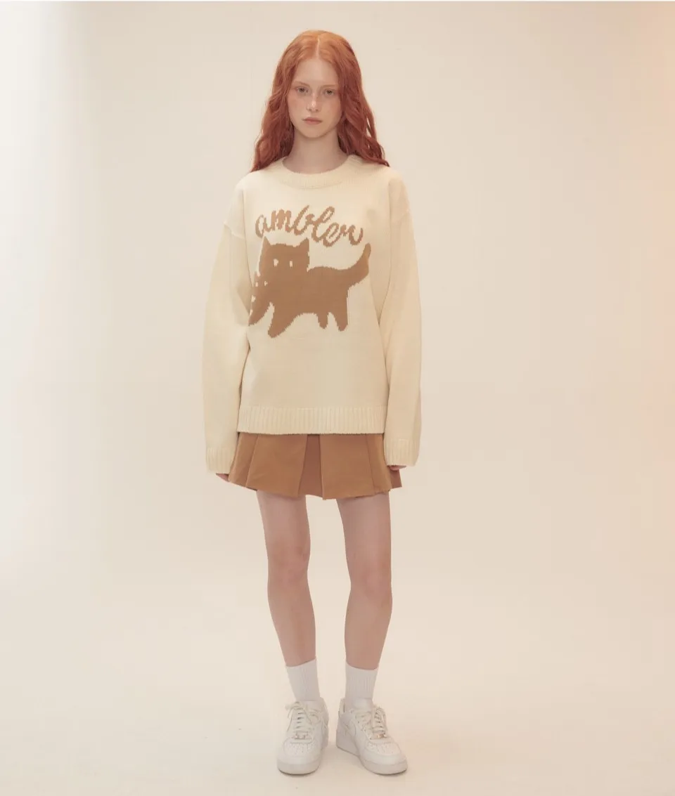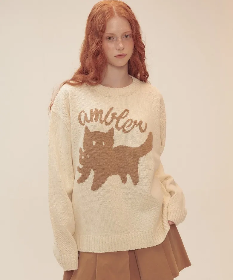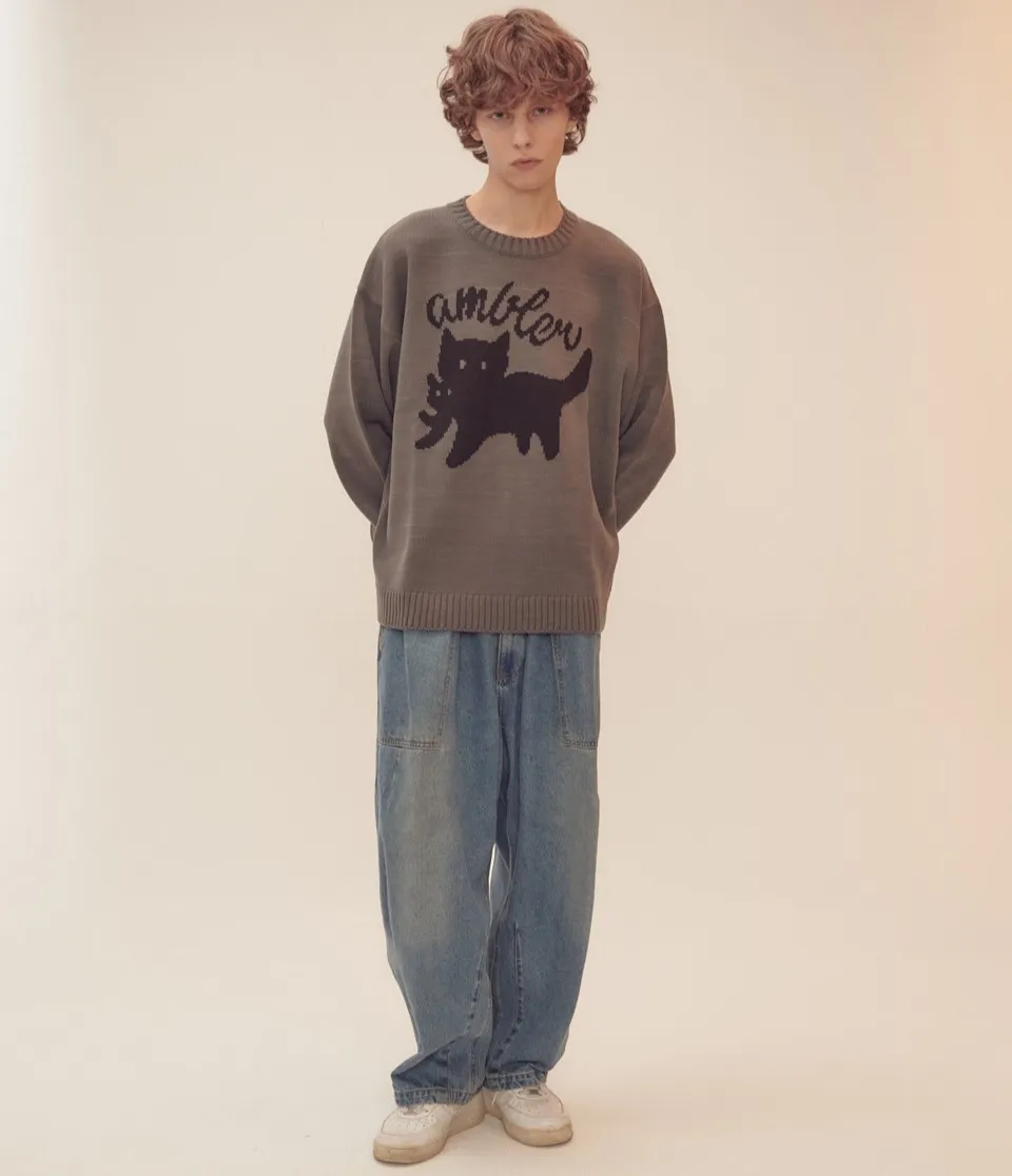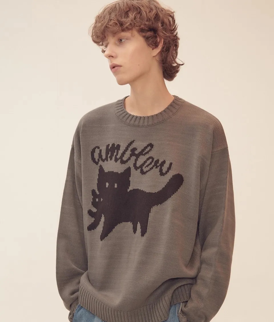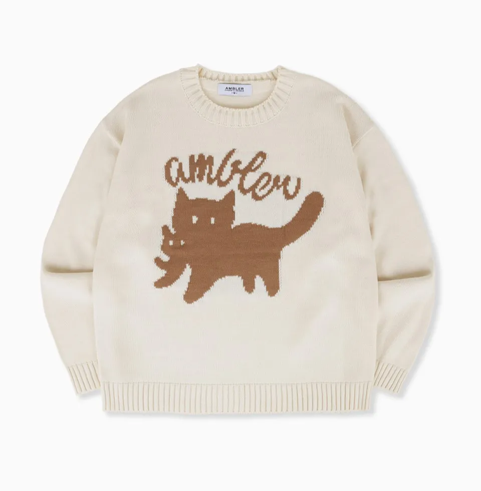 ambler041貓貓叼著小貓可愛針織衫(原LV459) 米 灰 M L 官網價$1120 線上價$1090