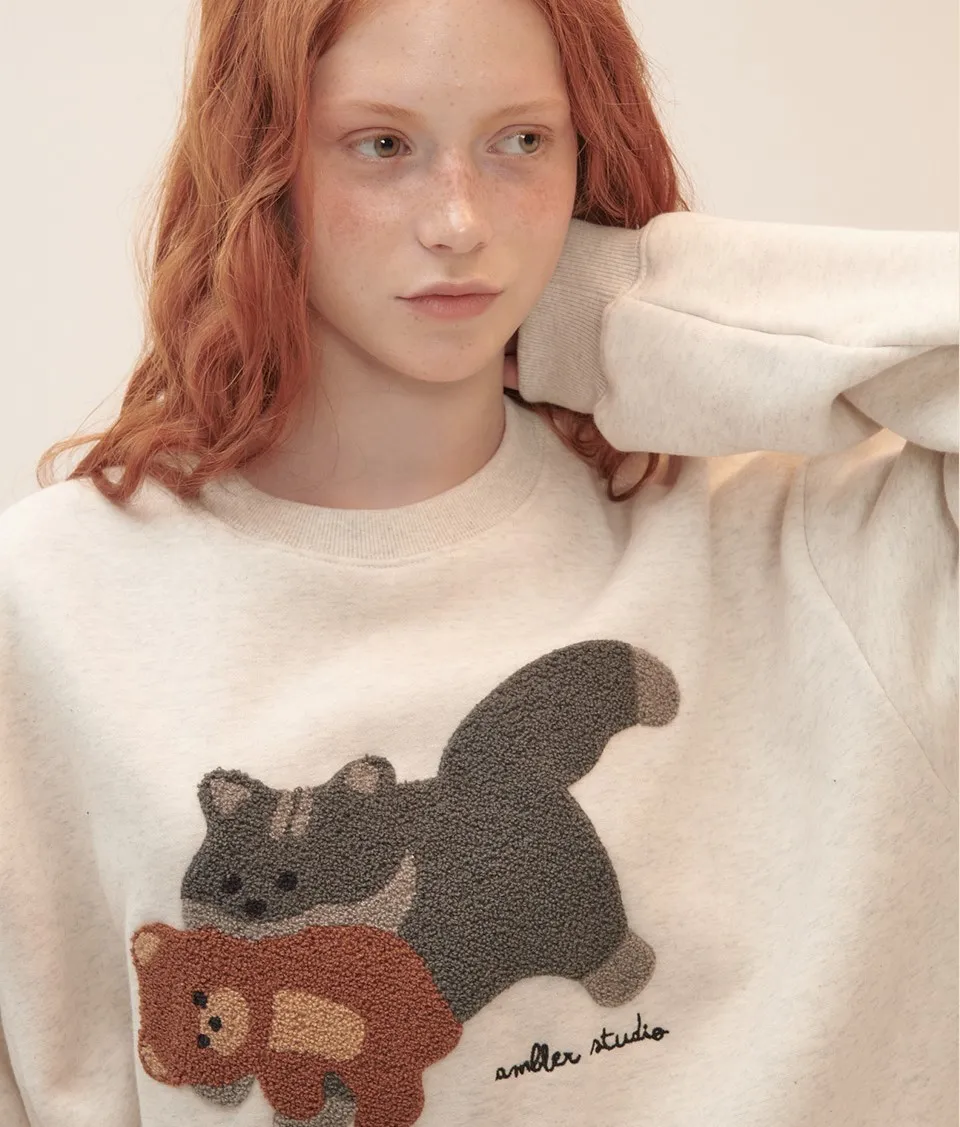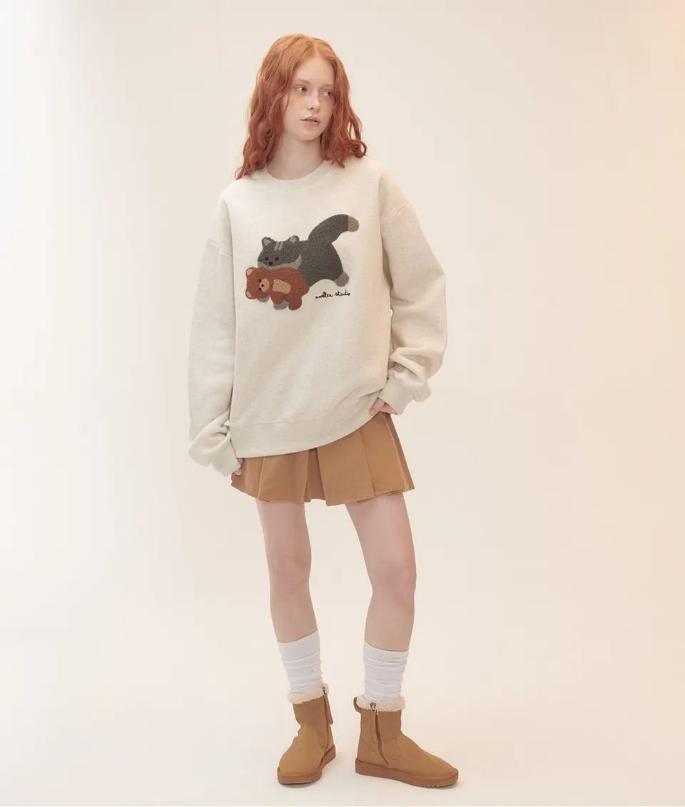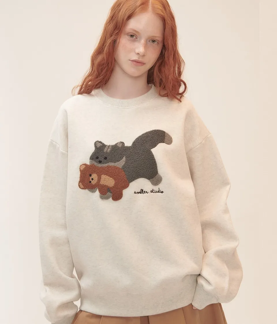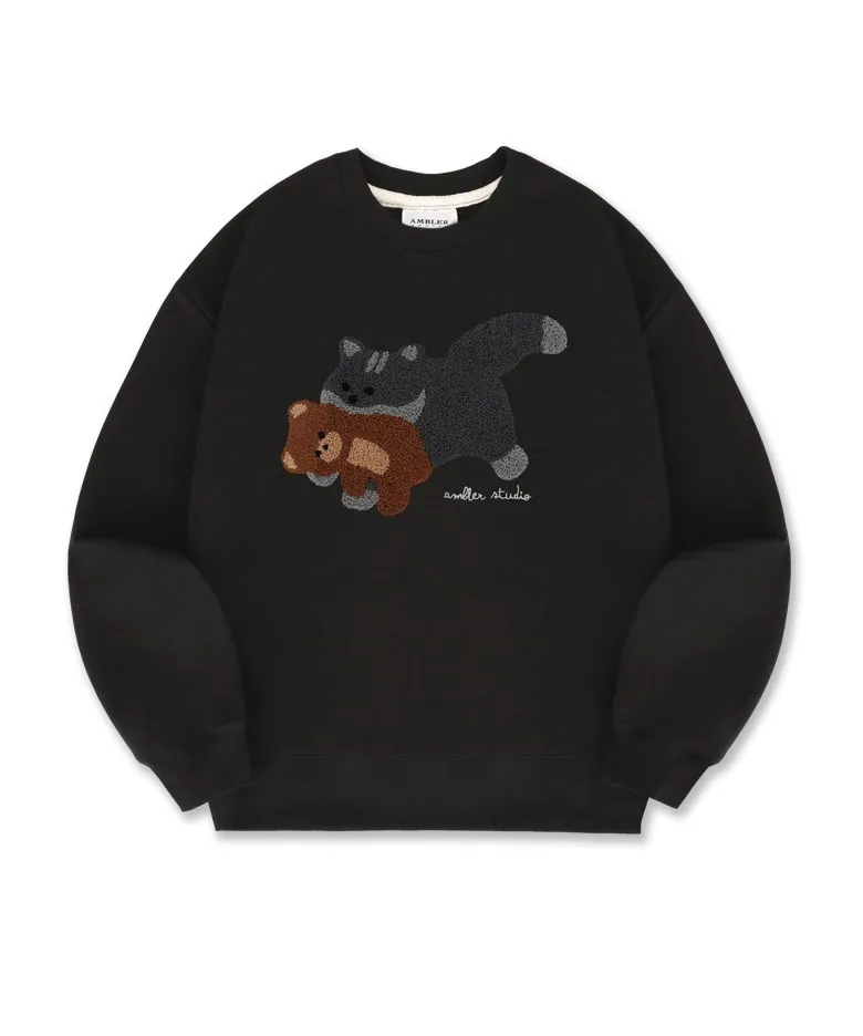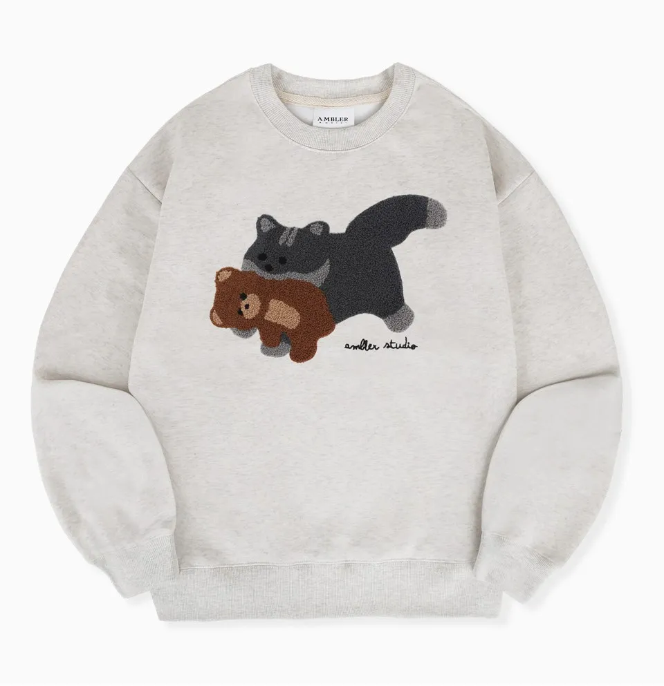 ambler043貓貓叼著熊熊出去玩大學T(原LV457) 灰 黑 S M L 官網價$990 線上價$960
