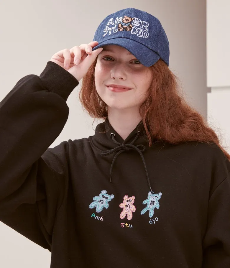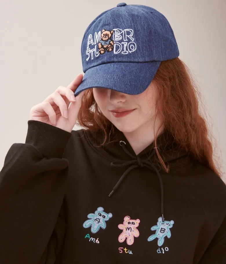 ambler048水洗刷色刺繡熊熊棒球帽(原LV452) 藍 灰 官網價$729 線上價$699