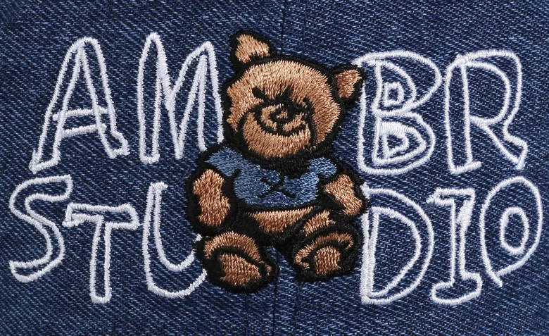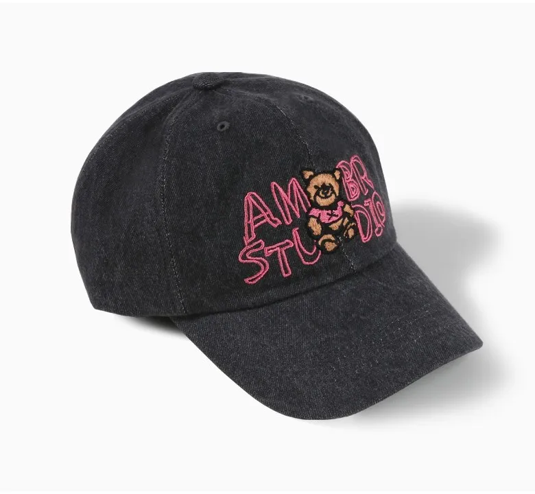 微笑熊的設計,用高密度刺繡提高質量的牛仔帽,