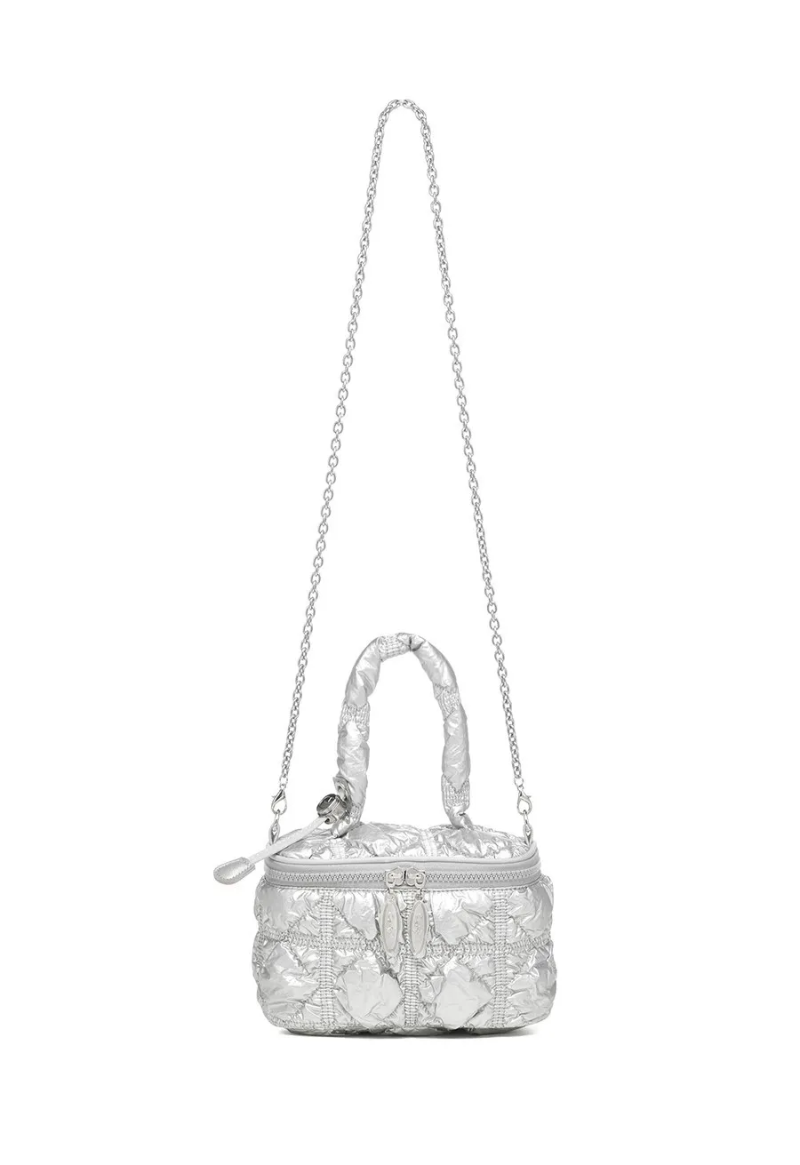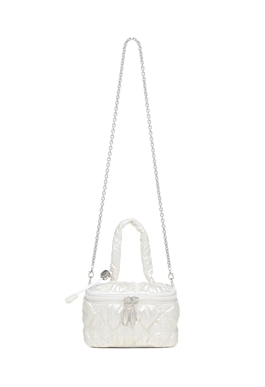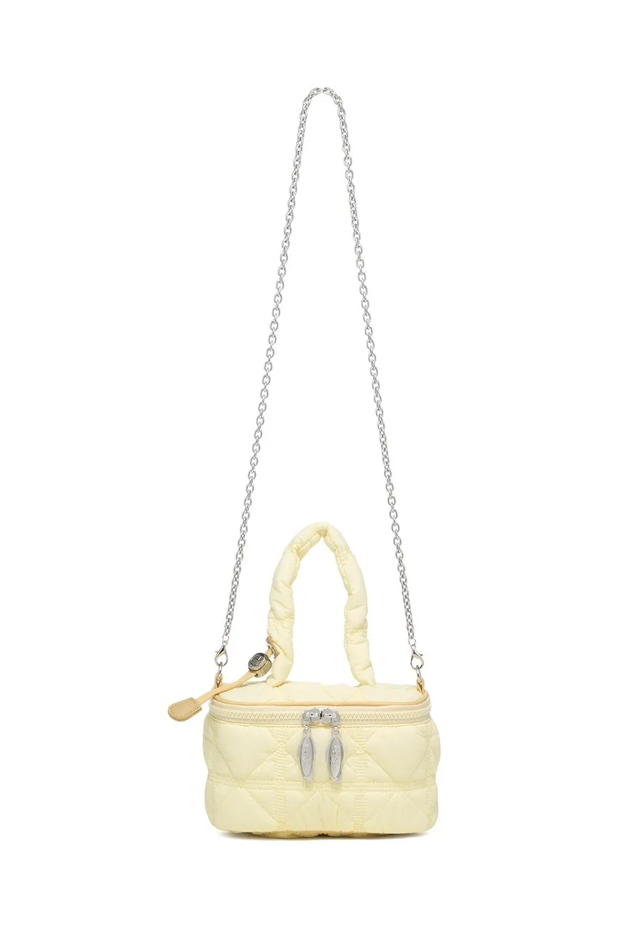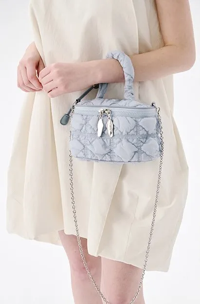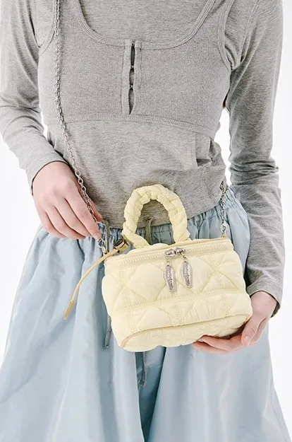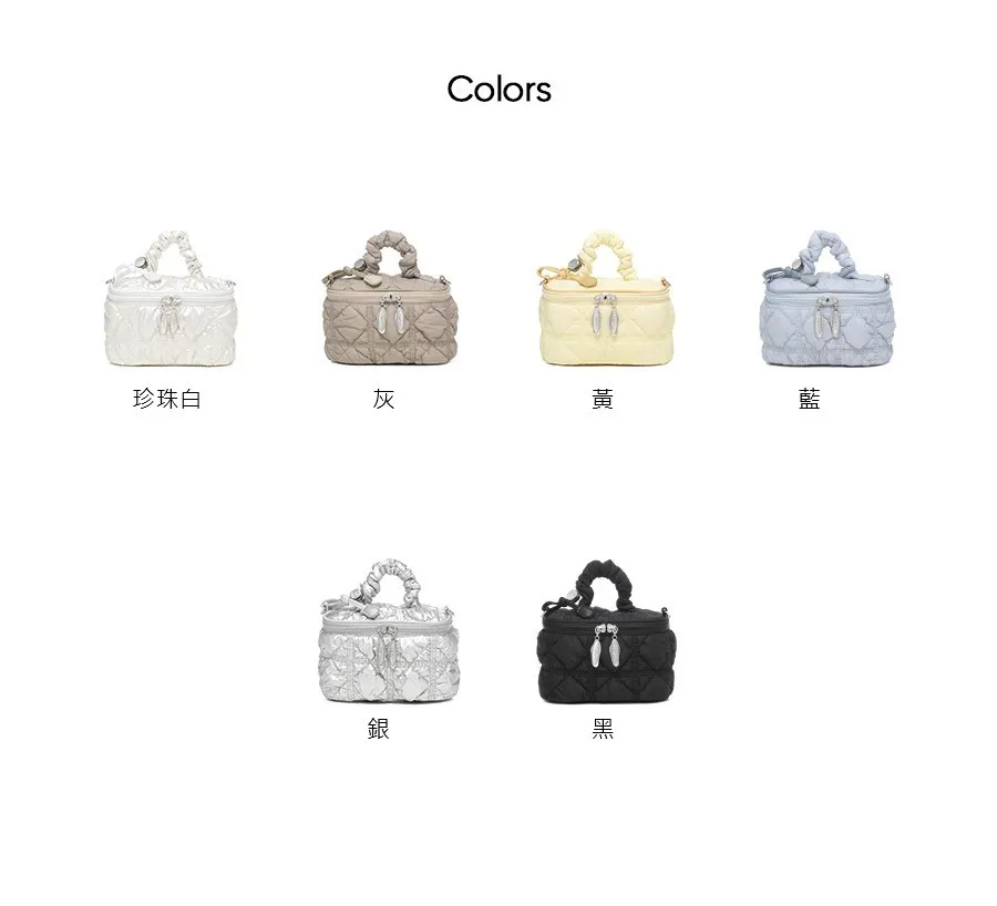 carlyn039輕巧winnie收納包 珍珠白 灰 黃 藍 銀 黑 售價$2040利用catlyn的標誌性柔軟衍縫材料的時尚迷你包,包內部有兩個卡槽,方便收納和輕便的隨身物品,鍊條背帶兼具裝飾效果&可調節使用,可變成手提,肩背和斜背3way風格。以下顏色,銀色 以下顏色,藍色 以下顏色,黃色 以下顏色,珍珠白 以下顏色,灰色 以下顏色,黑色 以下顏色,如圖所示