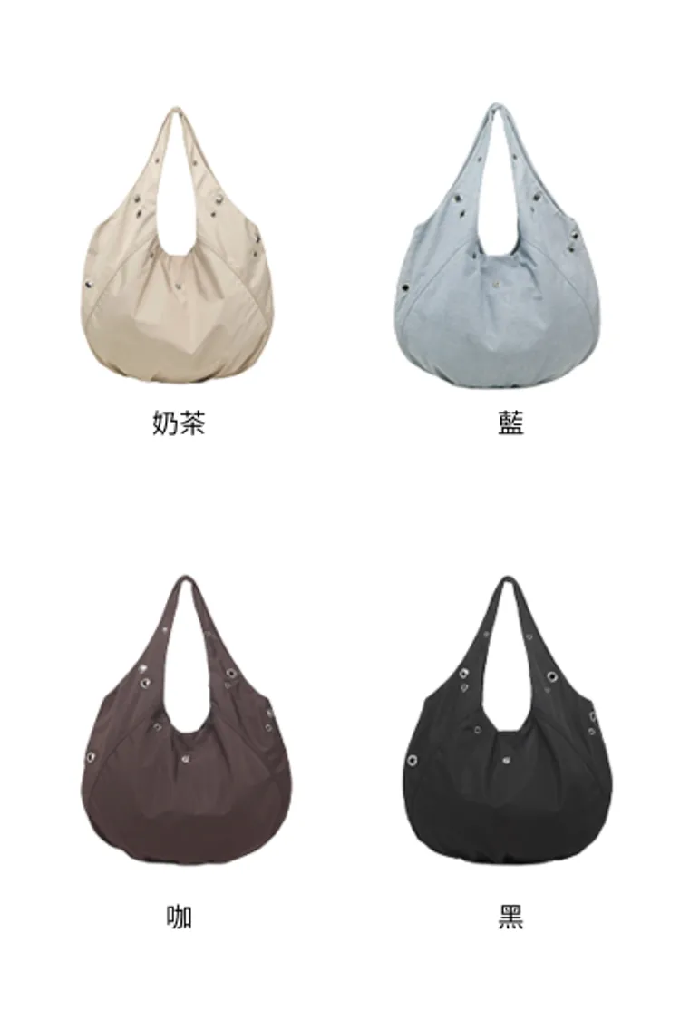 carlyn043個性鐵圈大容量肩背包(易夢伶同款) 奶茶 咖 黑 藍 售價$2680氛圍穿搭女神易夢伶機場同款個性鐵圈裝飾隨興包型打造不經意鬆弛感 尺寸CM 長*高 58.5*39 以下為奶茶穿搭👇🏻 以下為咖色穿搭👇🏻 以下顏色,黑色 以下顏色,藍色 以下顏色,如圖所示