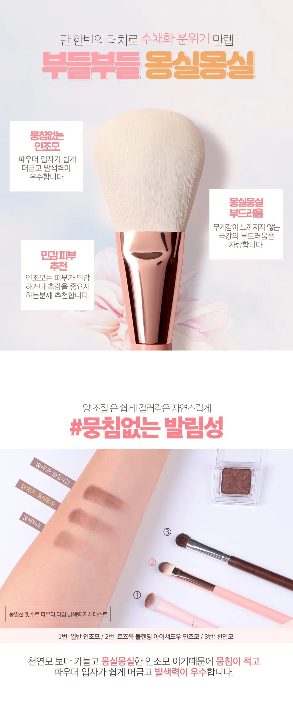 不易結塊的人造毛 抓粉力佳,顯色力優異。