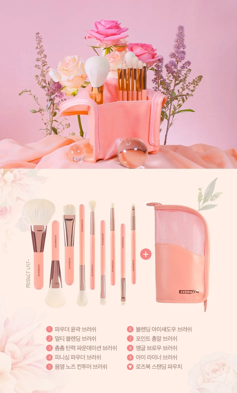 coringco002玫瑰化妝刷具套組(9入+刷具包) 售價$980