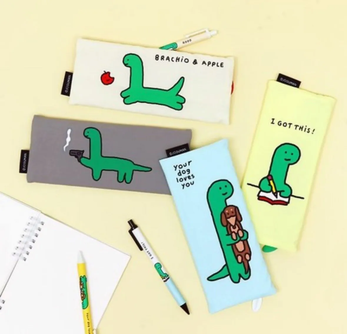 jogu007韓國Joguman恐龍薄款鉛筆盒收納袋(原NZ276) 米 黃 藍 灰 韓國原價$600 本檔特價$380