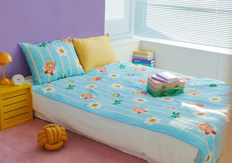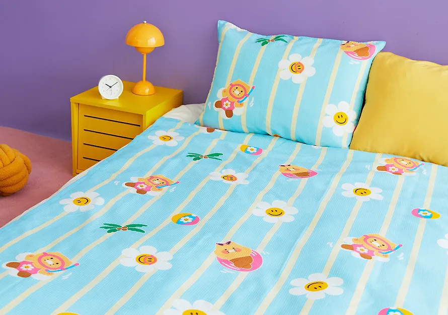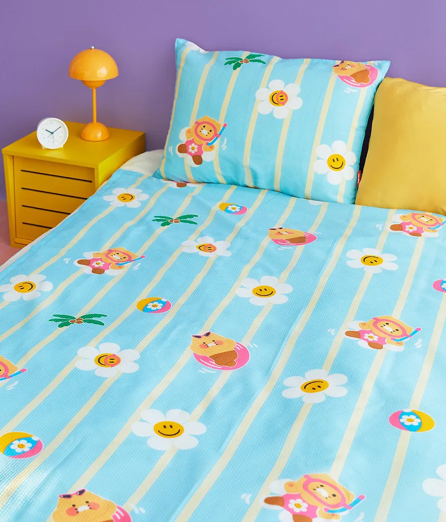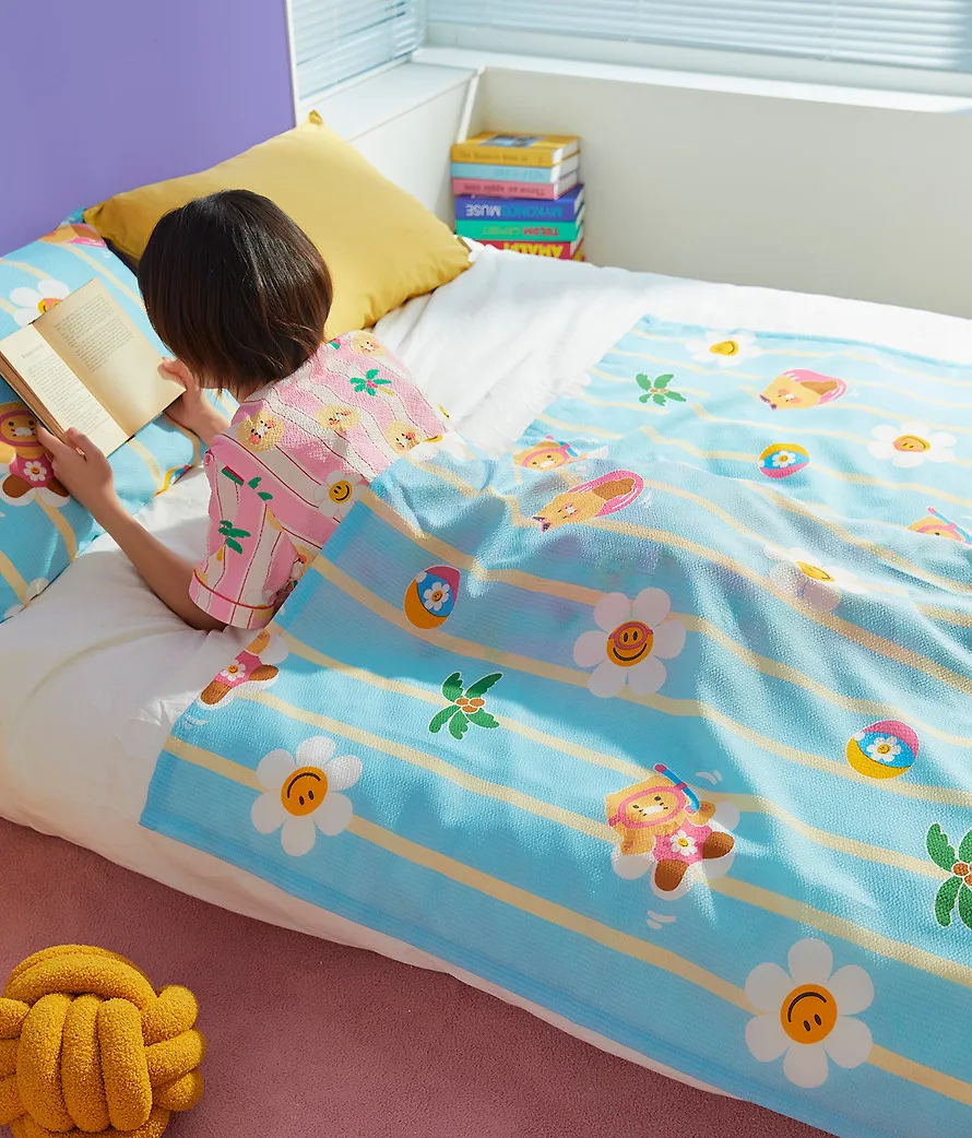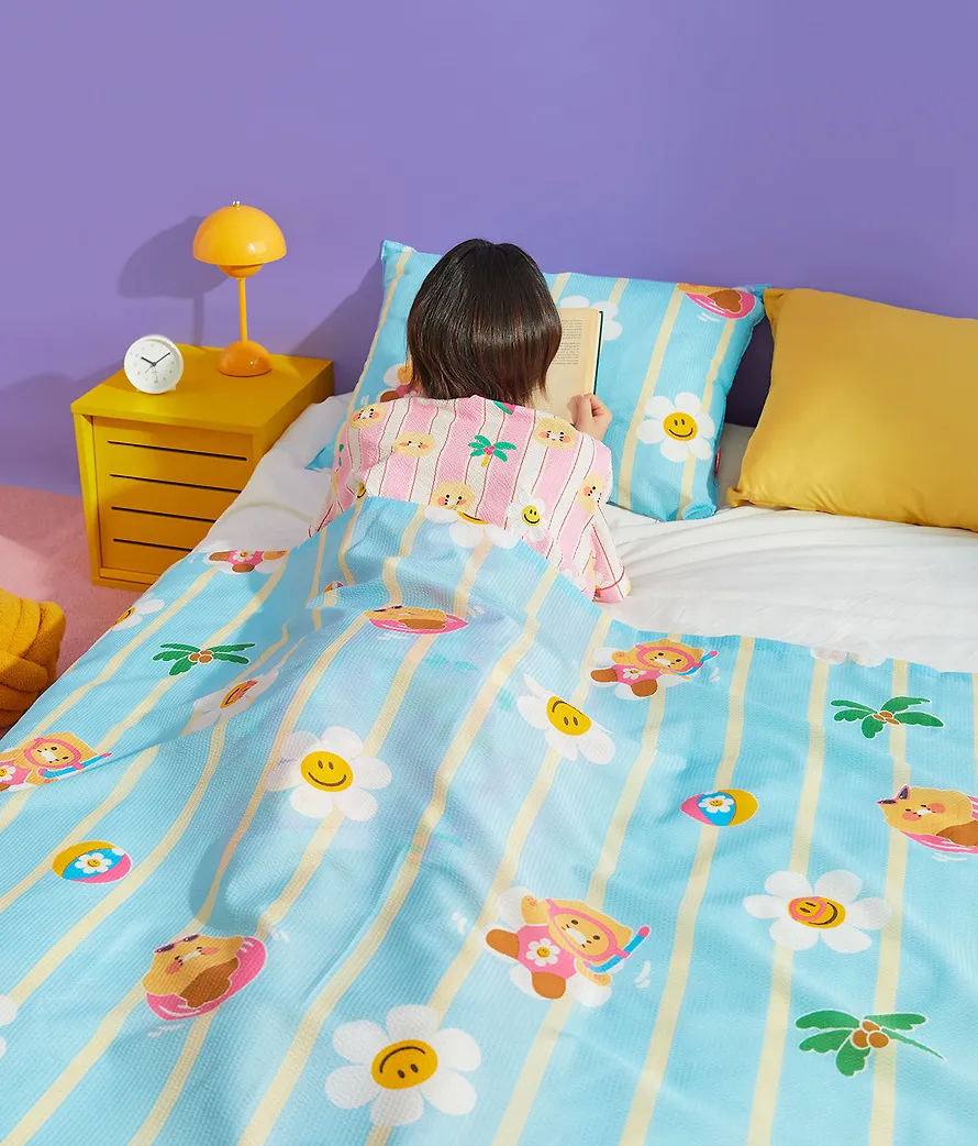 kakao139聯名wiggle夏日單人毯&枕頭套組 售價$1090泡泡紗面料,清涼觸感~涼爽的單人毯和枕頭套,從戲水的春植到搖曳的花朵,滿滿都是夏日的氣息~尺寸(cm),被子150*210枕頭套70*50