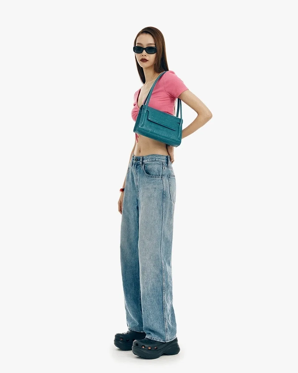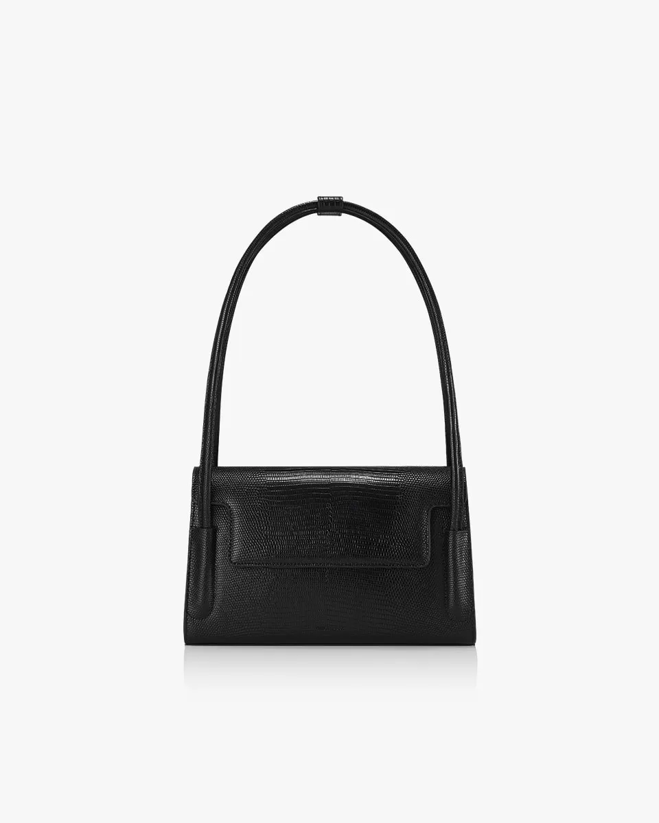 法式長方形翻蓋包,以現代方式重新詮釋 90 年代的經典情調。這款肩帶一體成型包採用迷人的設計,突出了手柄。