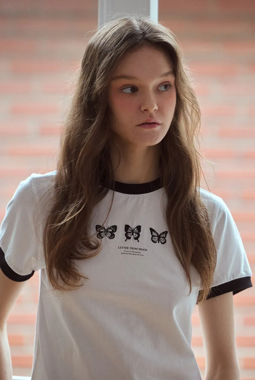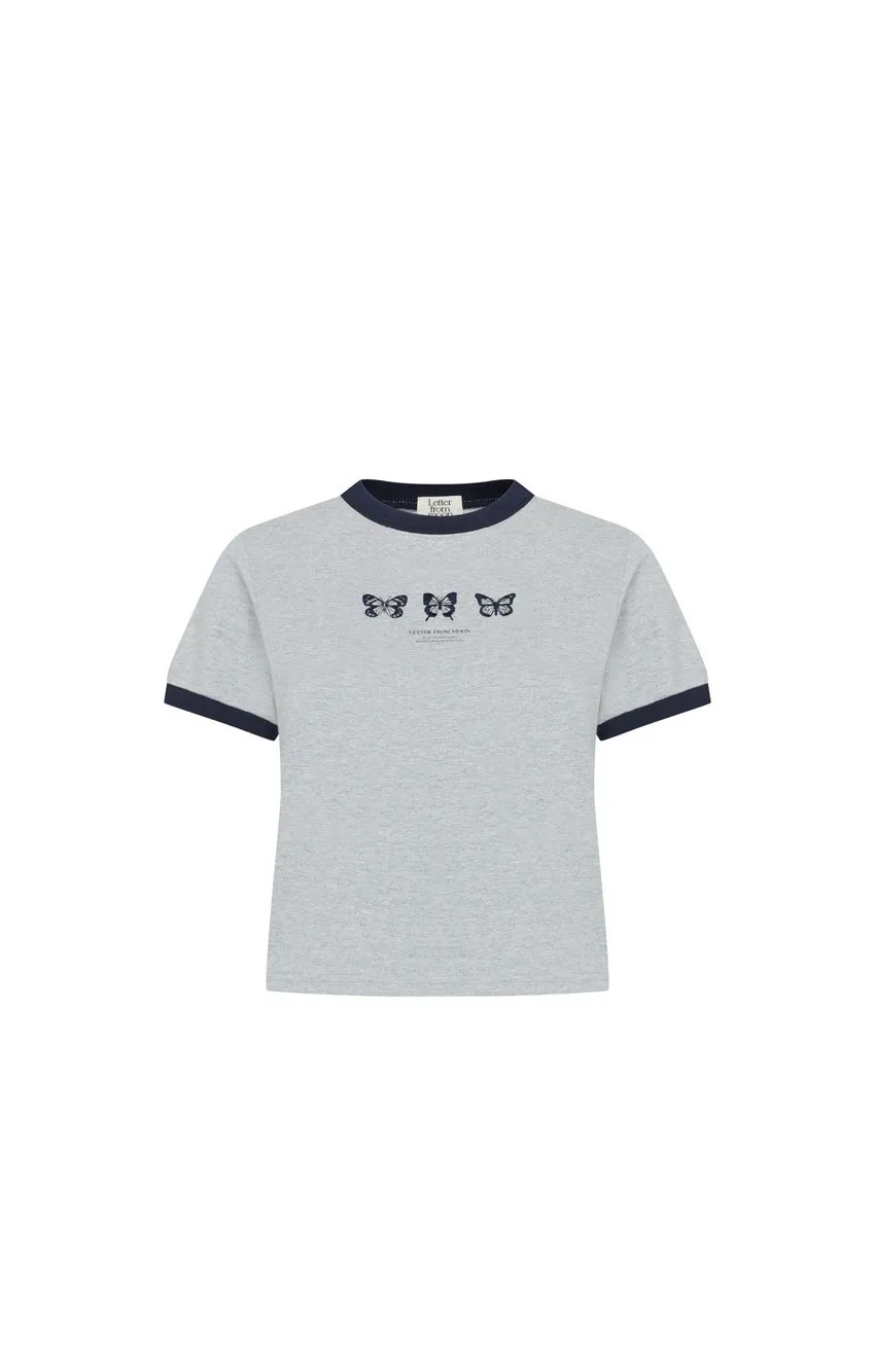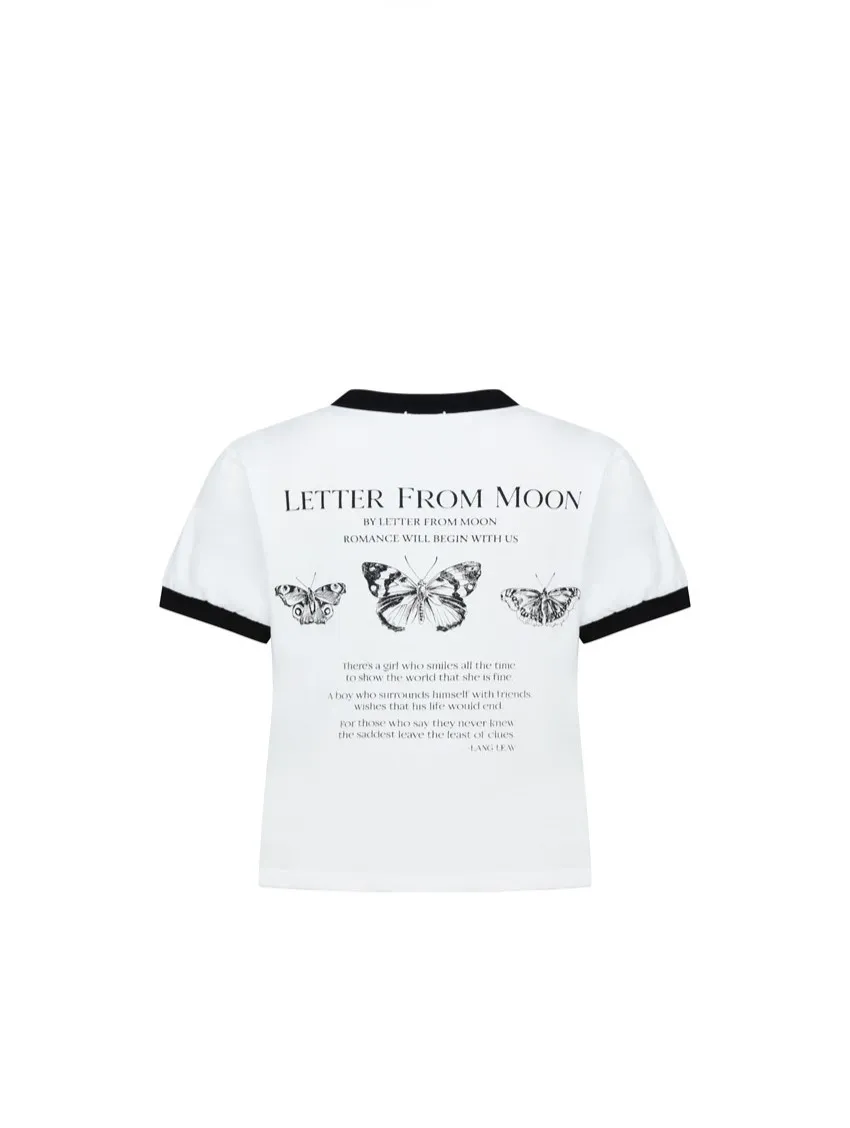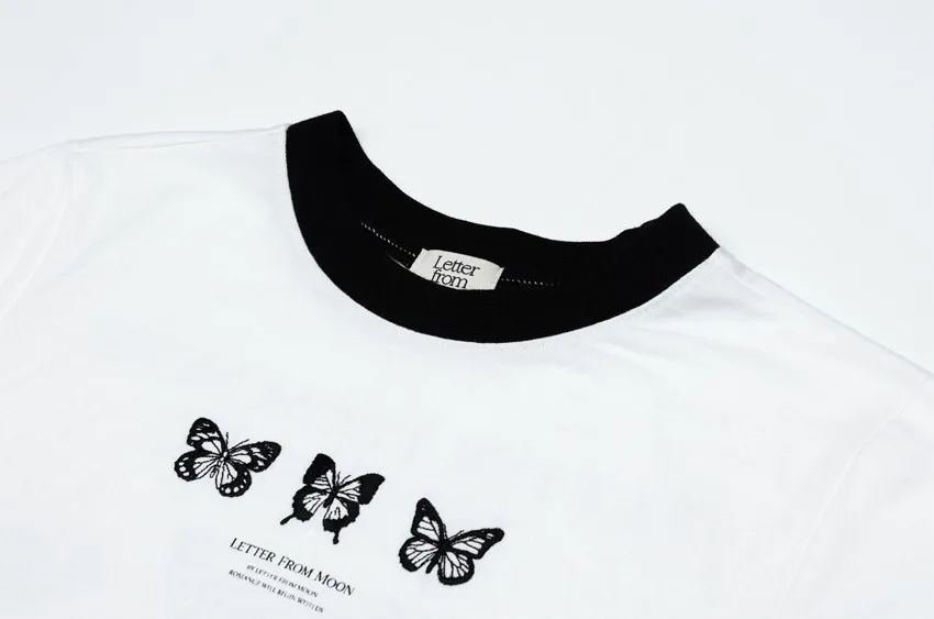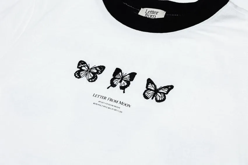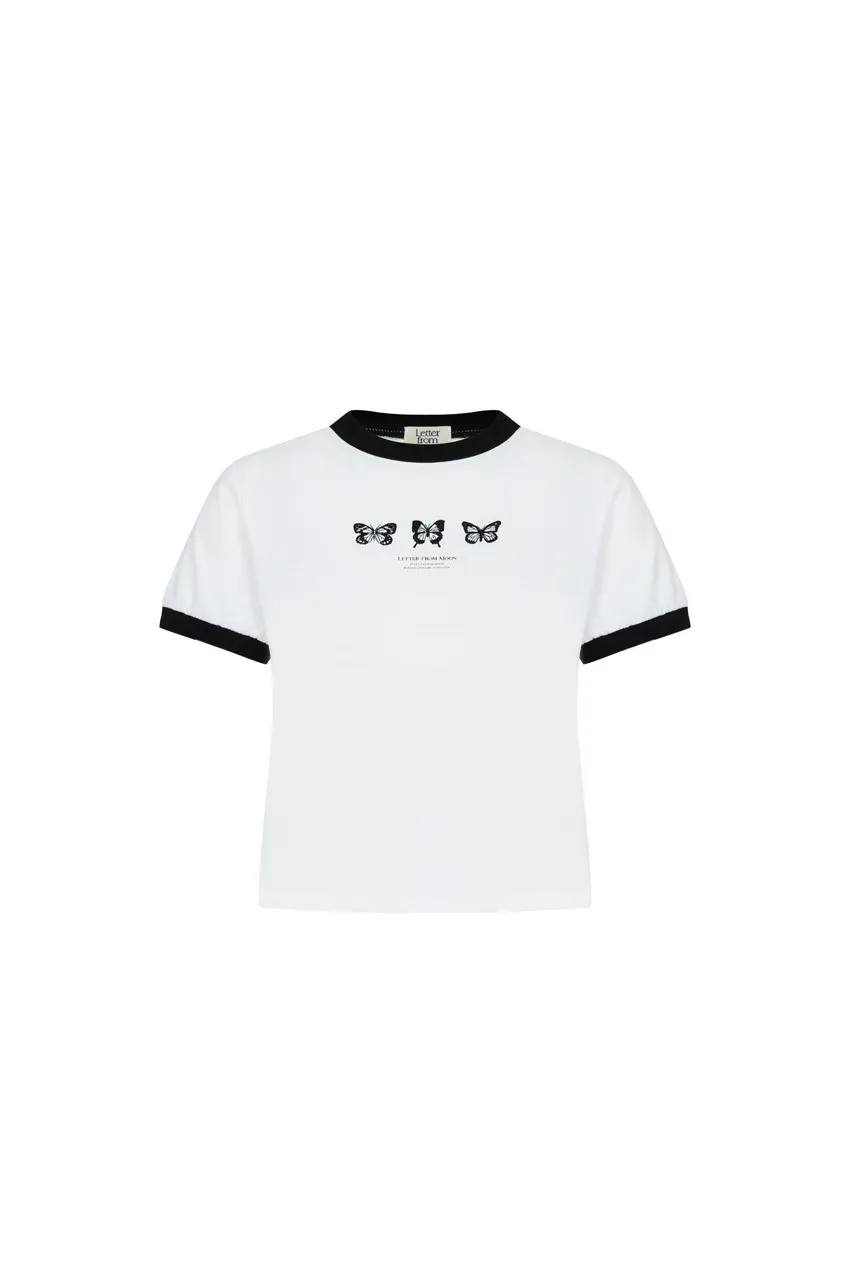 letter003蝴蝶刺繡滾邊短版Tshirt