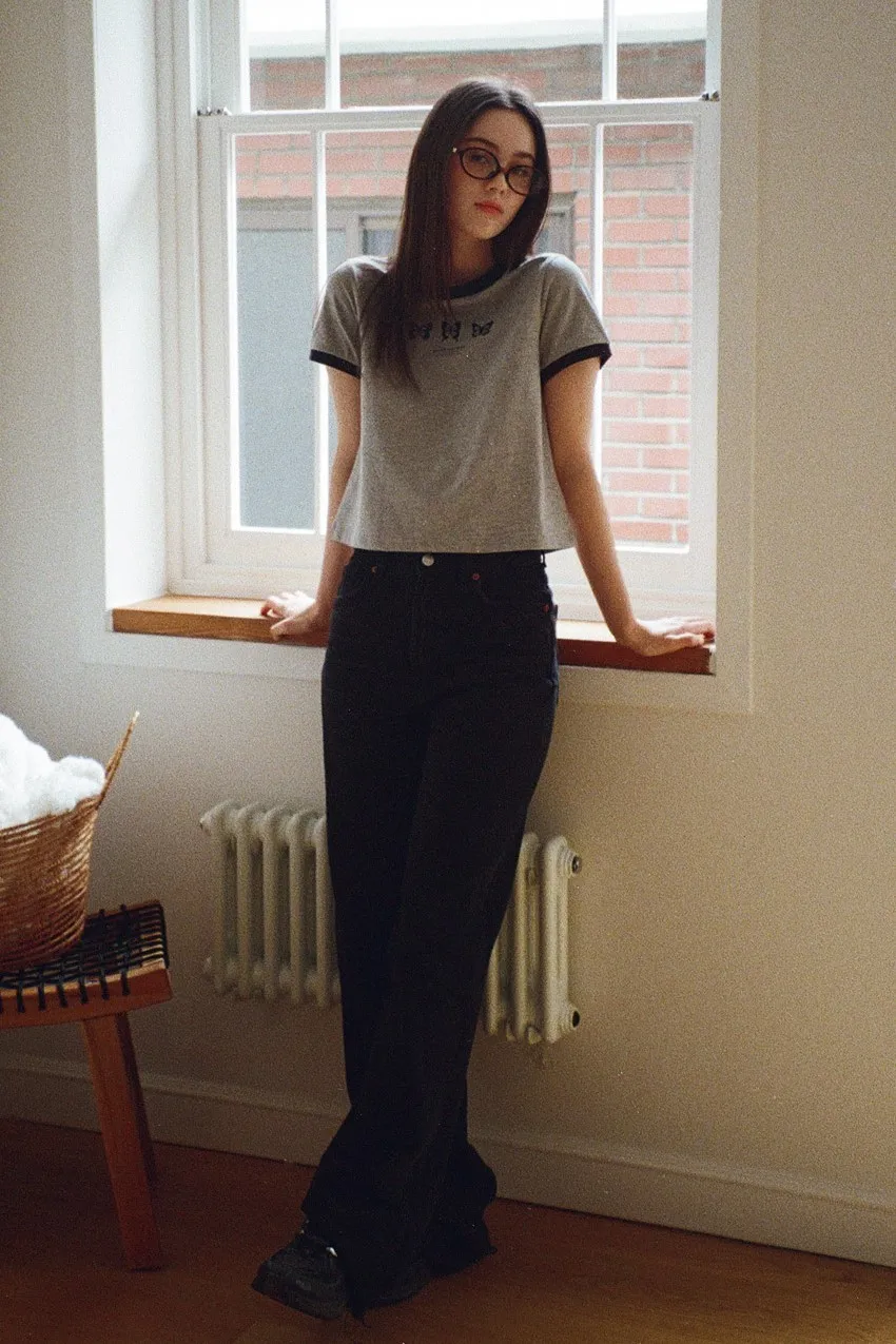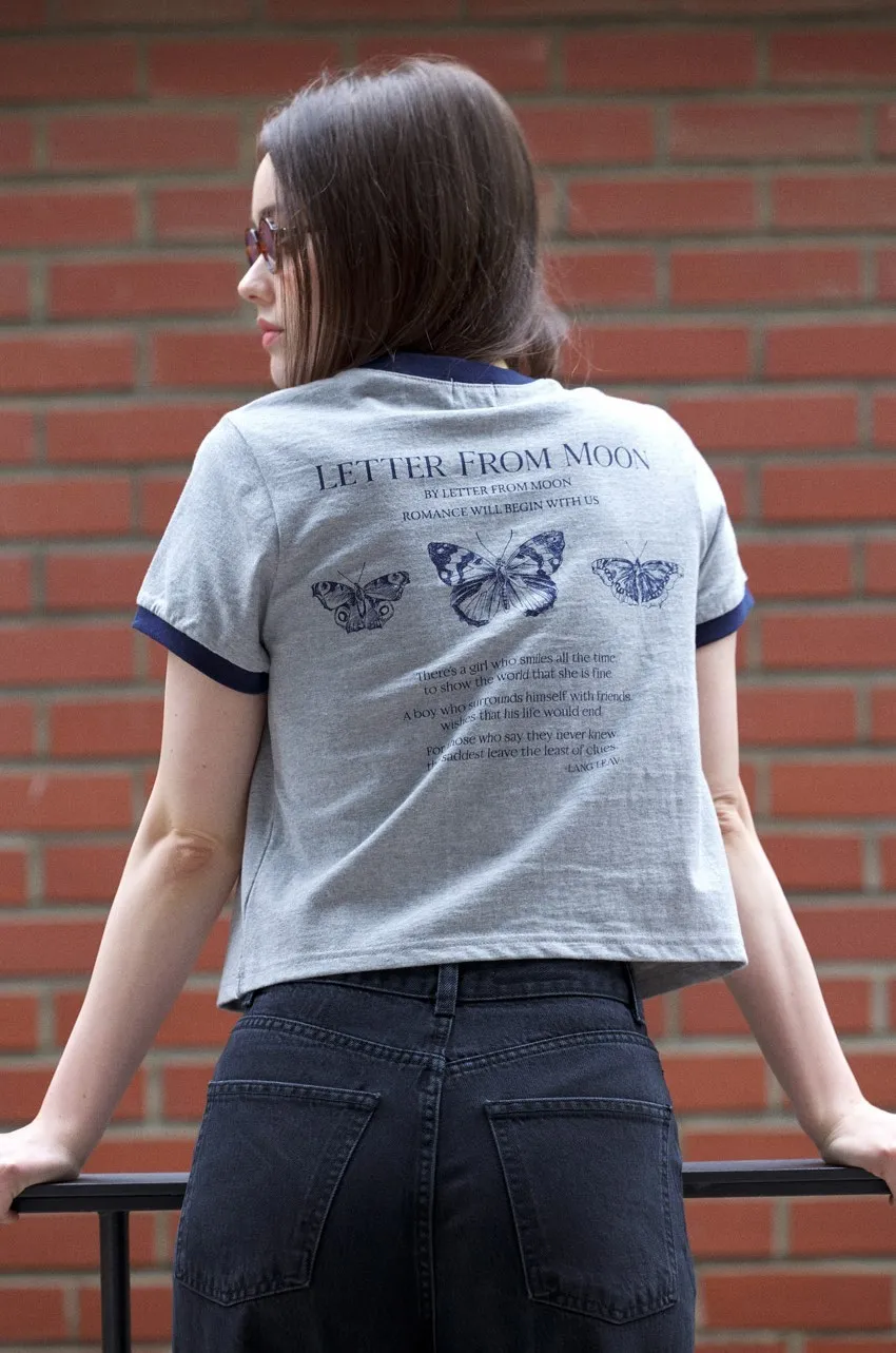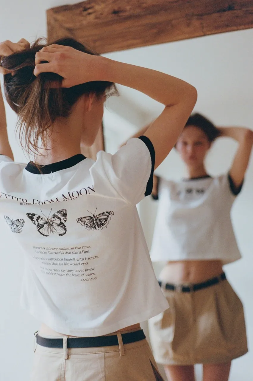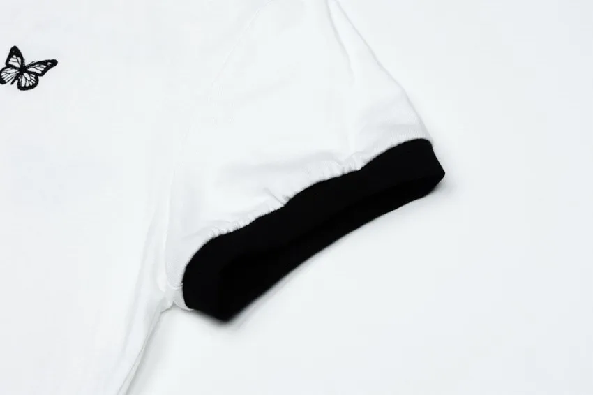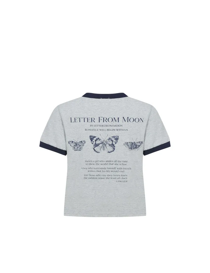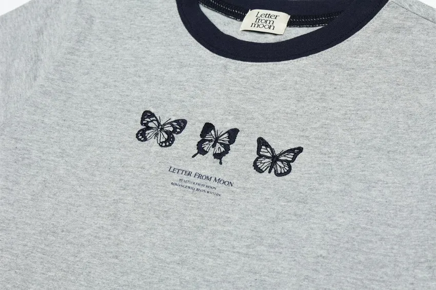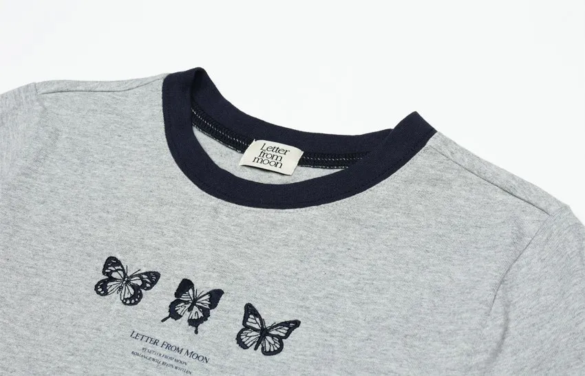 letter003蝴蝶刺繡滾邊短版Tshirt