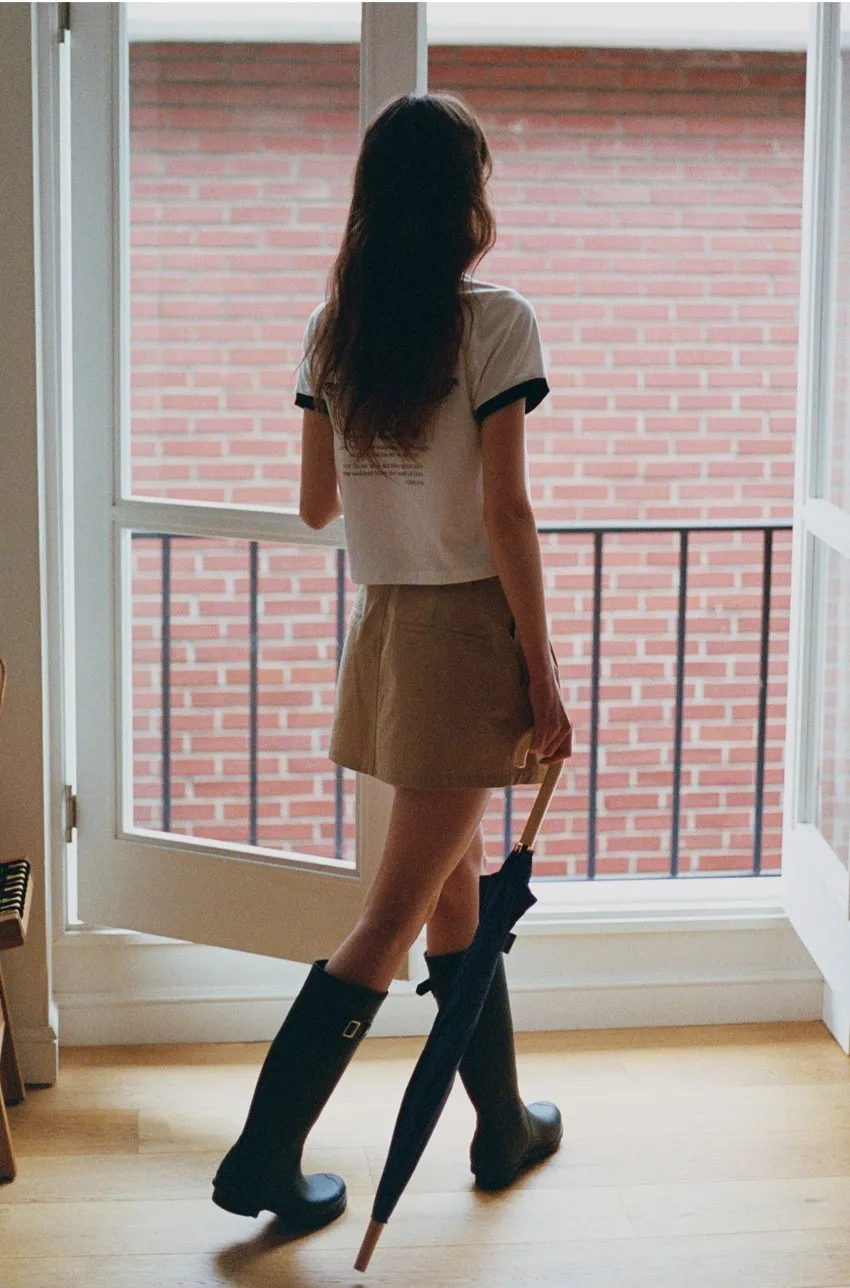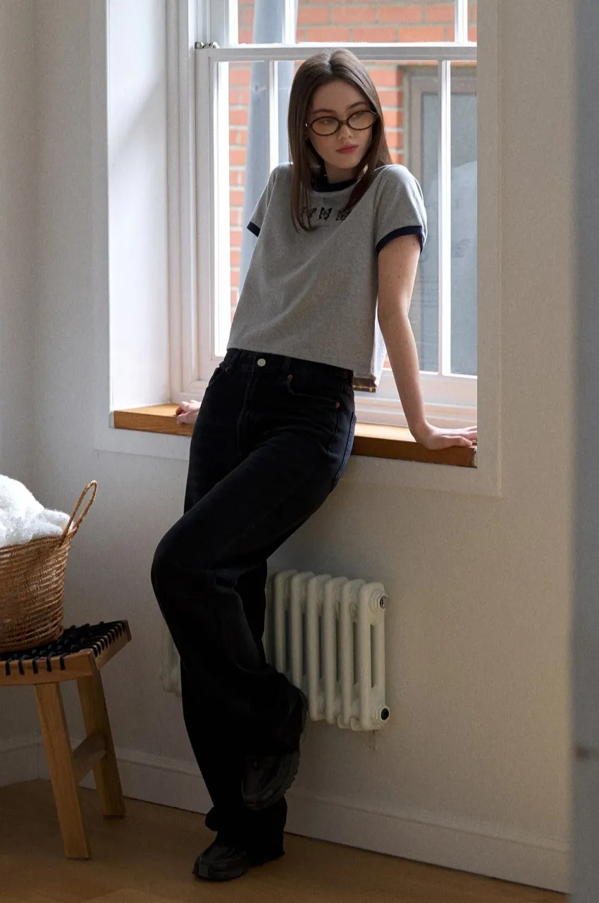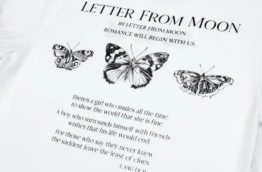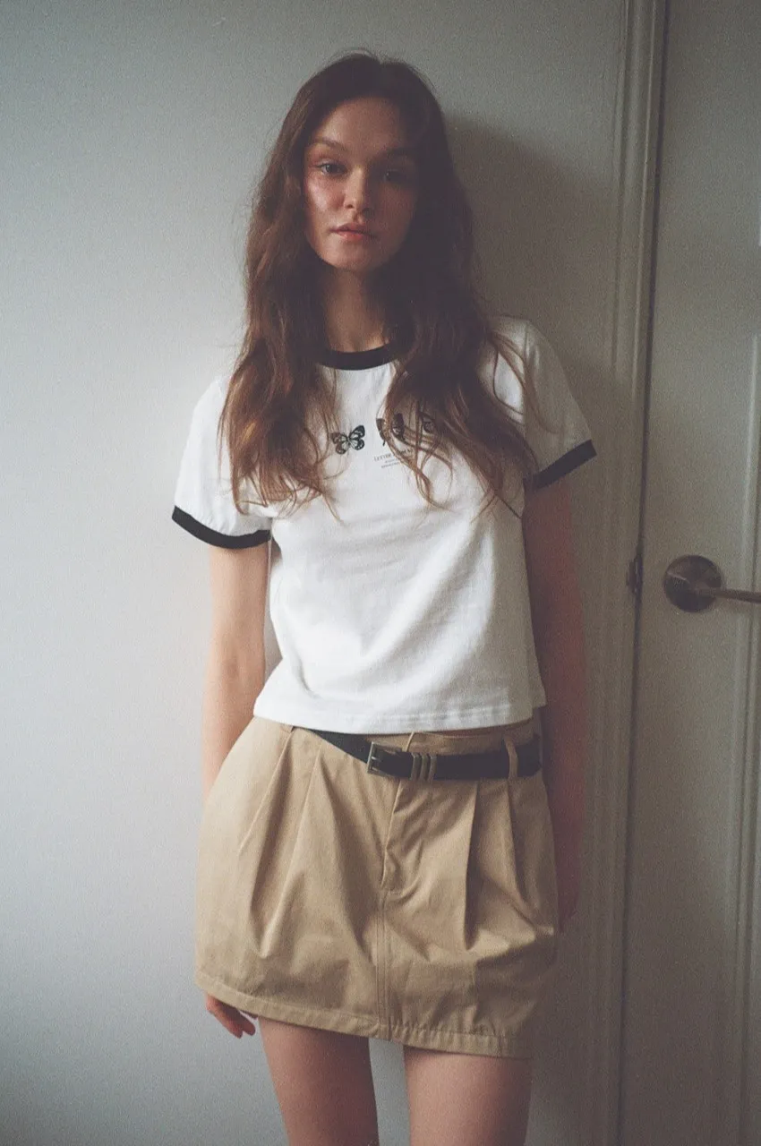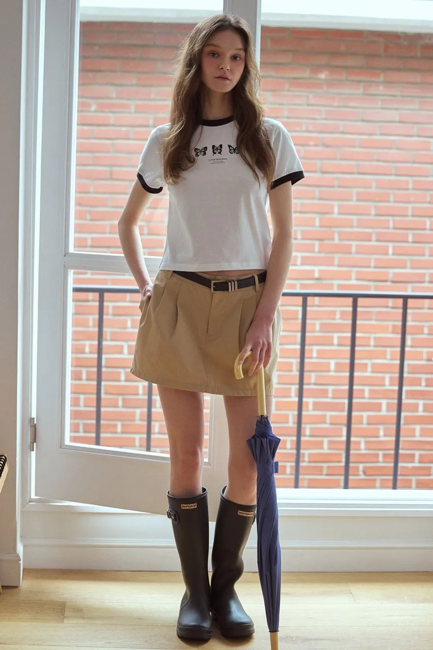 letter003蝴蝶刺繡滾邊短版Tshirt