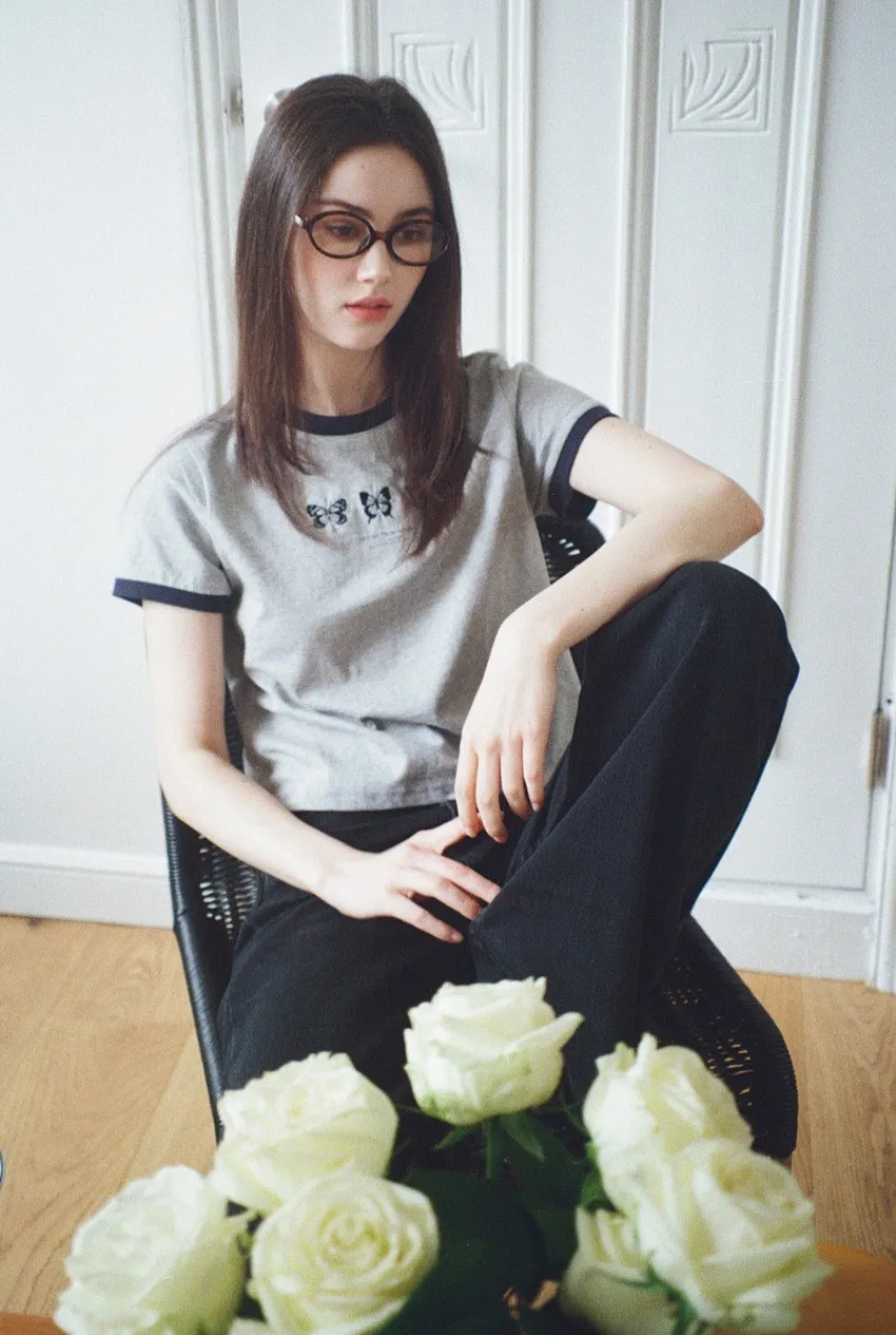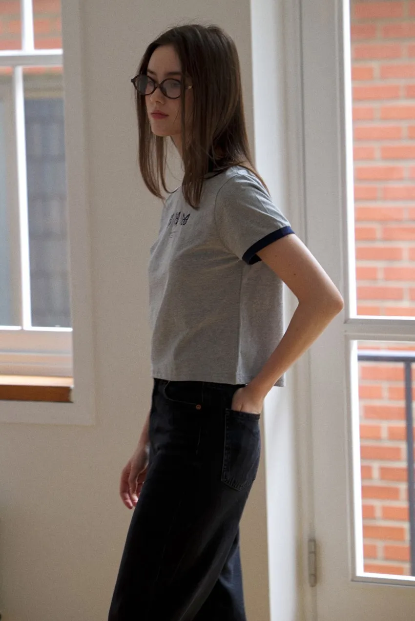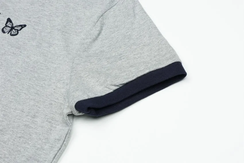 letter003蝴蝶刺繡滾邊短版Tshirt 白 灰 $1220