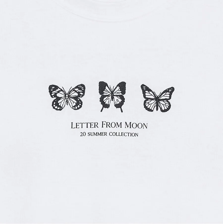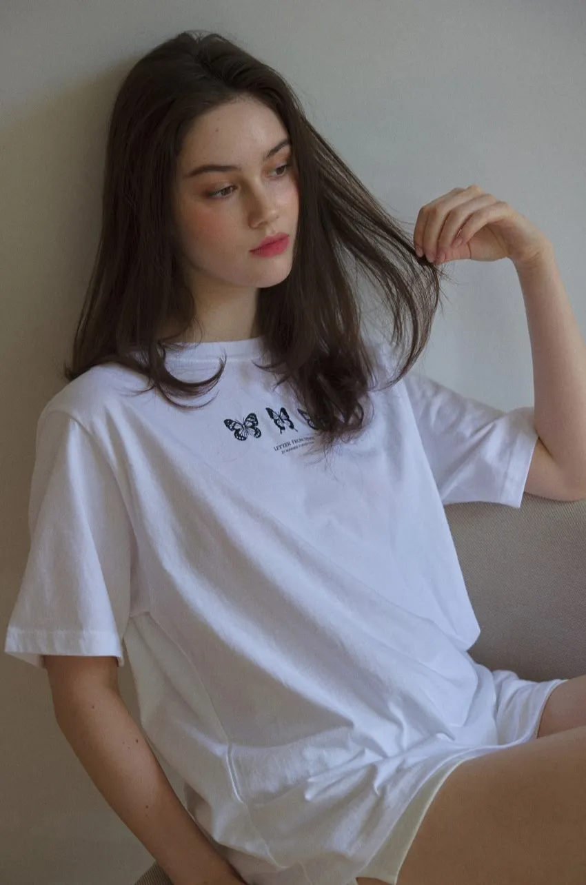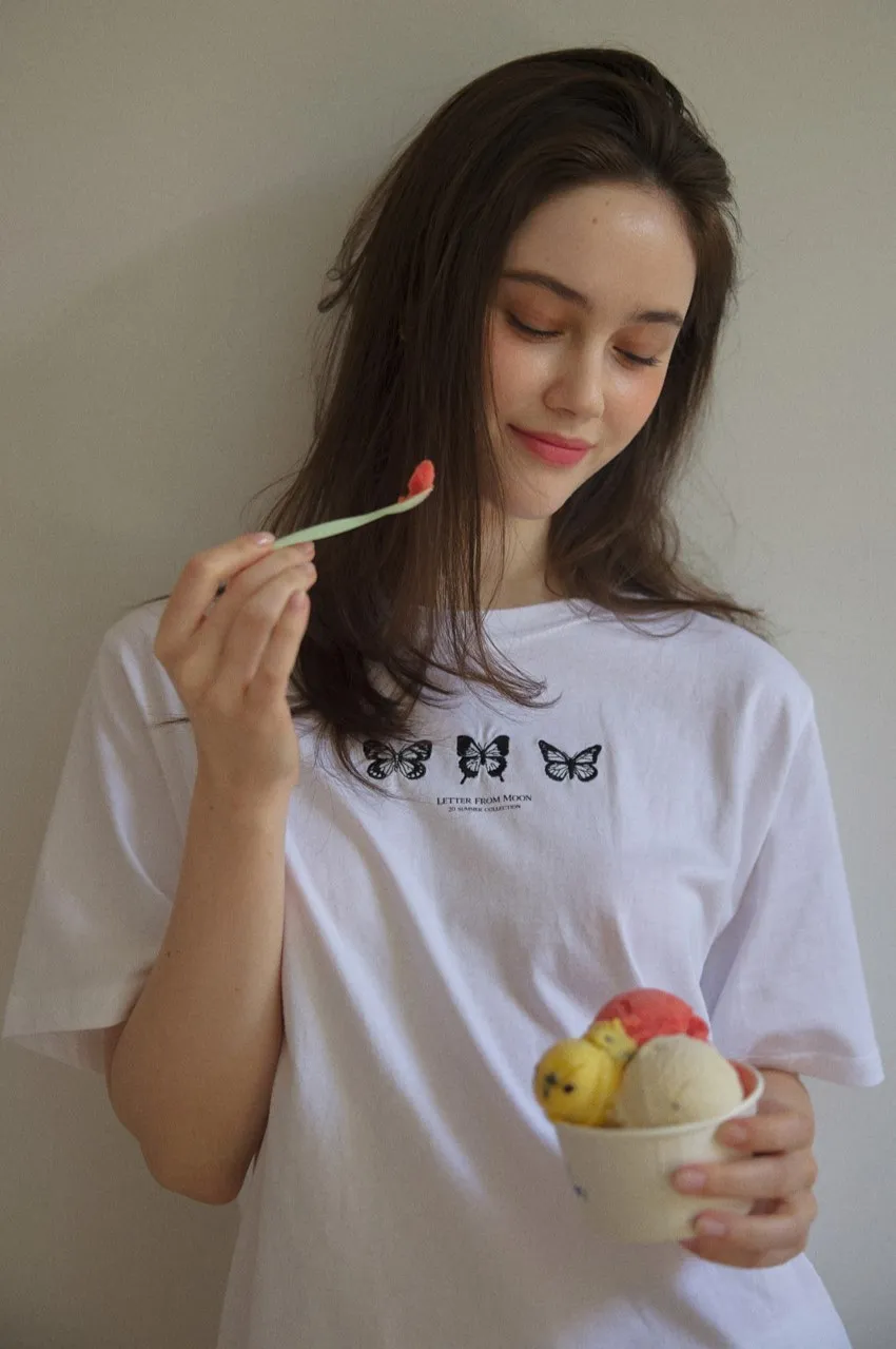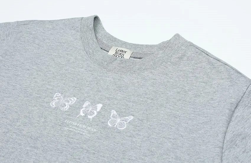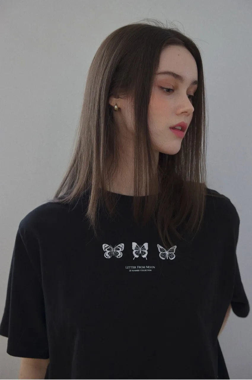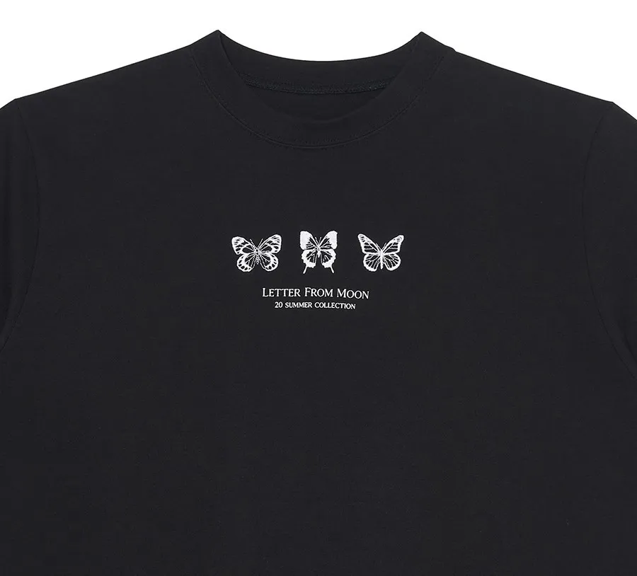 letter004蝶舞翩翩可愛Tshirt 黑 白 灰 $1190
