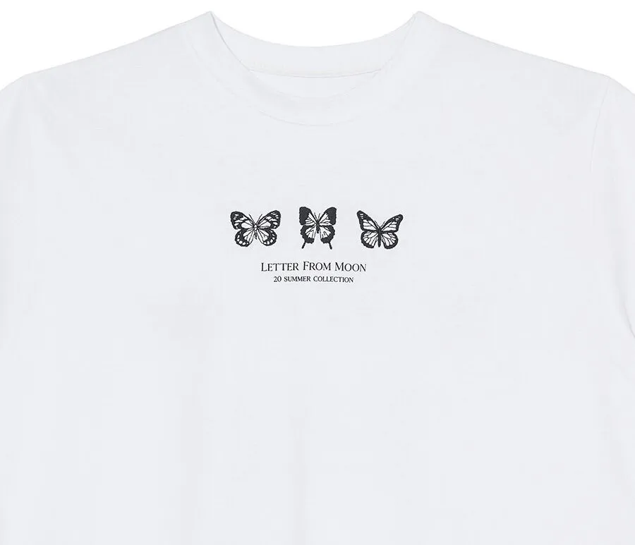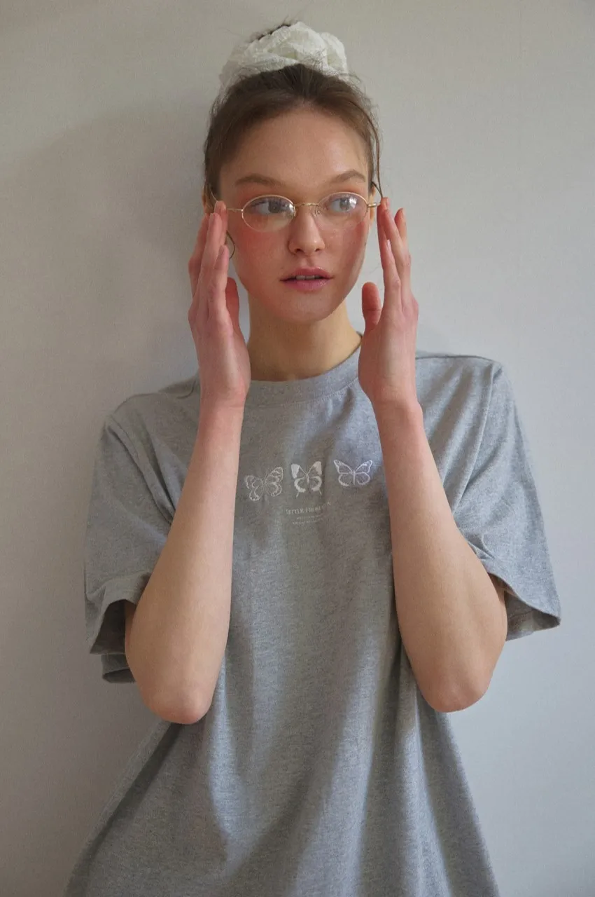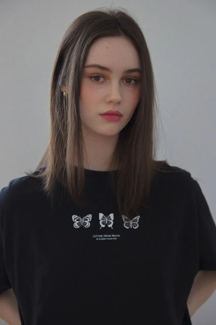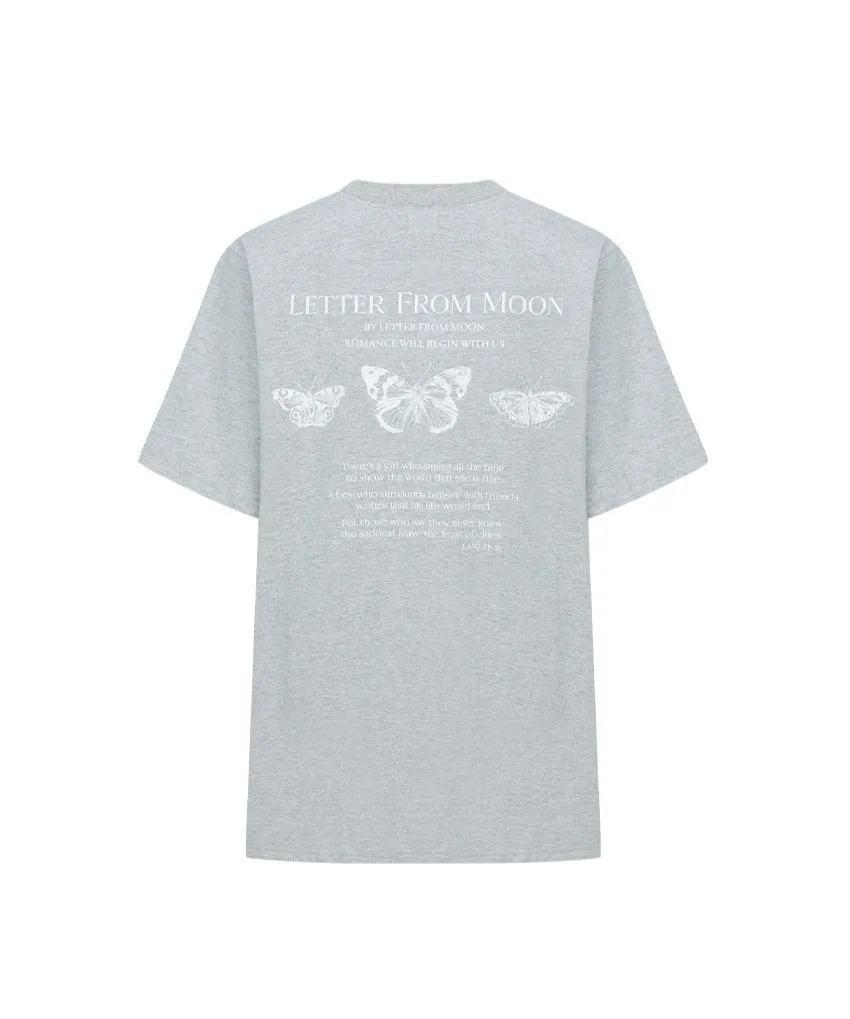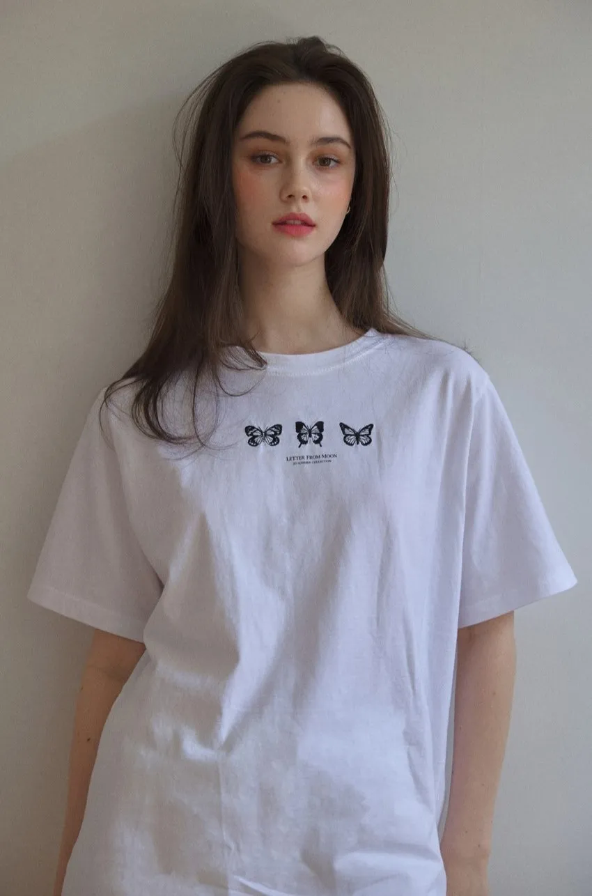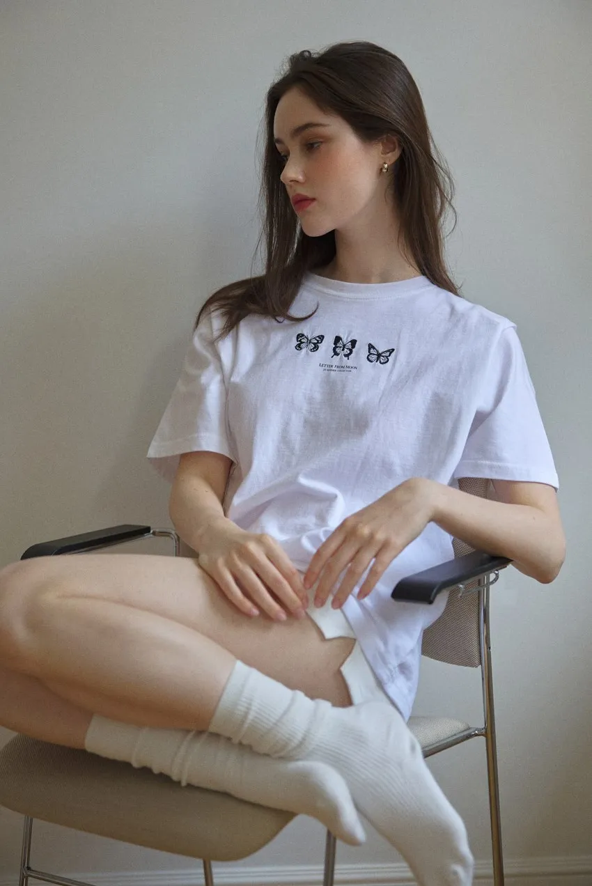 letter004蝶舞翩翩可愛Tshirt 黑 白 灰 $1190
