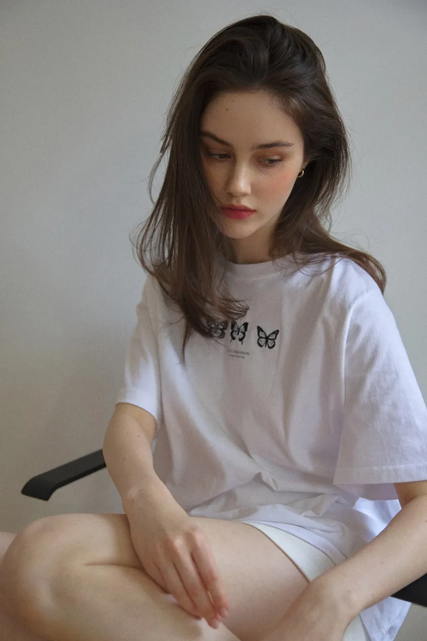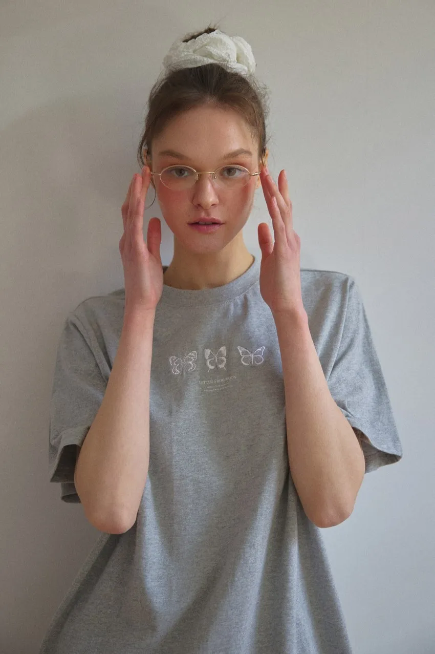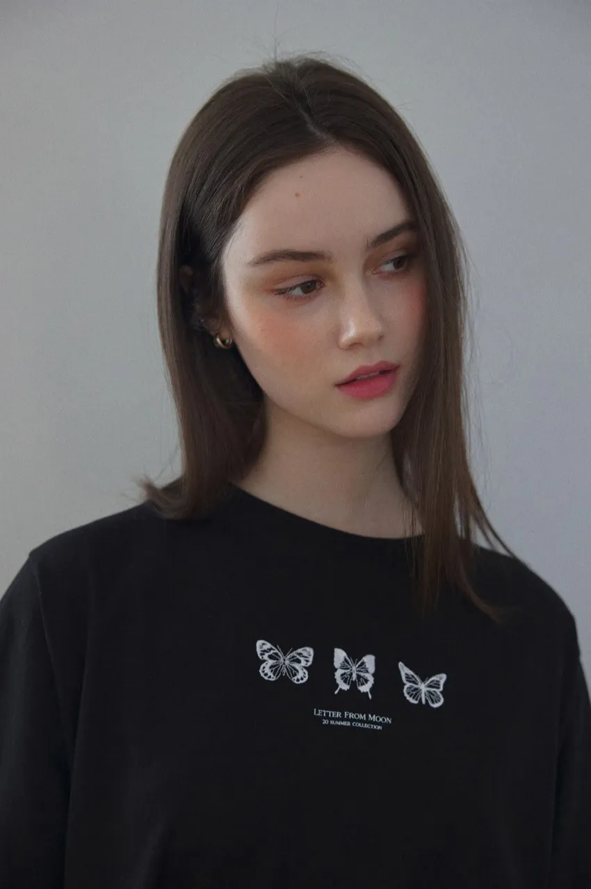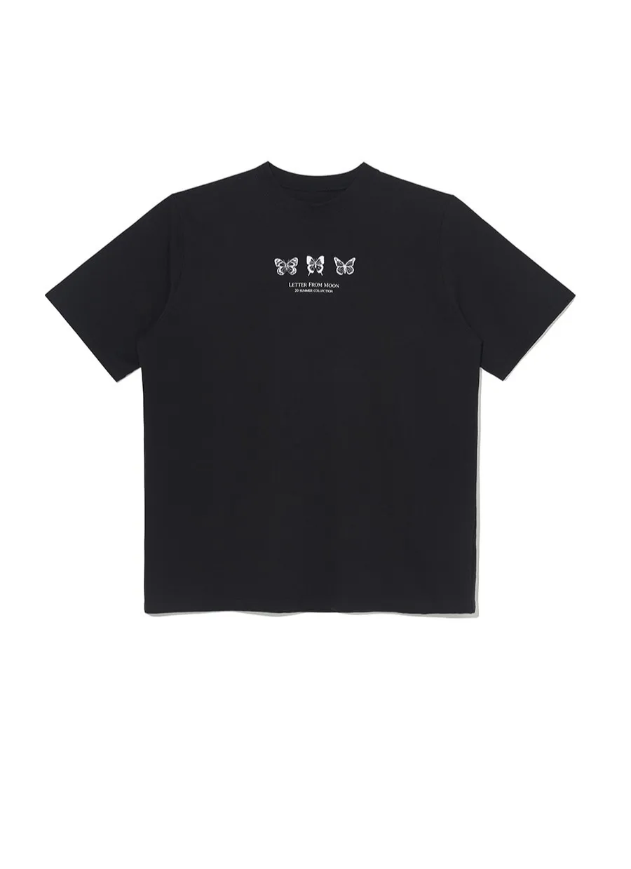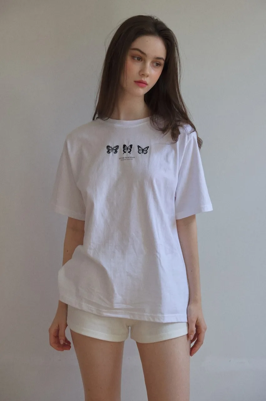 letter004蝶舞翩翩可愛Tshirt 黑 白 灰 $1190