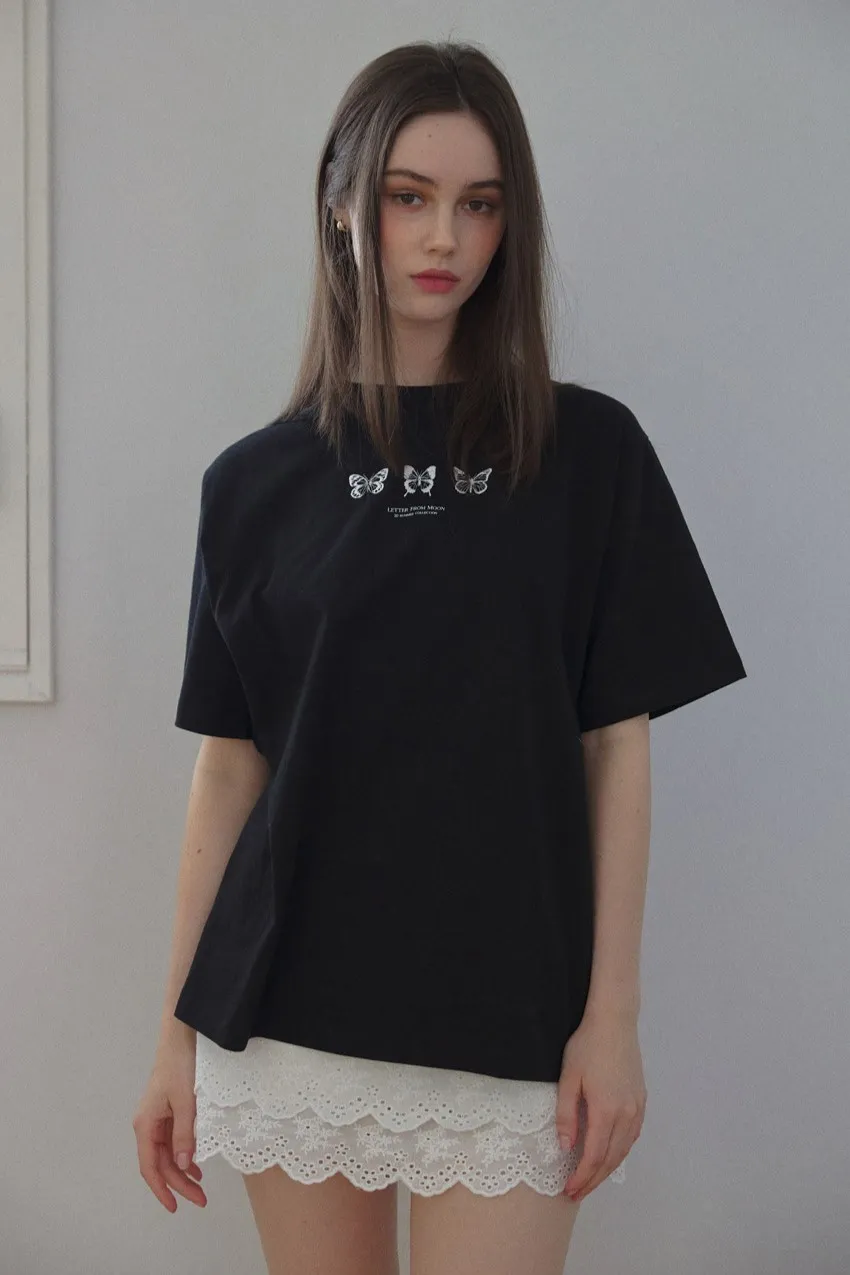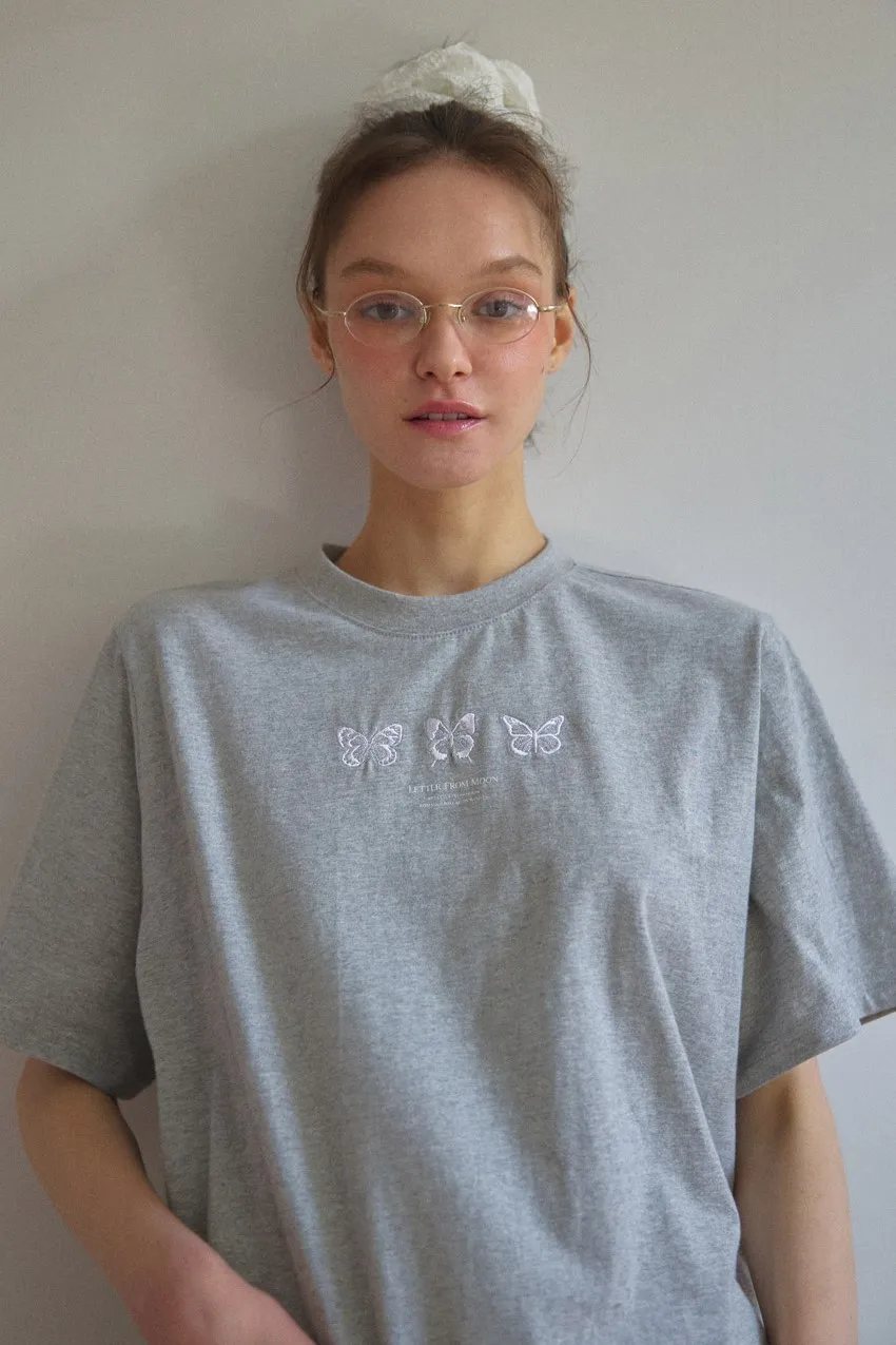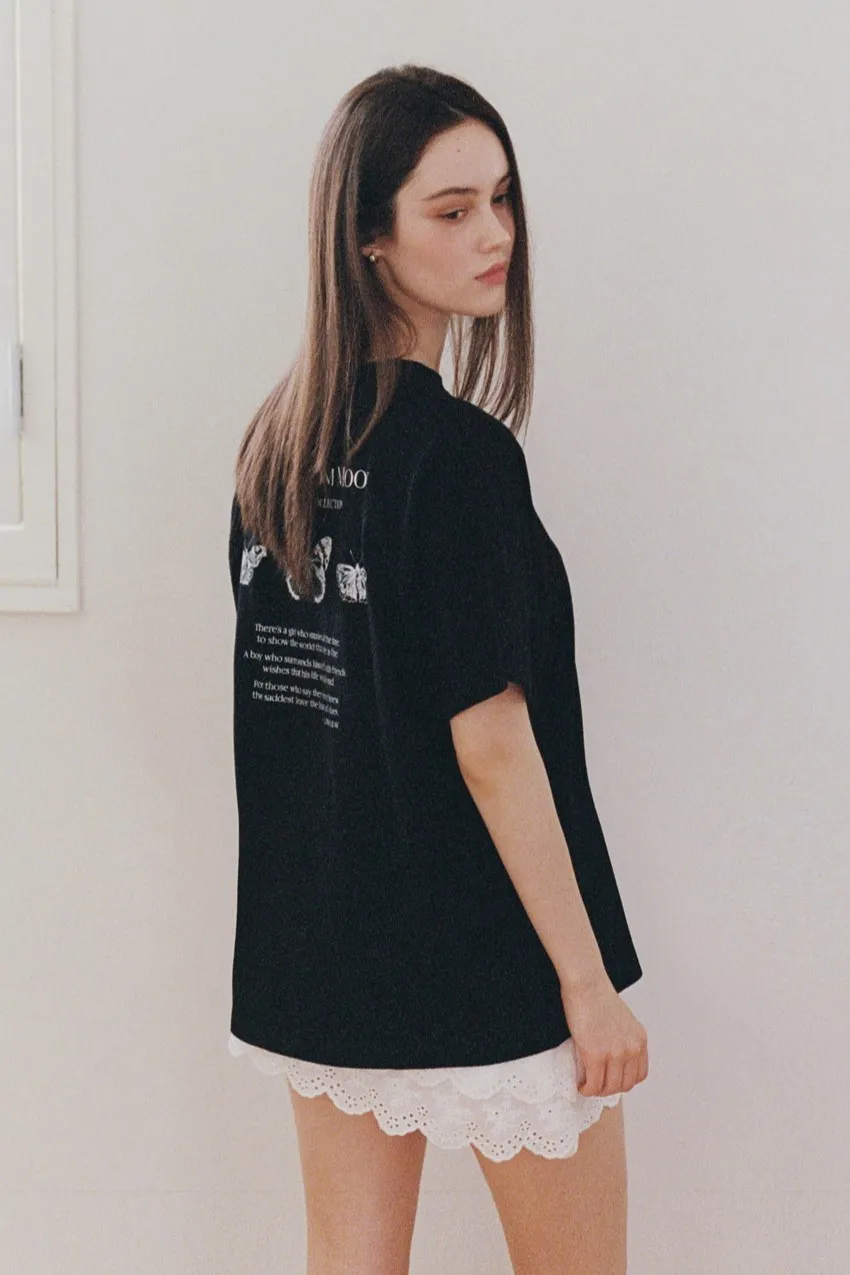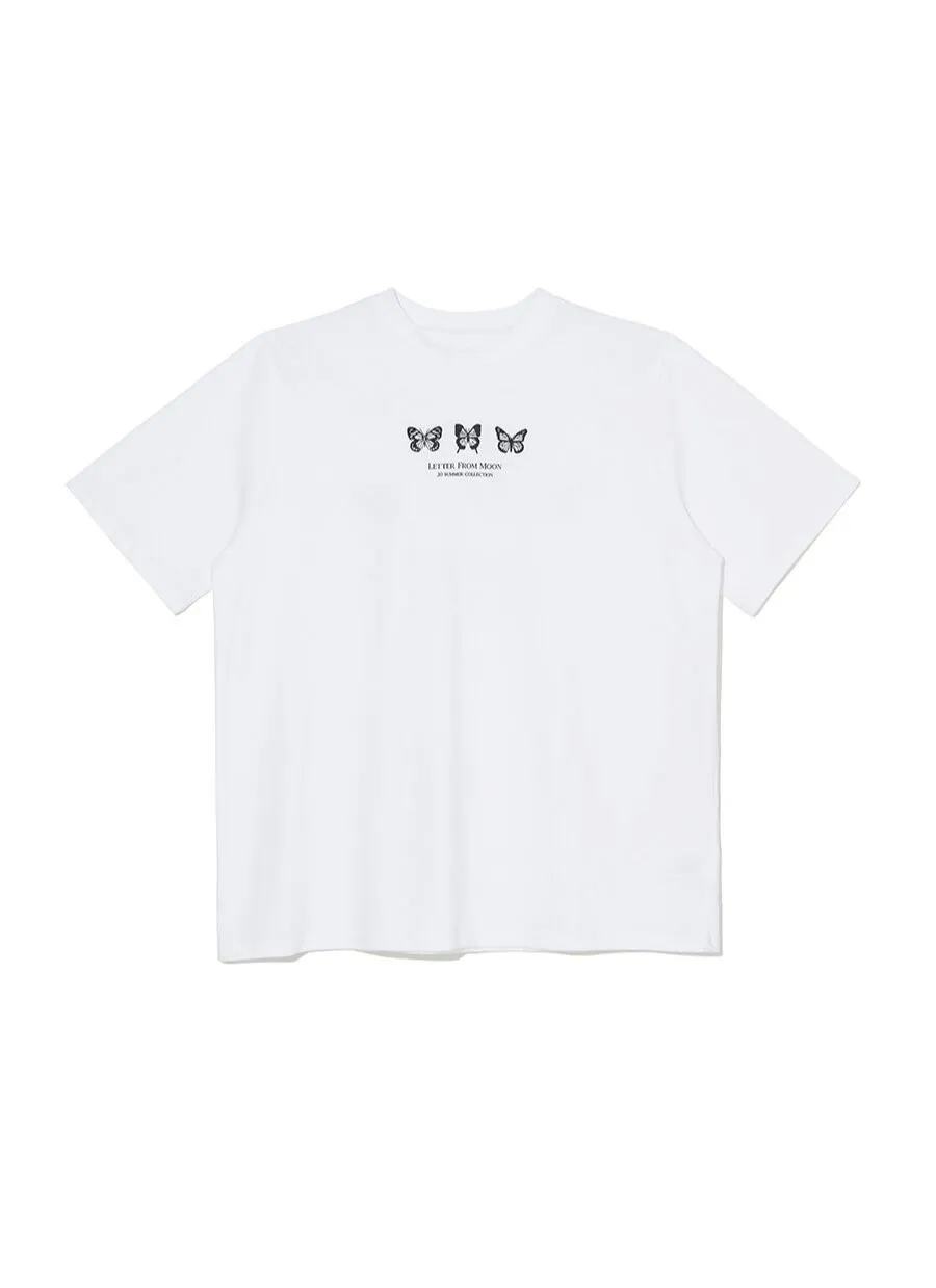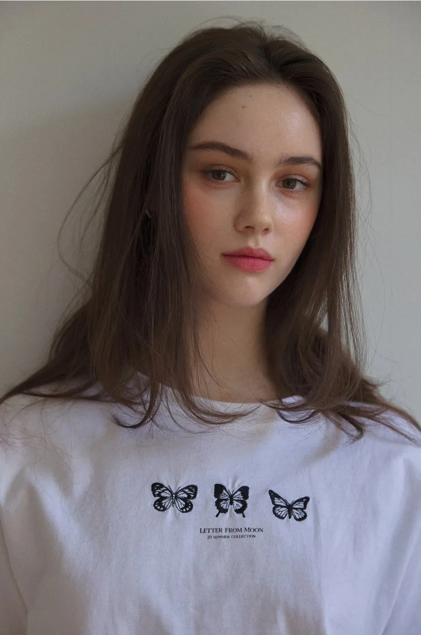 letter004蝶舞翩翩可愛Tshirt 黑 白 灰 $1190
