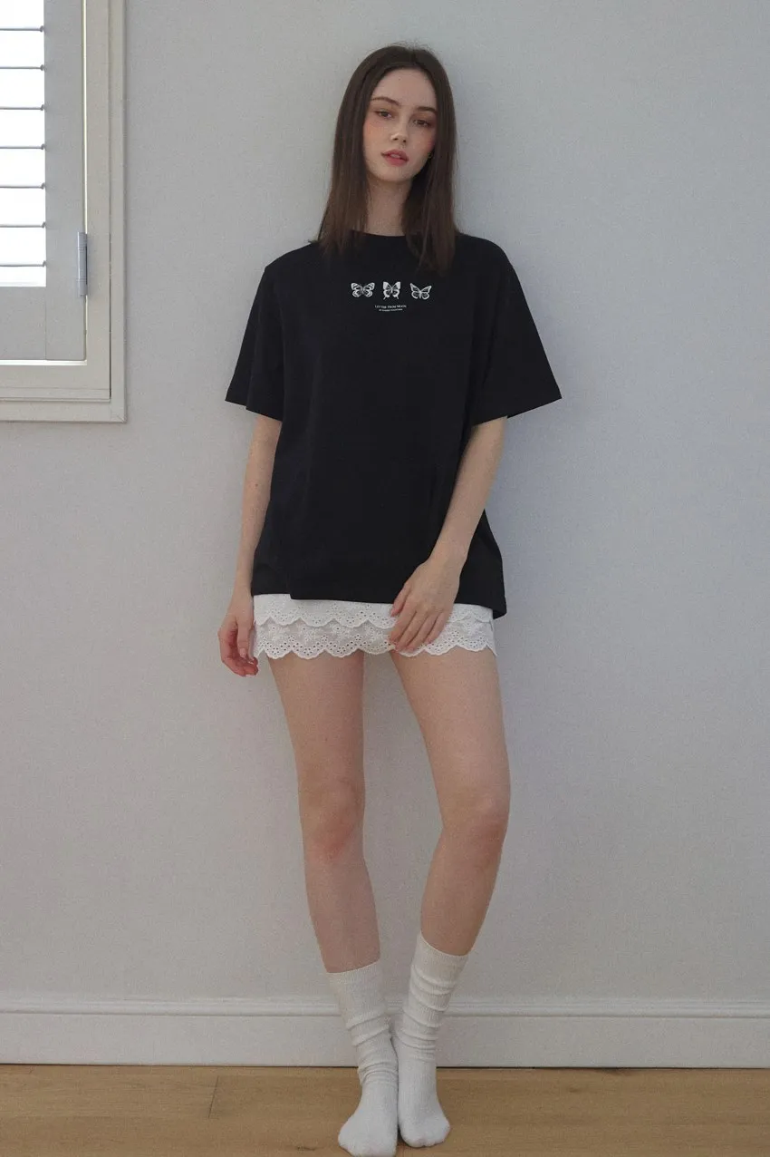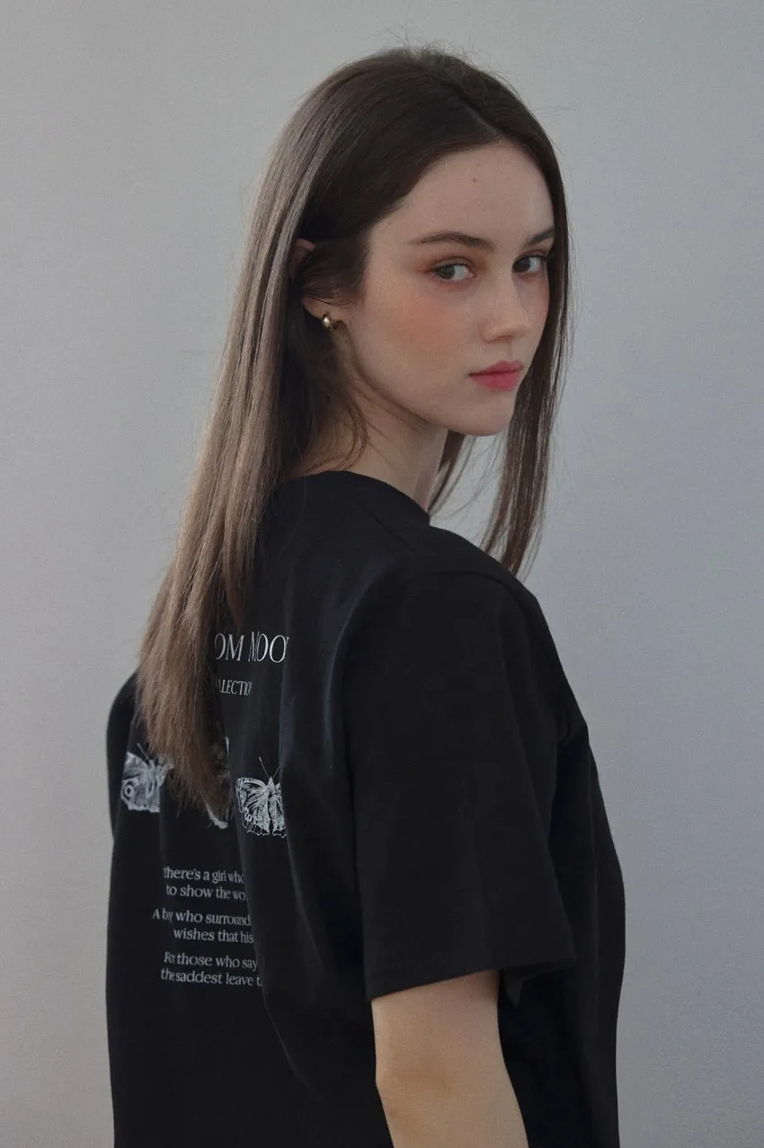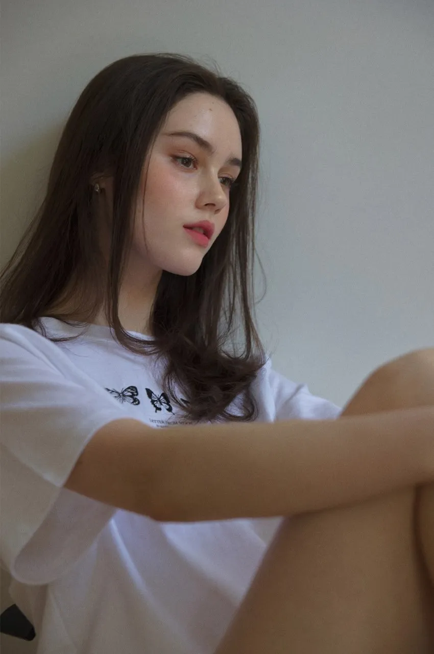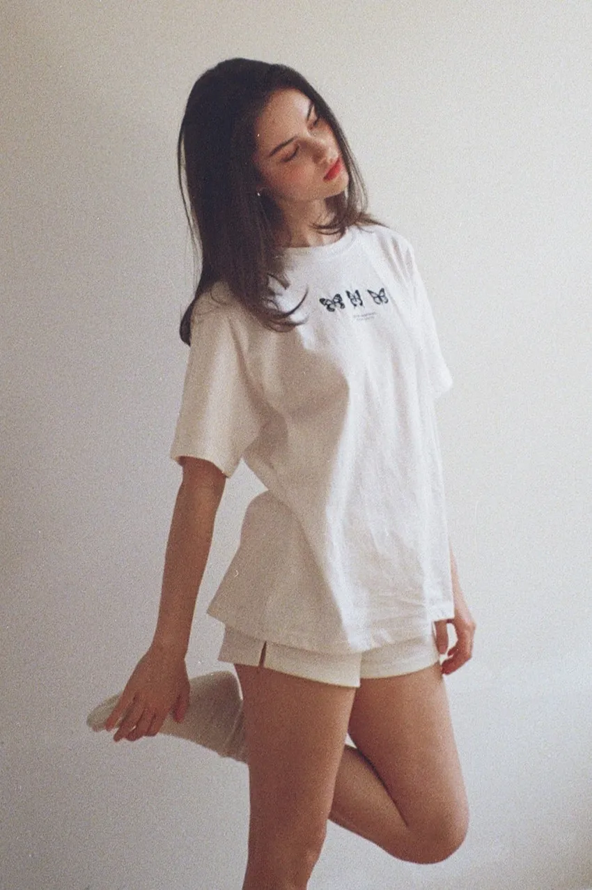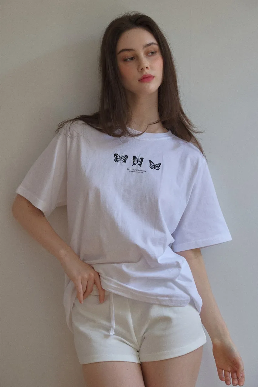 letter004蝶舞翩翩可愛Tshirt 黑 白 灰 $1190