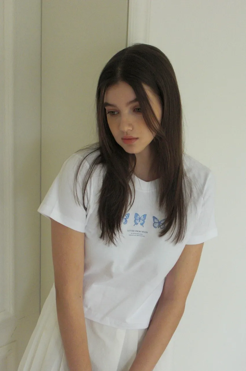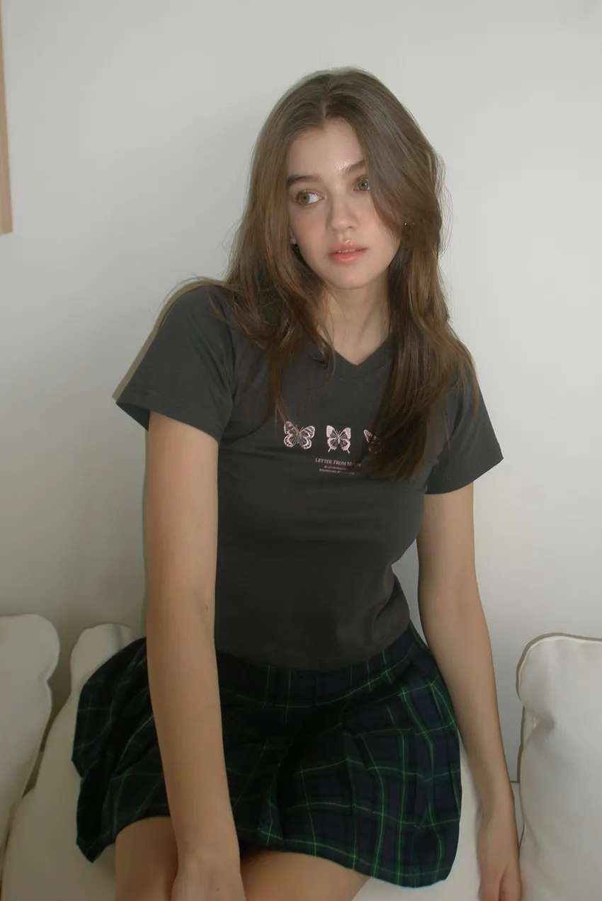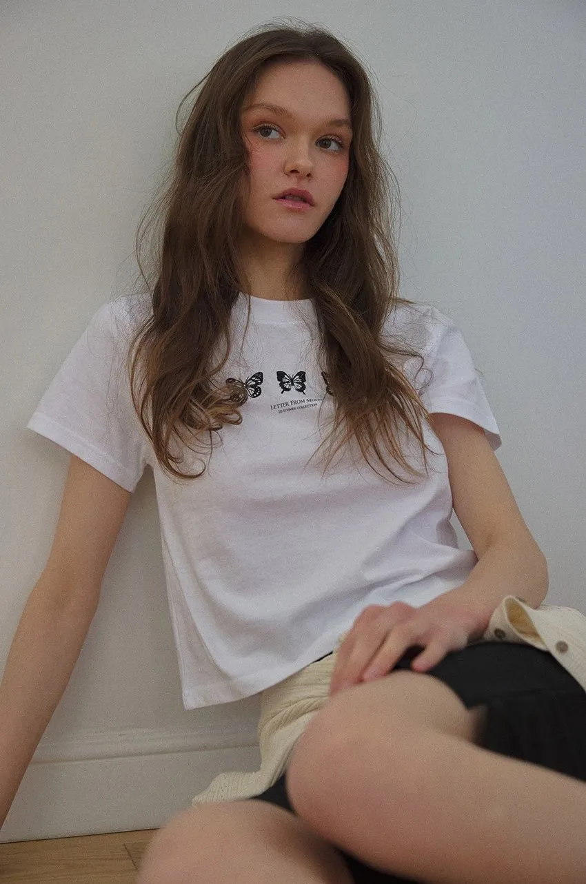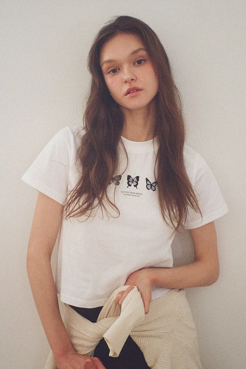 letter005珍妮同款修身短版蝴蝶刺繡上衣 白藍 白黑 灰 售價$950正面刺繡三隻蝴蝶和字母logo它是一種合身的款式,穿上它會讓你看起來更苗條白藍=白底藍色刺繡白黑=白底黑色刺繡尺寸(cm),肩寬33胸寬40袖長15全長45以下白黑穿搭👇🏻 以下灰色穿搭👇🏻 以下白藍色穿搭👇🏻 以下顏色,白黑色 以下顏色,灰色 以下顏色,白藍色