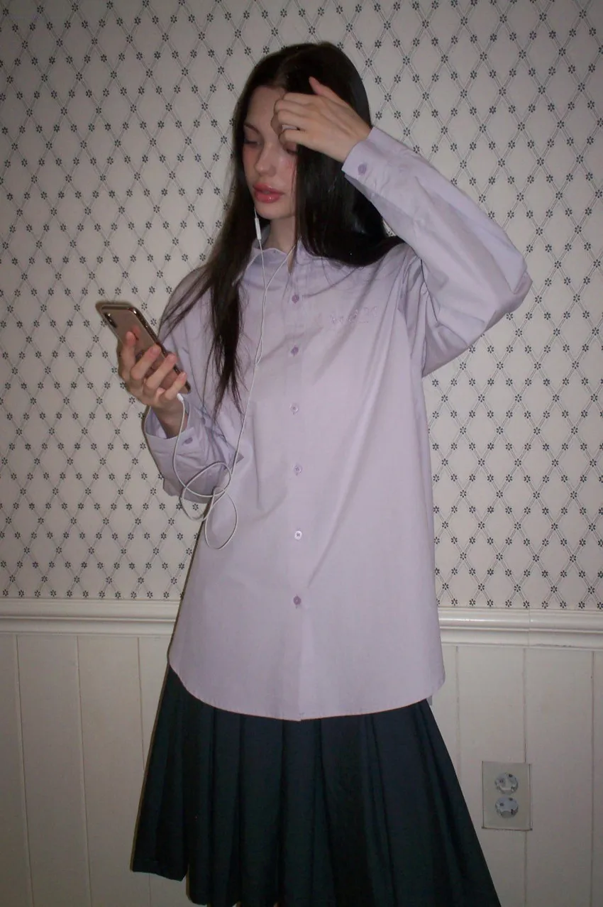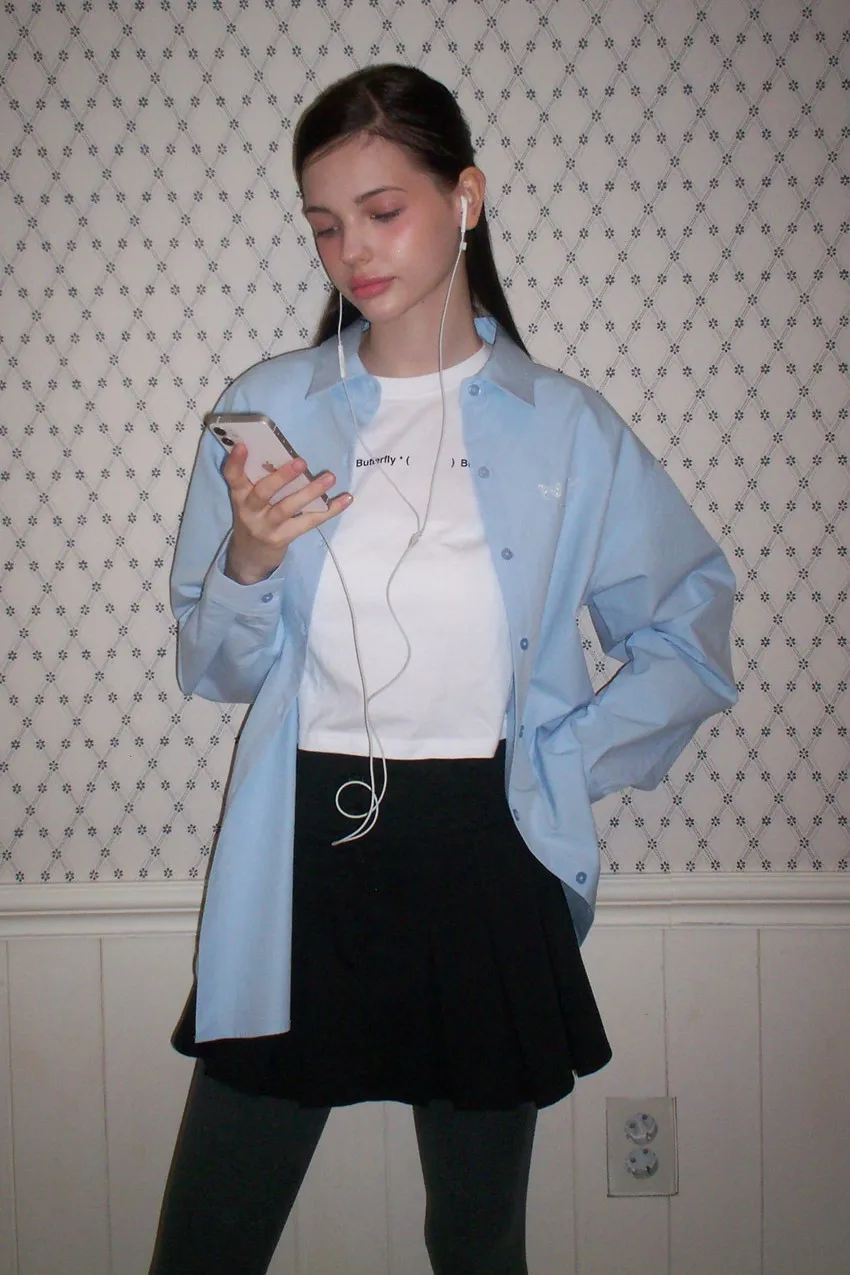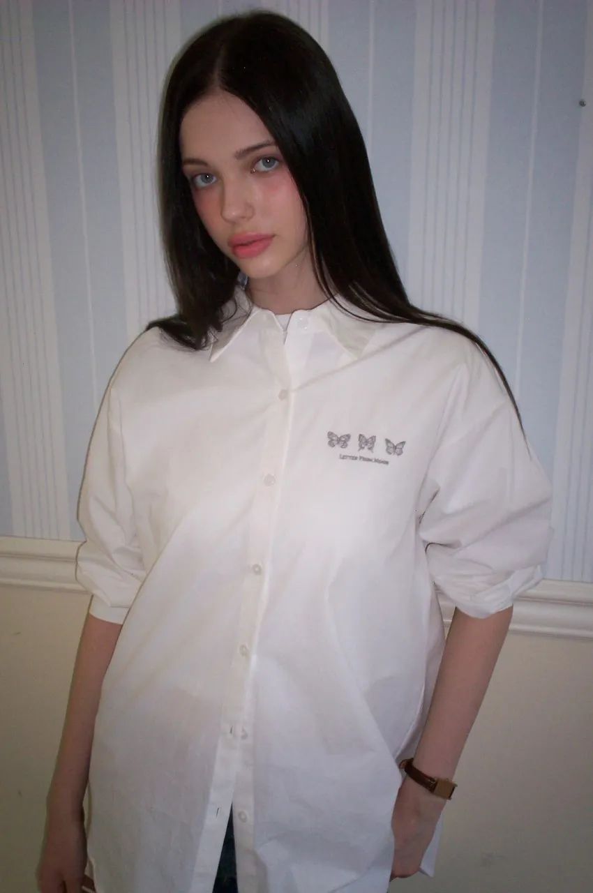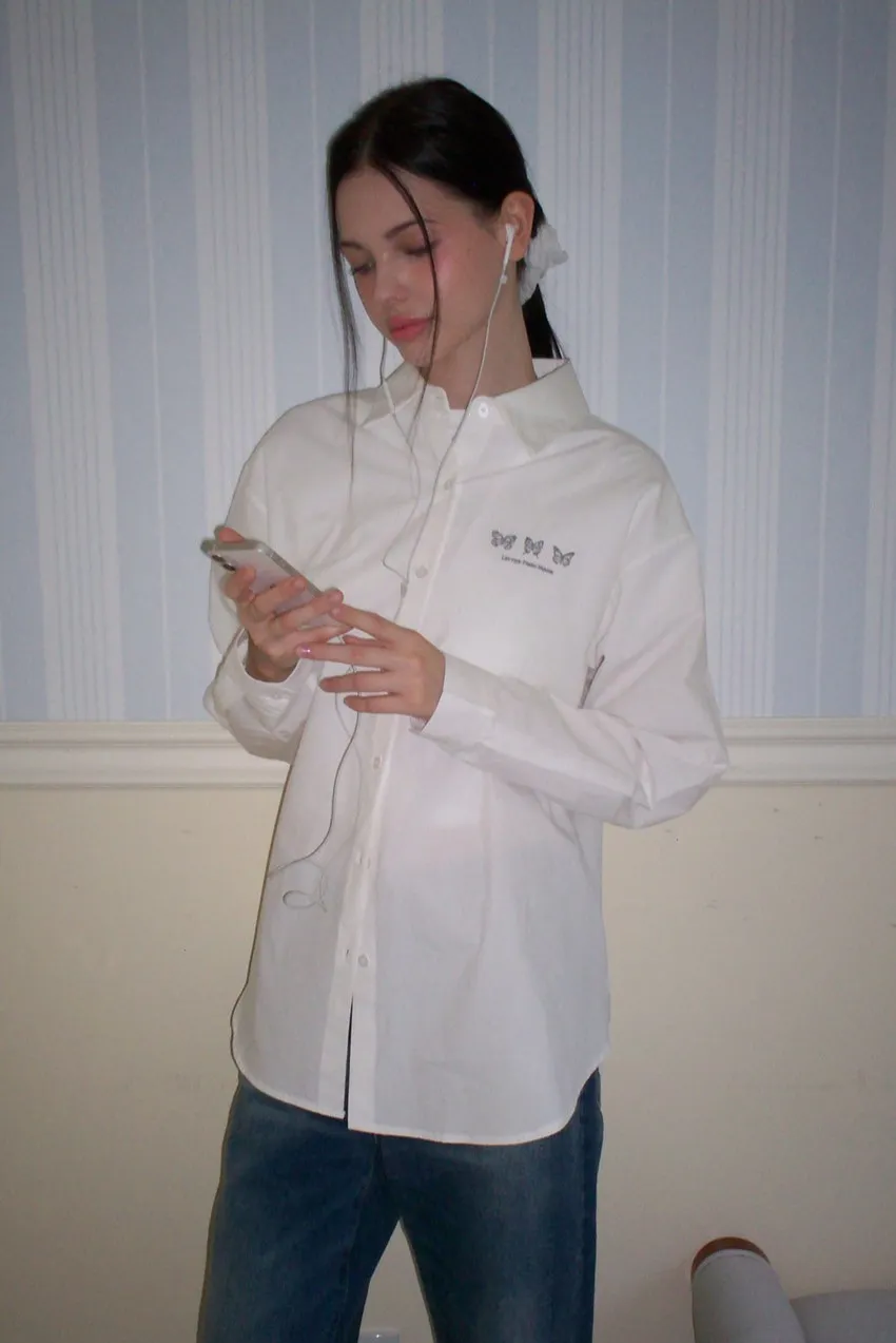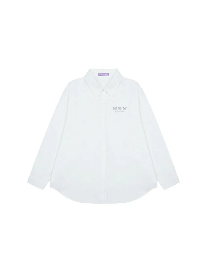 letter006蝴蝶刺繡低調襯衫 薰衣草紫 淺藍 白 售價$1990寬鬆的版型,可以輕鬆舒適的穿著,可單獨穿著或是在TSHIRT上疊穿,也可如外套般搭配多種下身單品尺寸(cm),肩寬49胸寬57袖長58全長77 以下薰衣草紫色穿搭👇🏻 以下藍色穿搭👇🏻 以下白色穿搭👇🏻 以下顏色,薰衣草紫色 以下顏色,藍色 以下顏色,白色