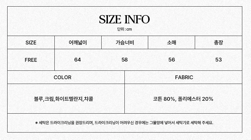尺寸(cm),肩寬64,胸寬58,袖長56,全長53