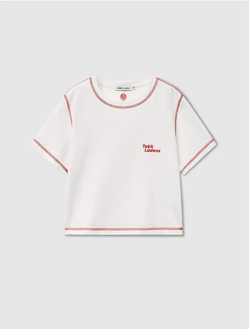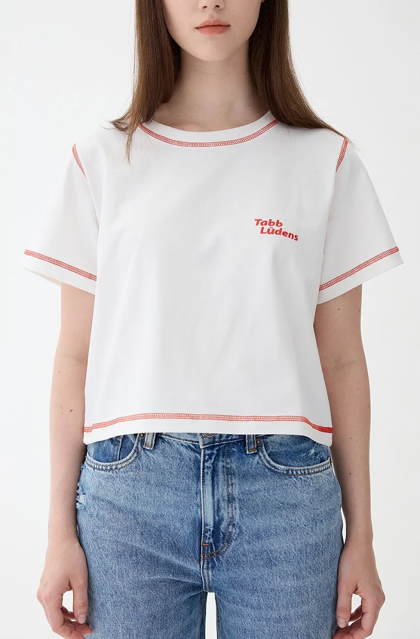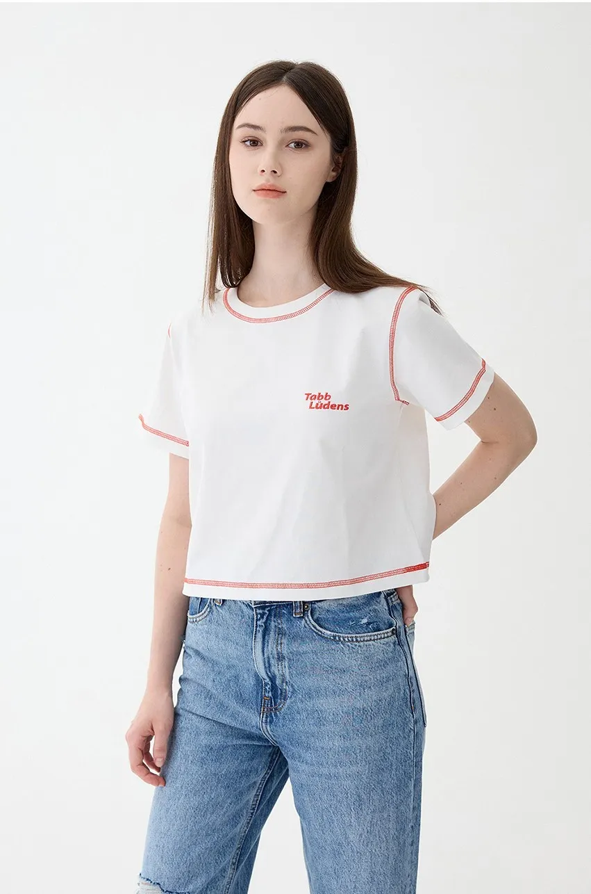 ludens003女版橘色縫線短版上衣