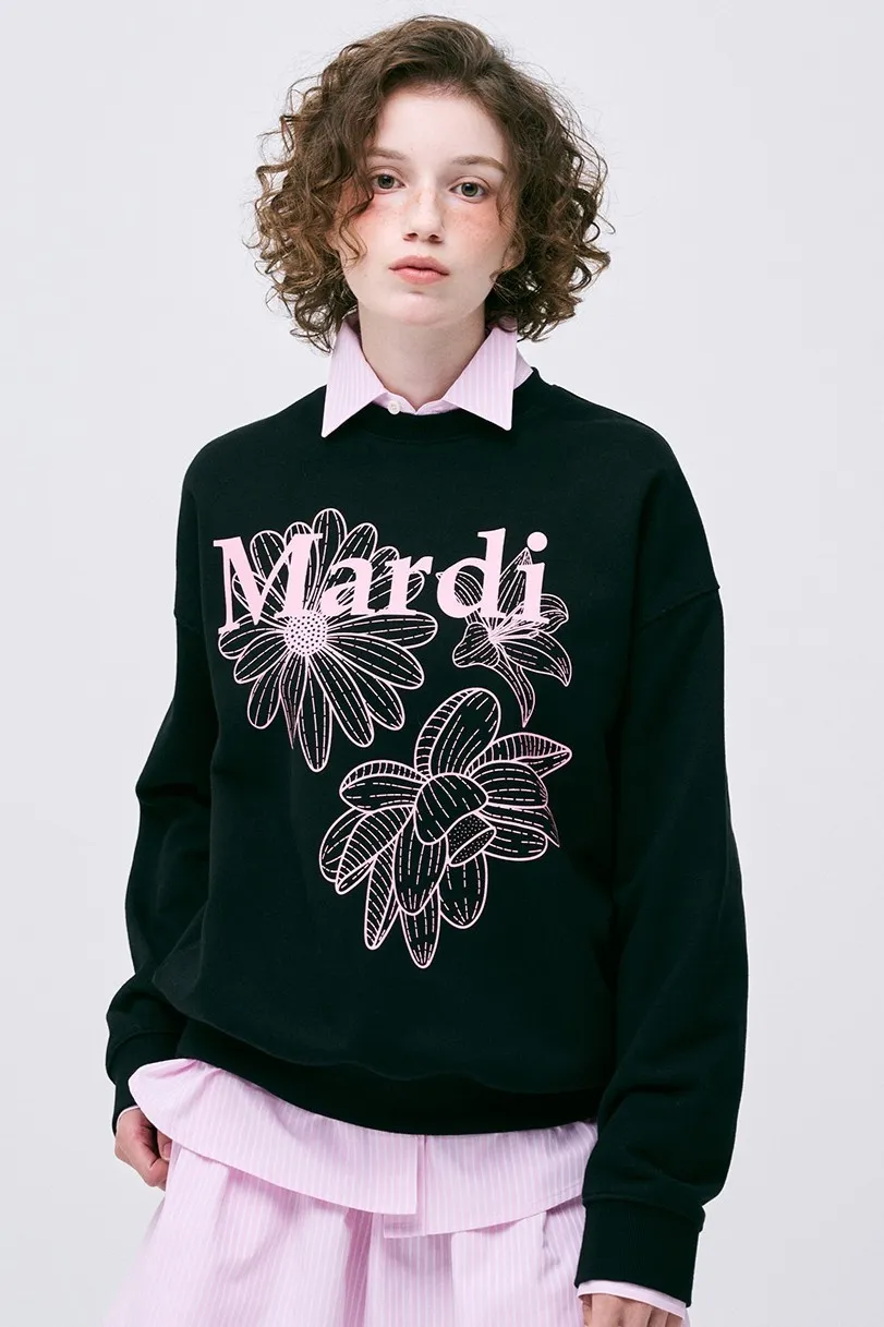Mard032特價小雛菊mardi黑粉大學T(三花朵) 韓國原價$2580 限時特價$1290