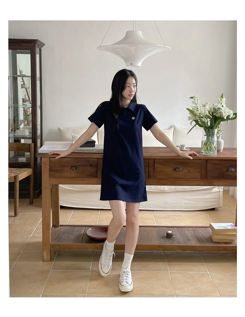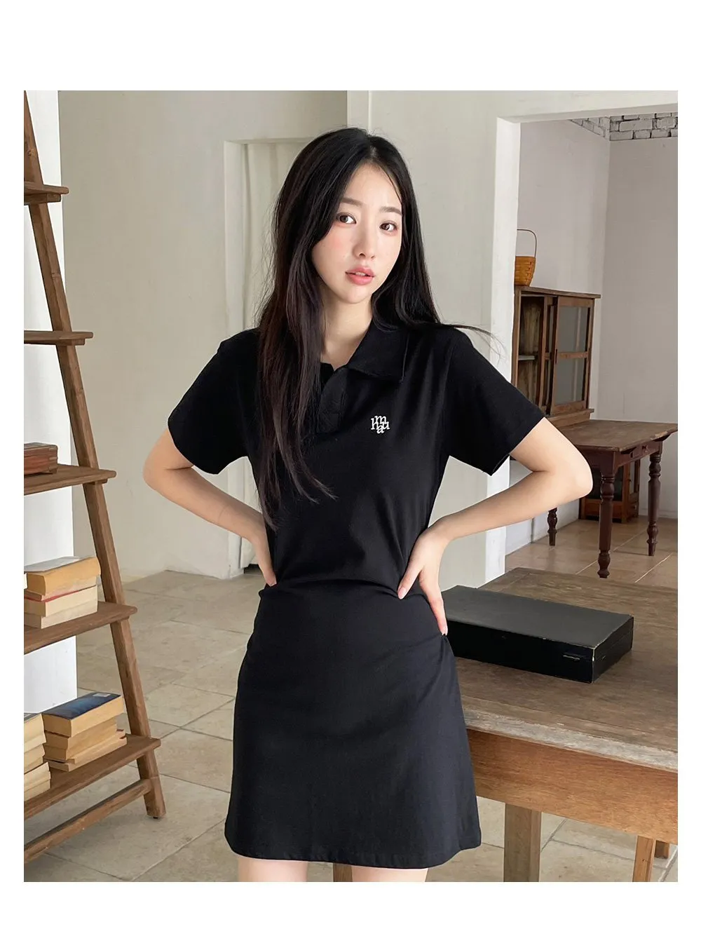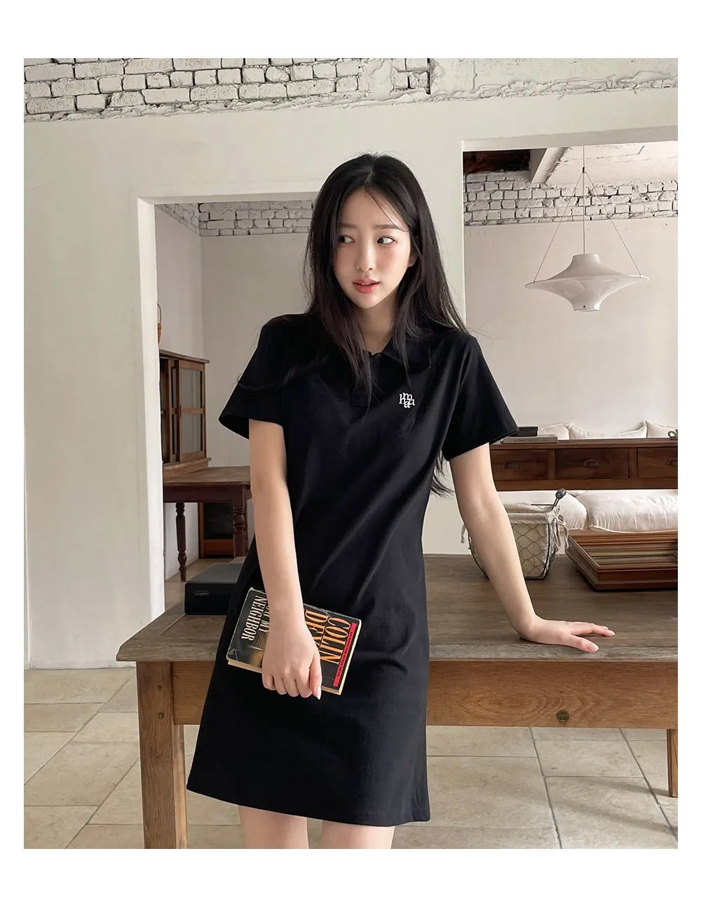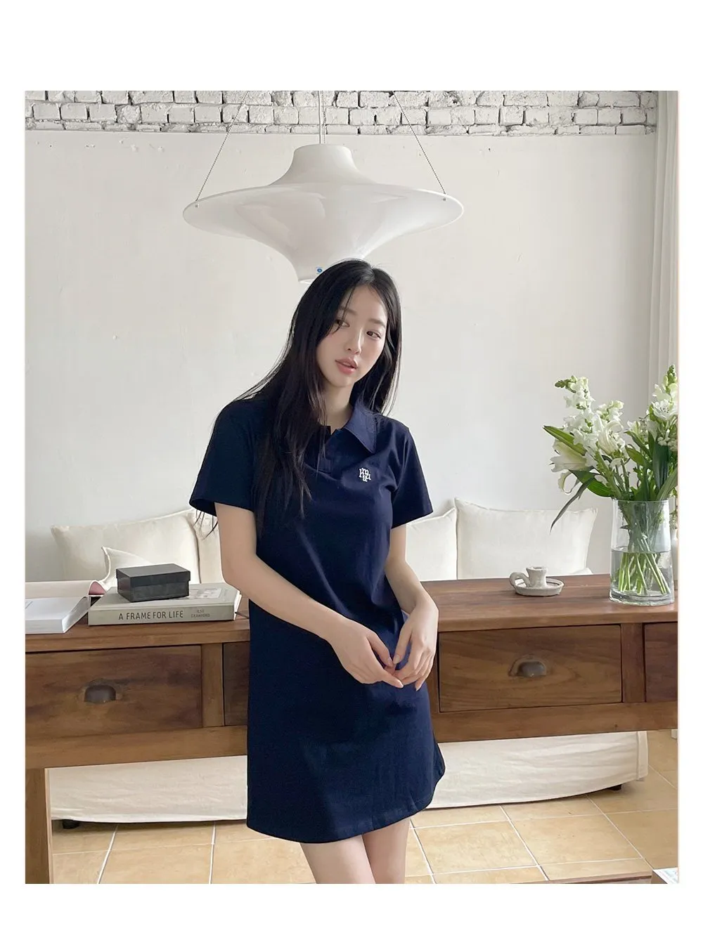 muah012休閒Polo領連身裙 黑 深藍 $780