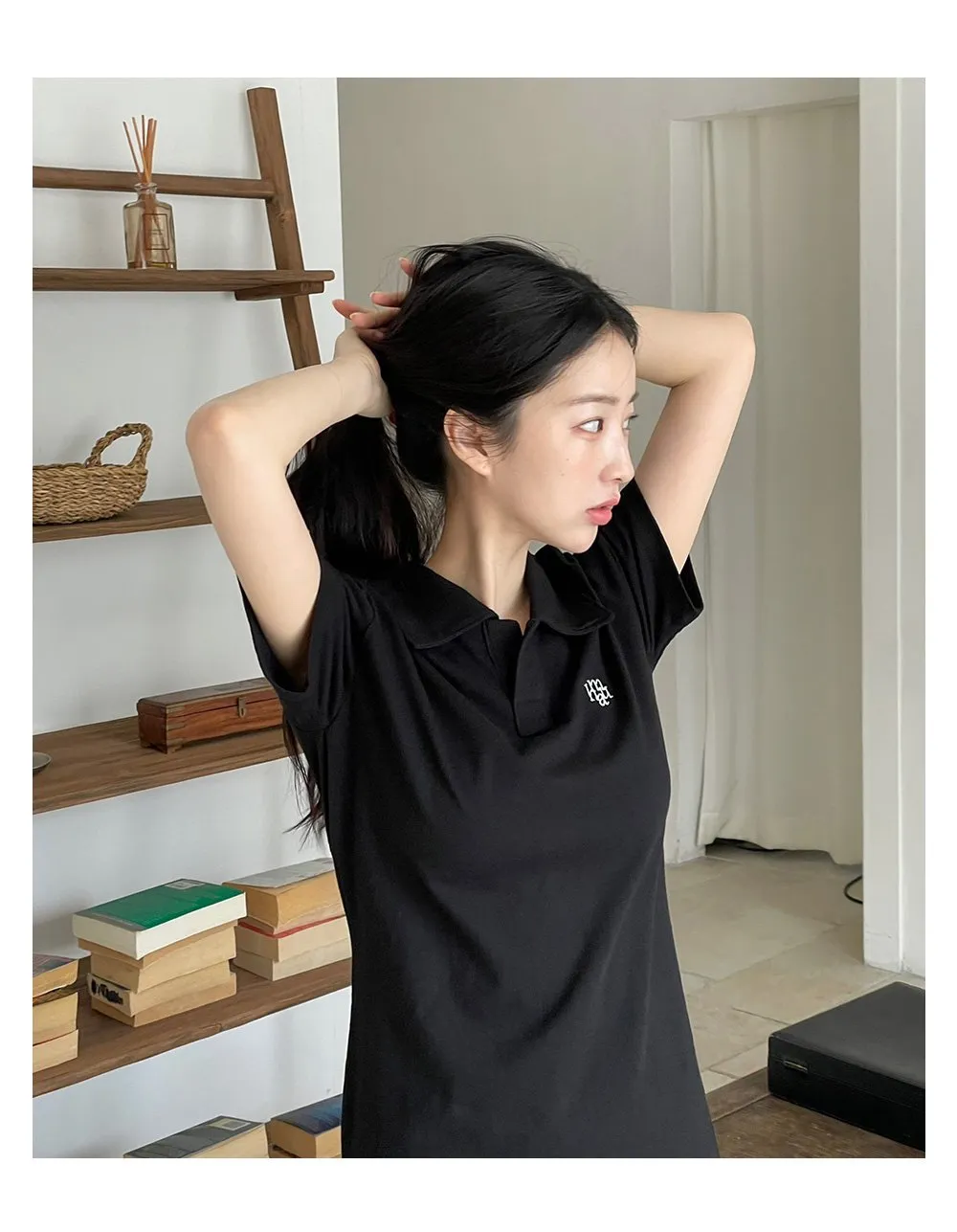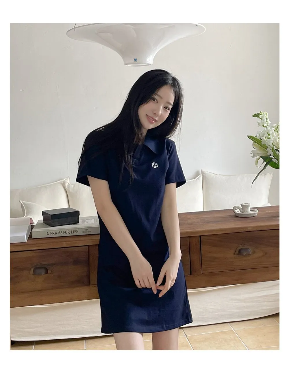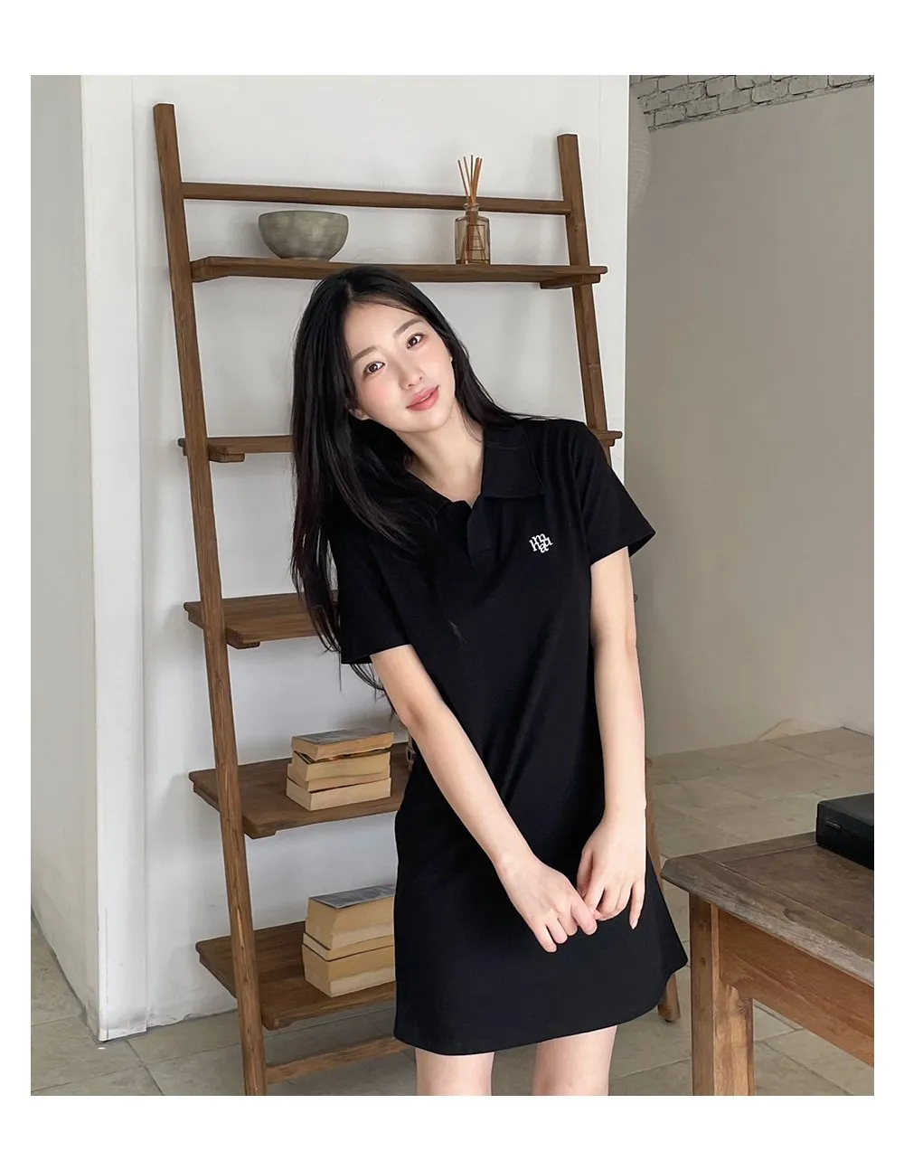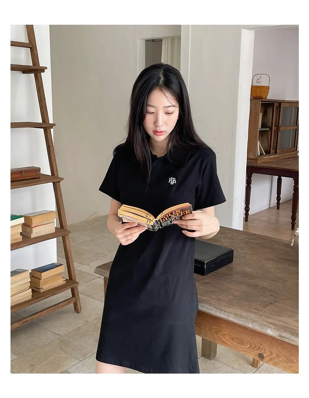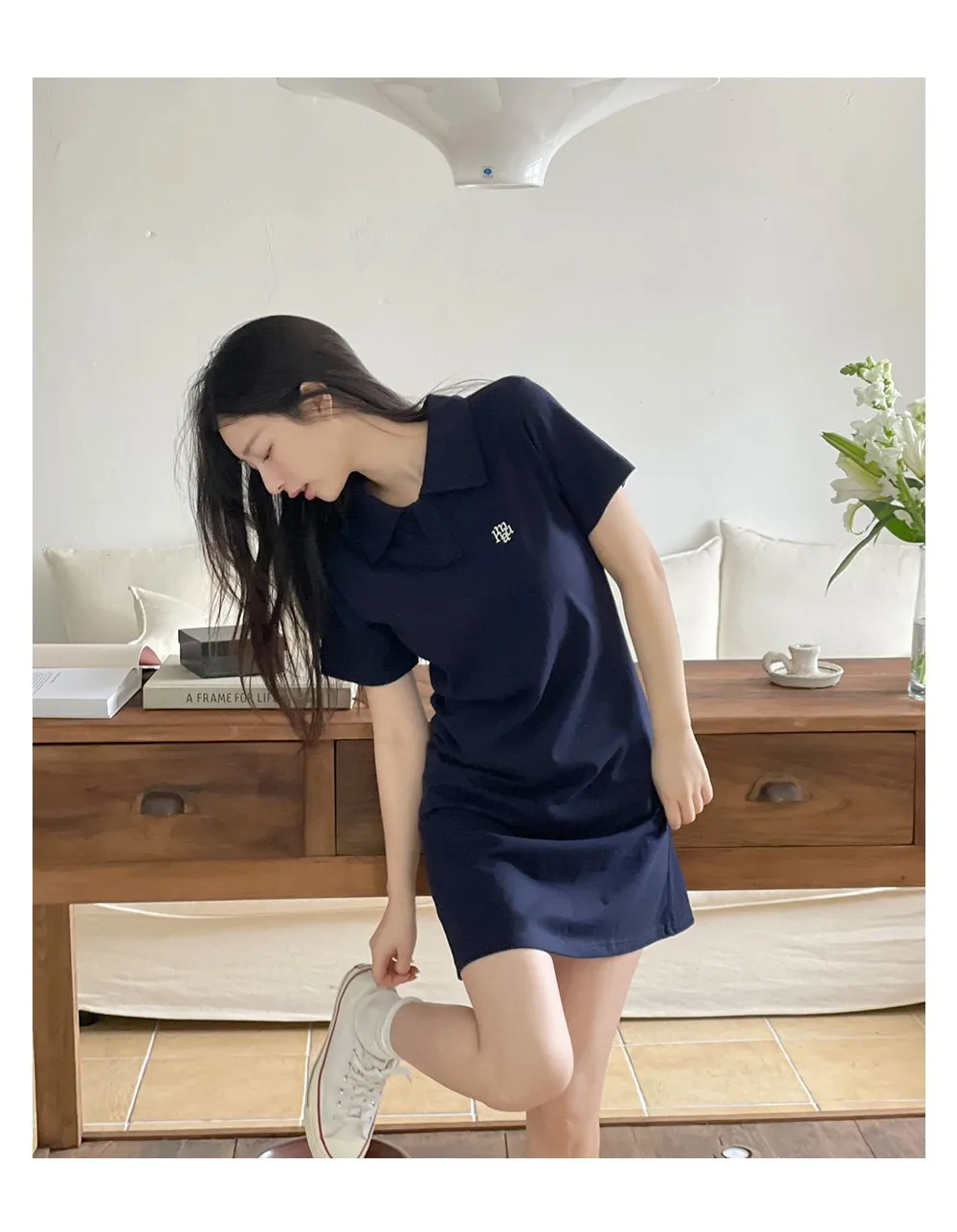 muah012休閒Polo領連身裙 黑 深藍 $780