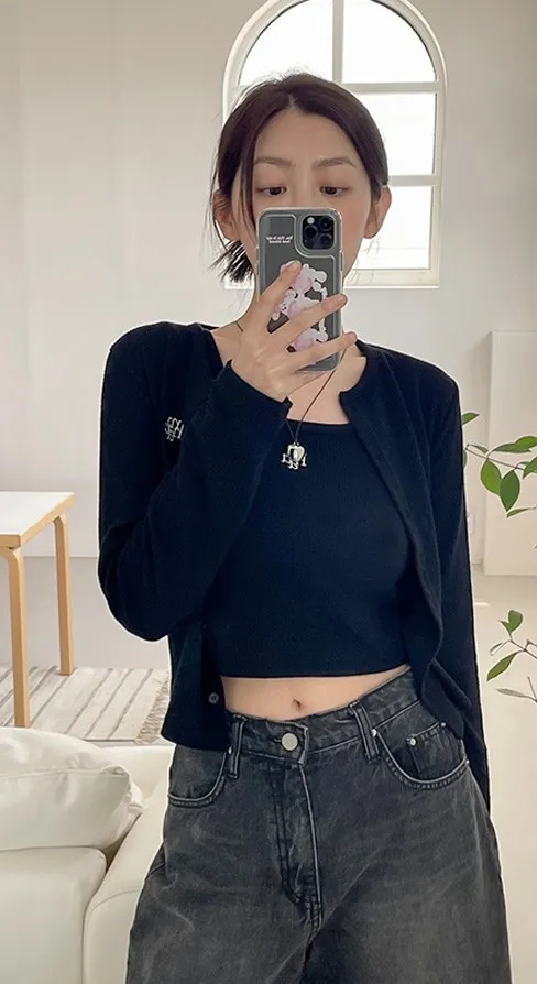 muah031優雅針織開襟衫 淺藍 深藍 黑 深灰 售價$840尺寸(cm)全長49肩寬35袖長58胸寬38聚酯纖維97% 萊卡3%以下為淺藍穿搭👇🏻 以下為深灰穿搭👇🏻 以下為黑色穿搭👇🏻 以下為深藍色穿搭👇🏻 以下顏色,如圖所示