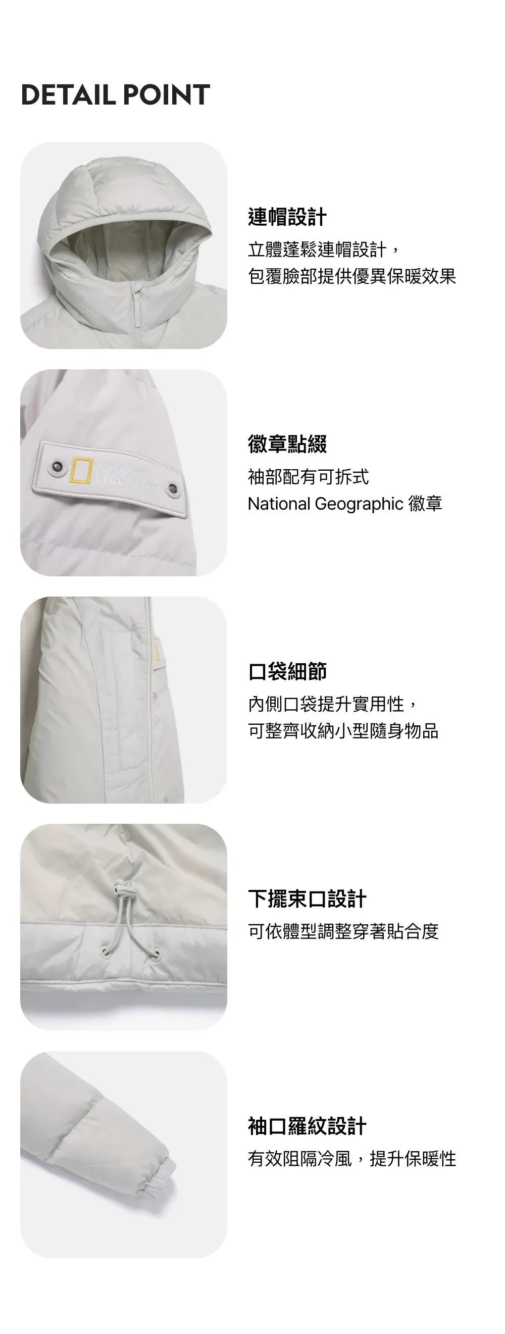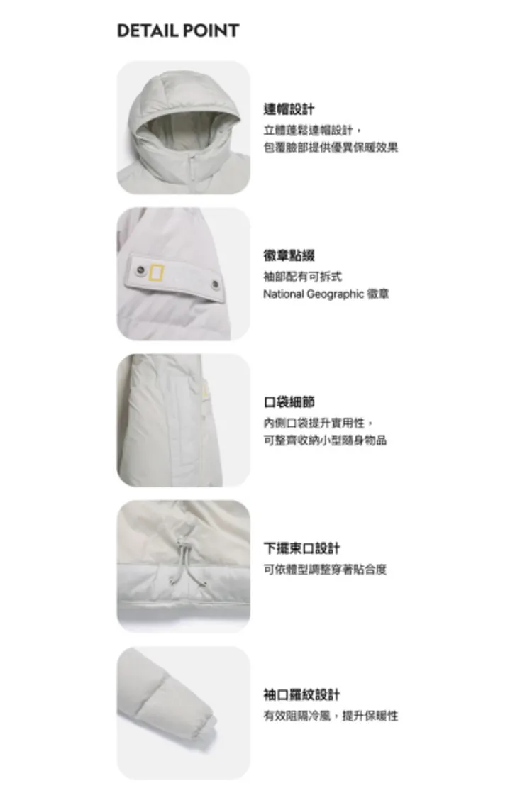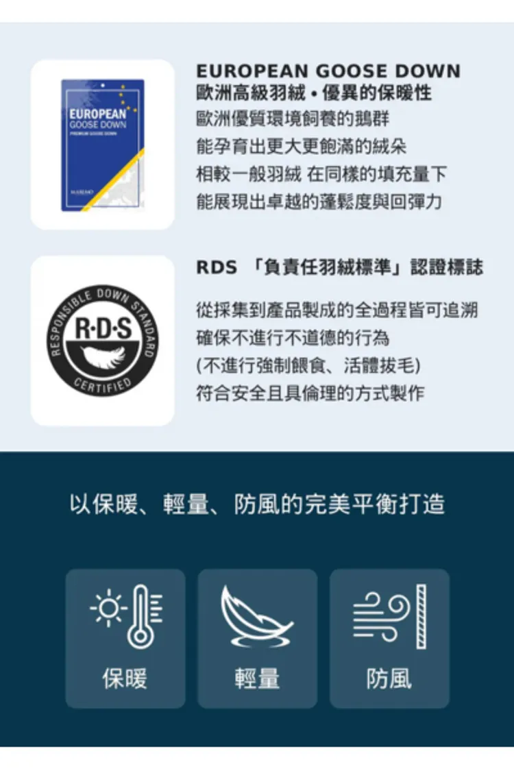 - 搭配歐洲 80:20 鵝絨填充,展現極佳的保暖性與蓬鬆度